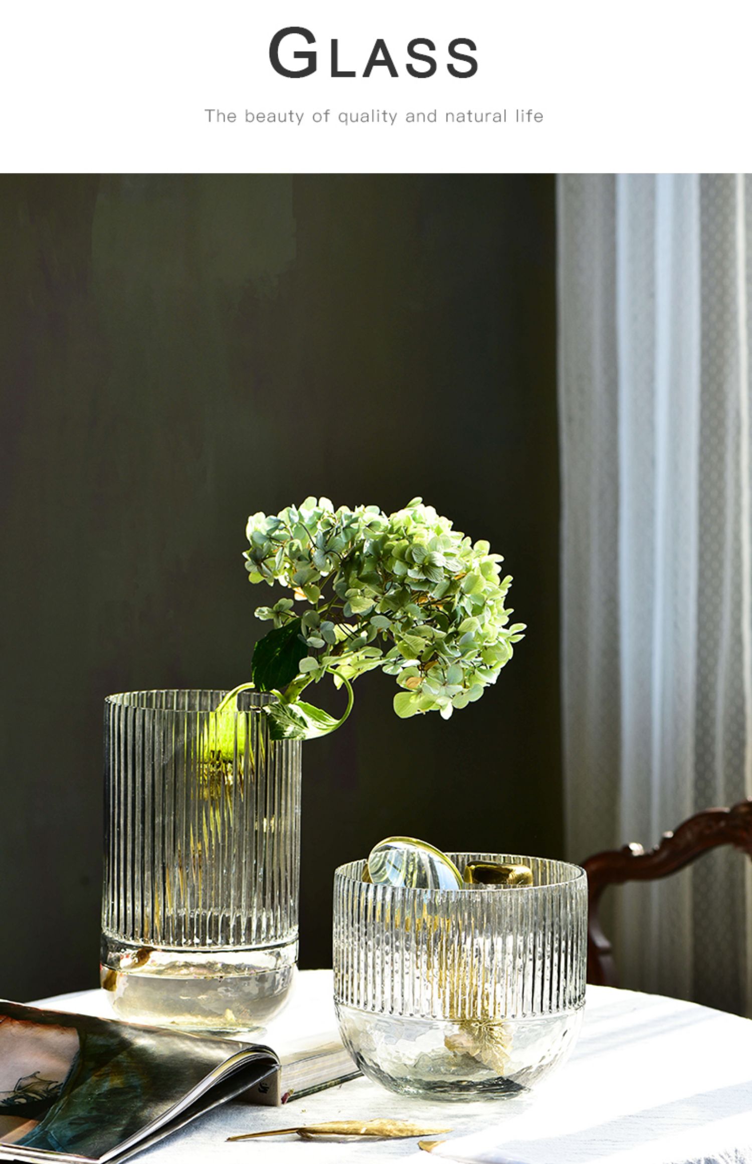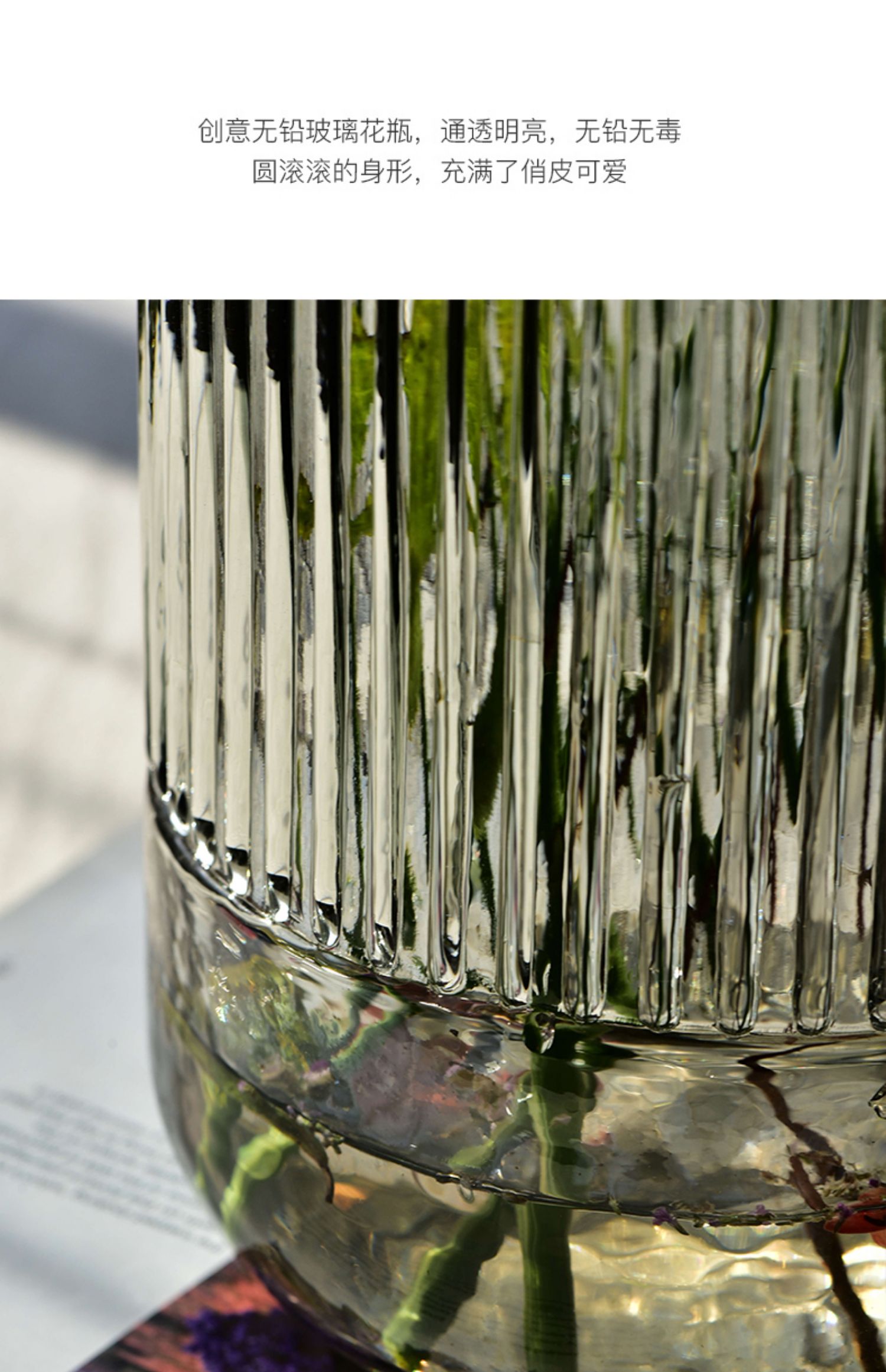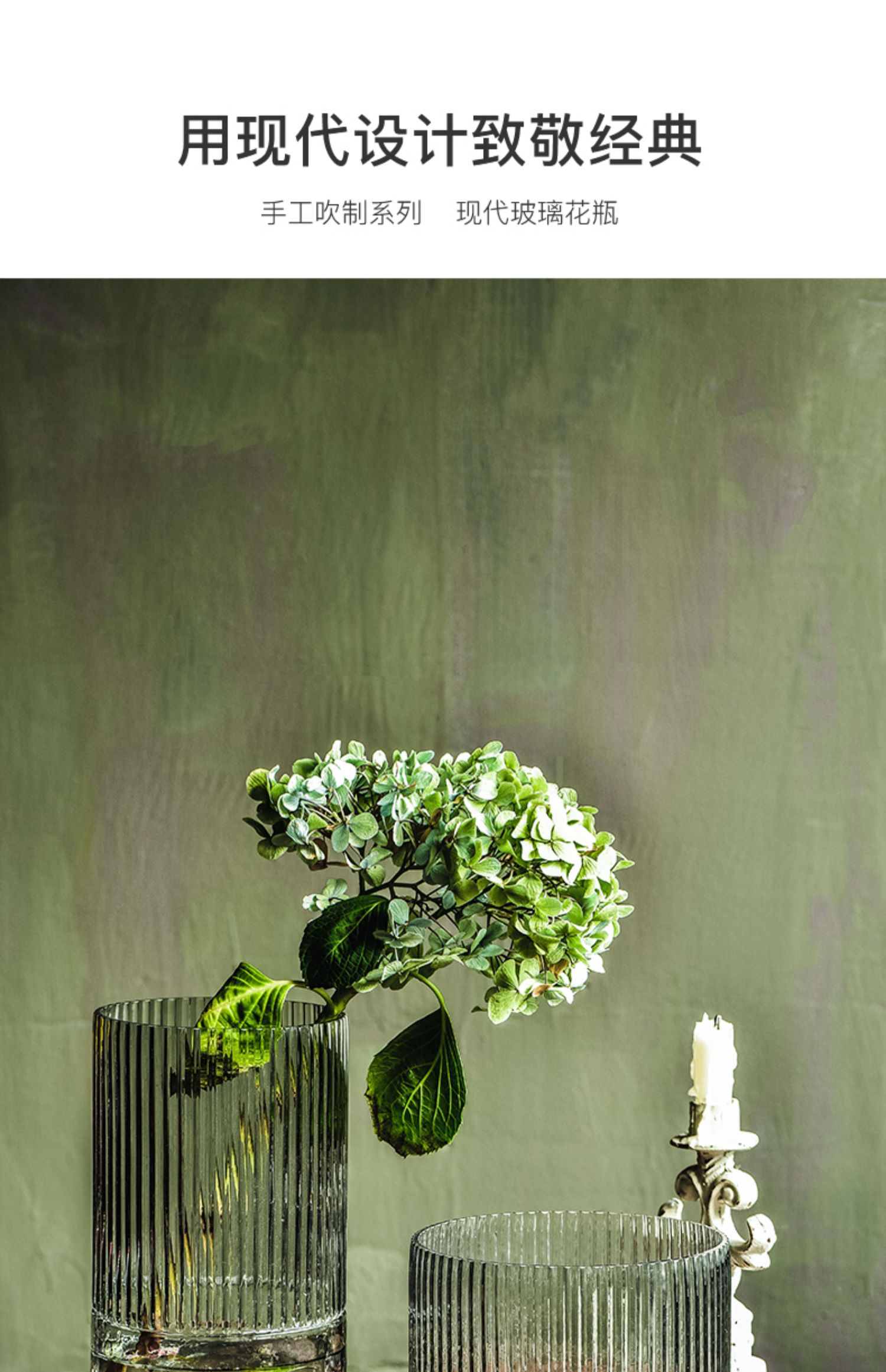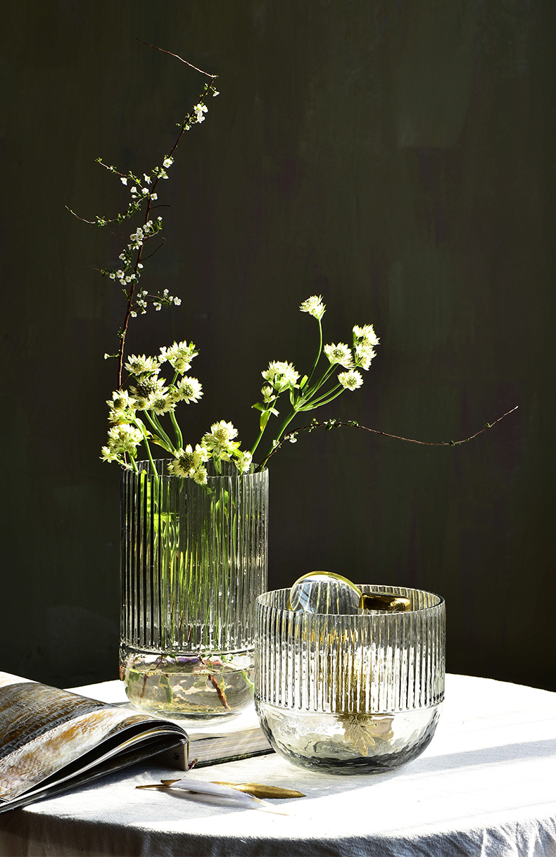 碧轩现代轻奢玻璃花瓶摆件 家居装饰品酒店样板间花器餐桌客厅插花瓶