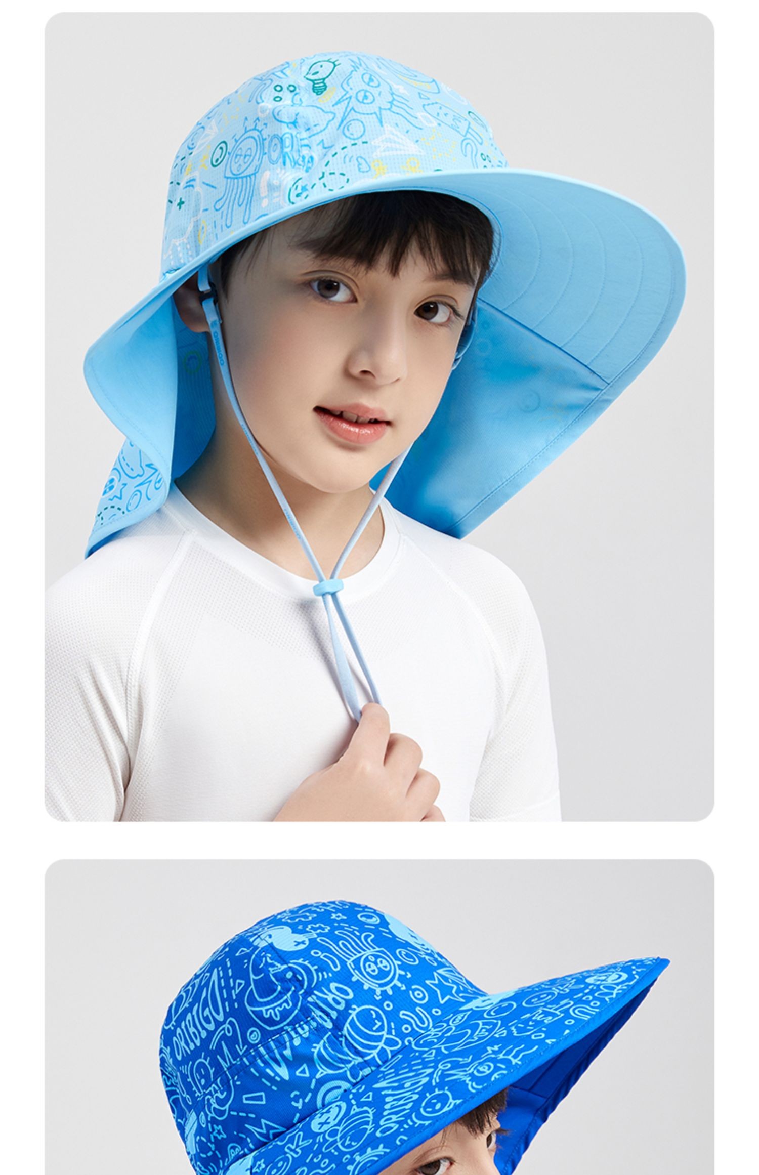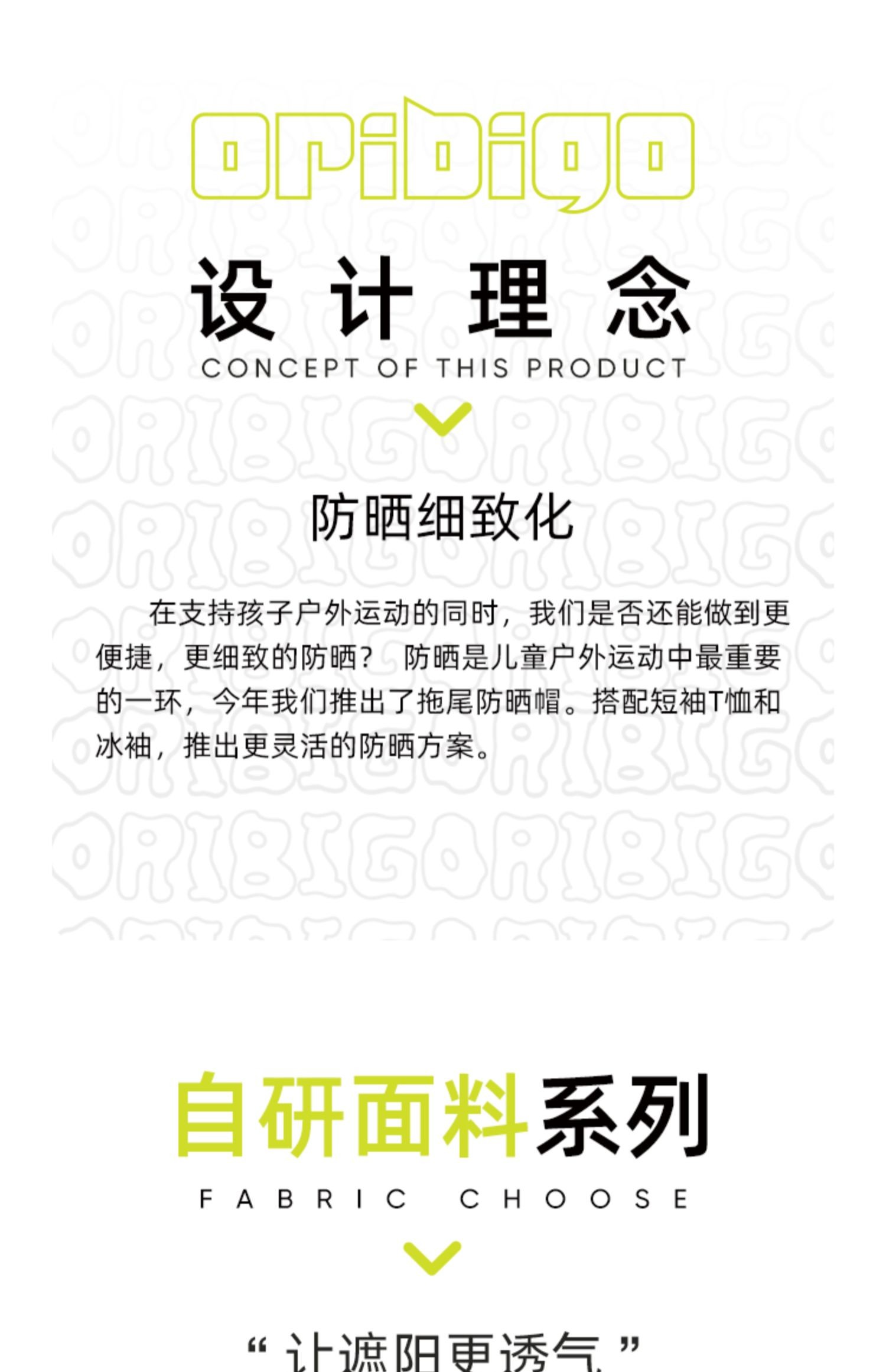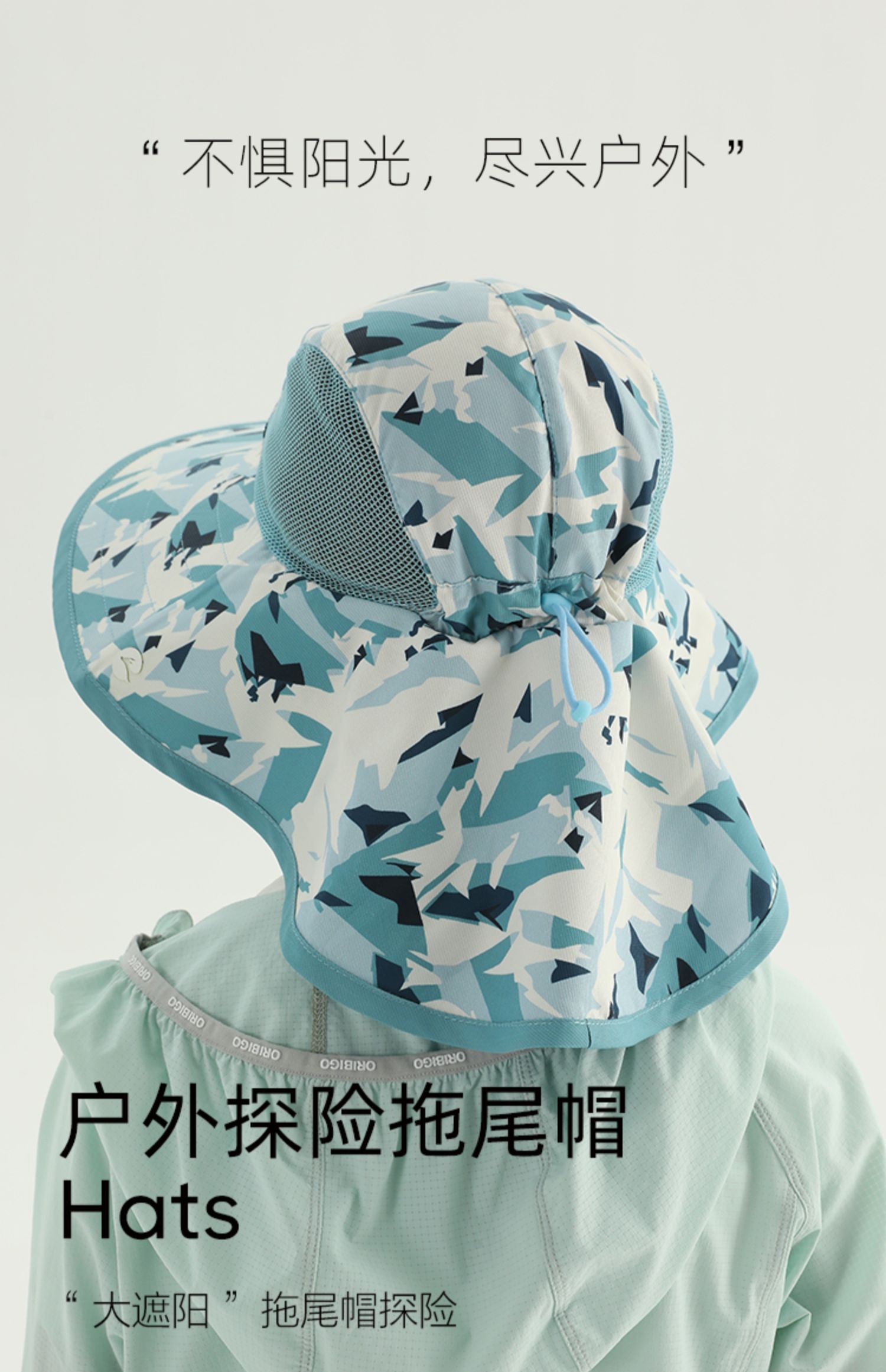 oribigo儿童拖尾帽 UPF50+ 有效阻隔紫外线 轻便易携带 透气速干 A类标准 柔软亲 大帽檐和拖尾 外出轻松防晒【3月运动服清仓专场】