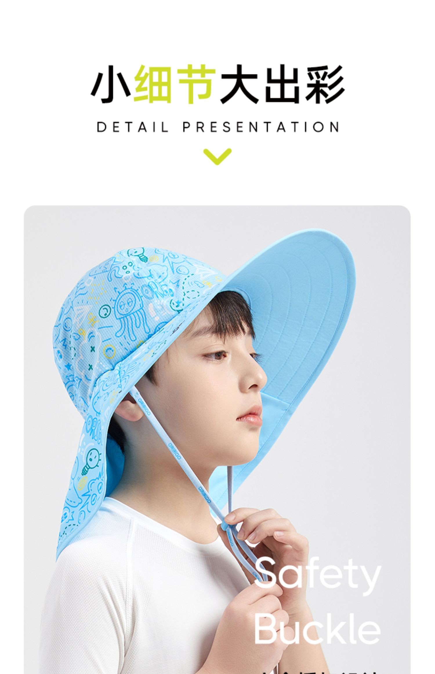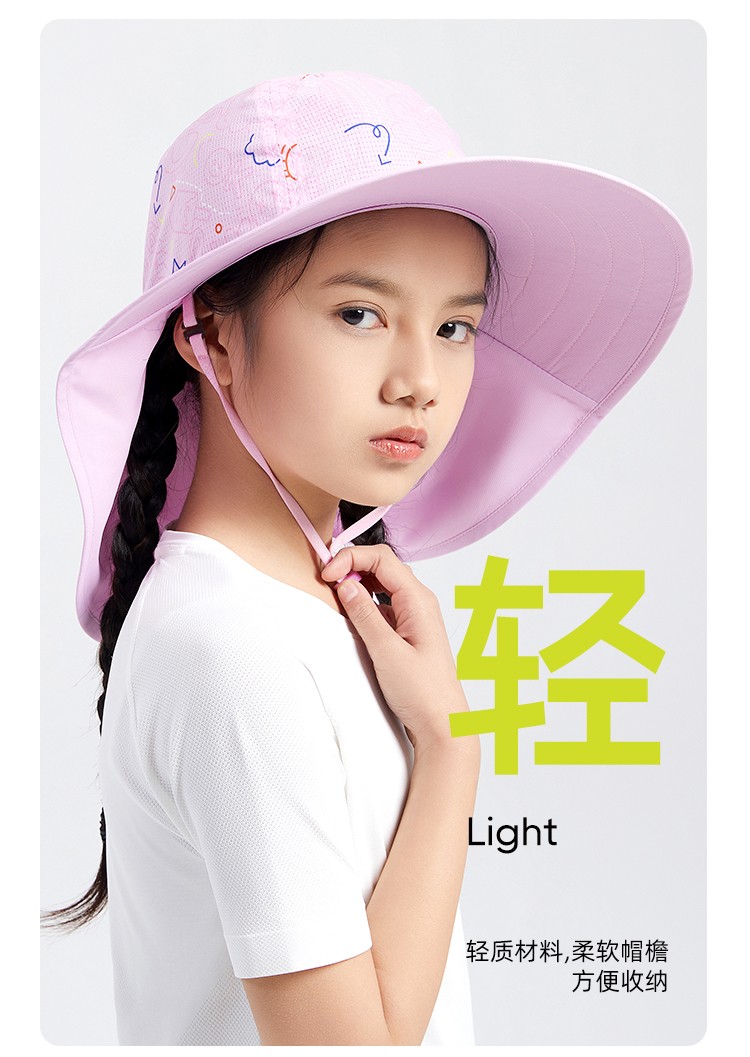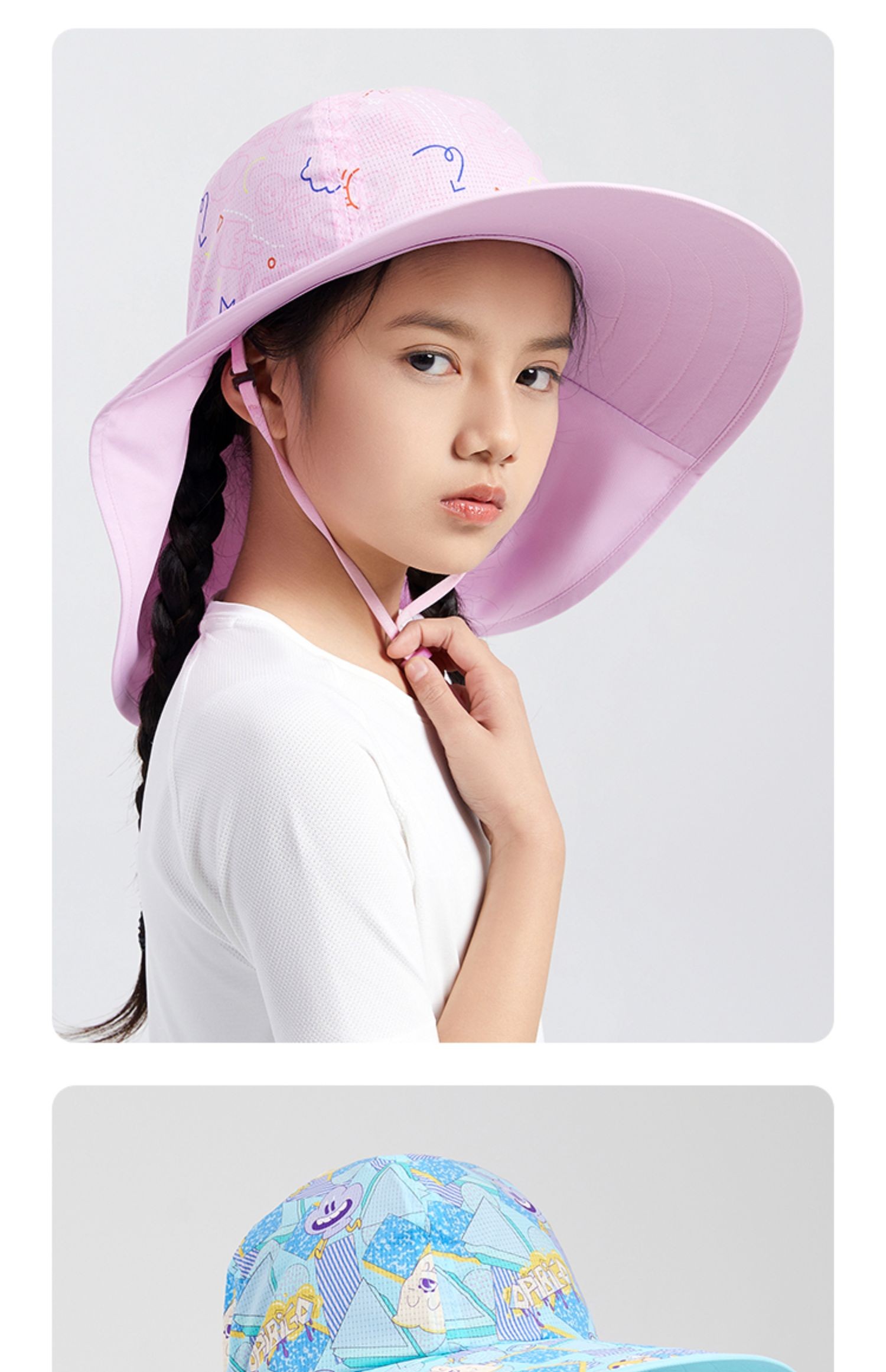 oribigo儿童拖尾帽 UPF50+ 有效阻隔紫外线 轻便易携带 透气速干 A类标准 柔软亲 大帽檐和拖尾 外出轻松防晒【3月运动服清仓专场】