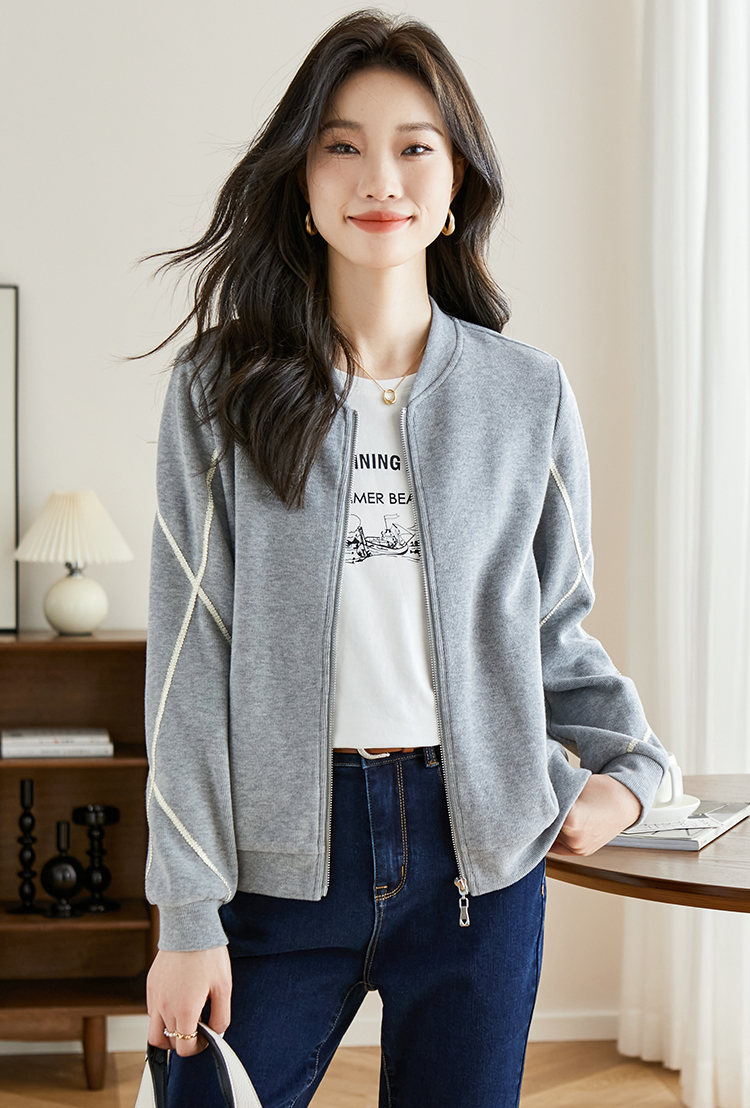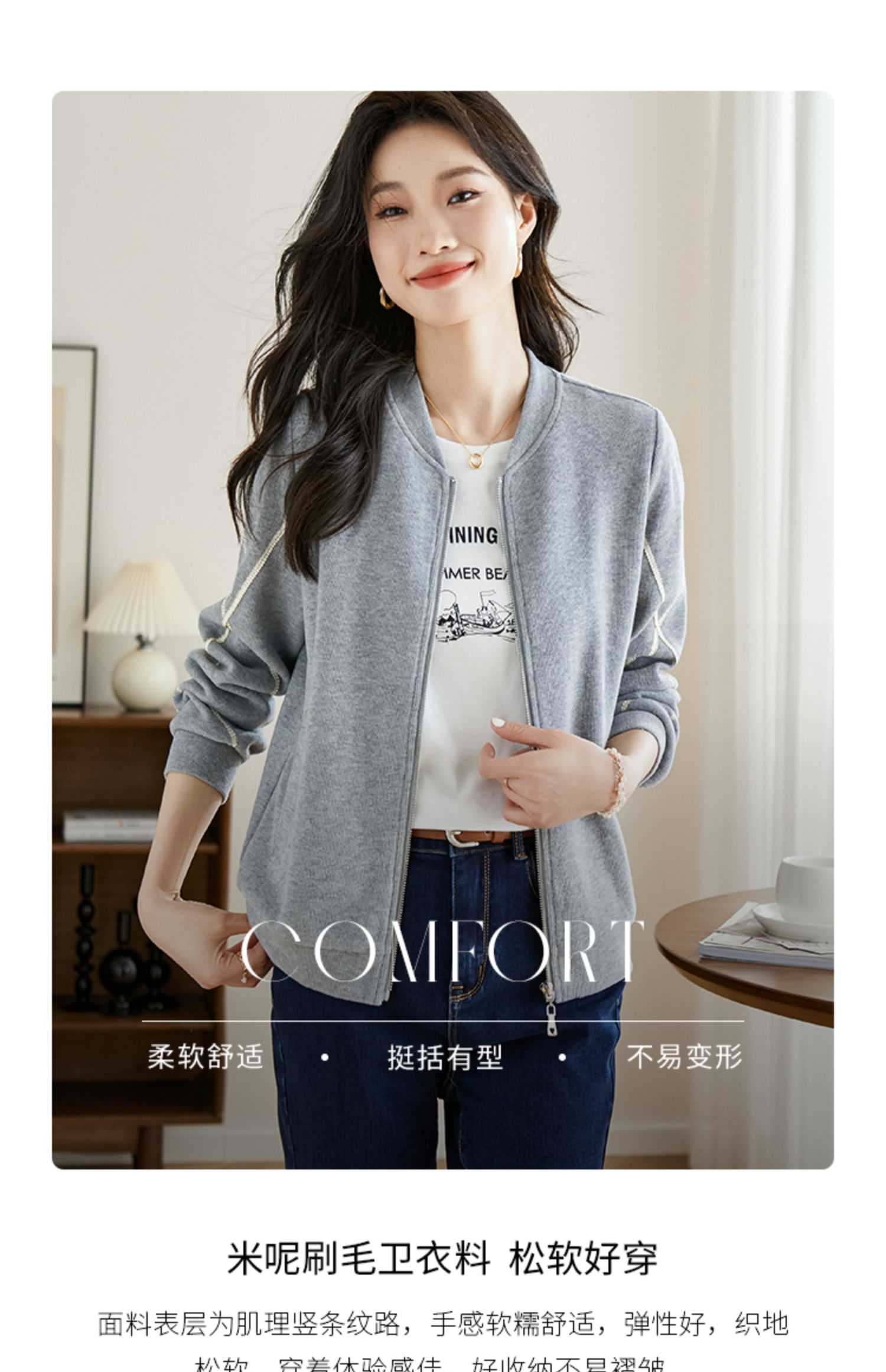 【1件82折】熙世界女士棒球服外套2025年秋季新款休闲时尚减龄小个子短款夹克