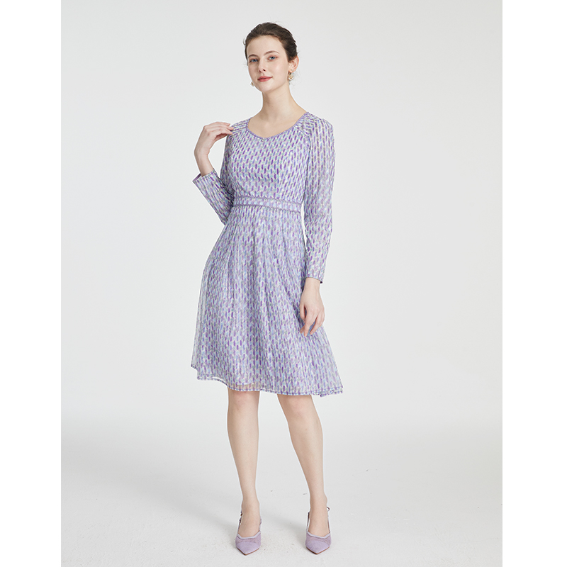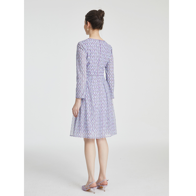 司歌印花几何长袖连衣裙圆领显瘦A881317