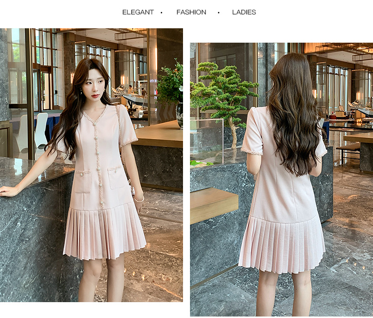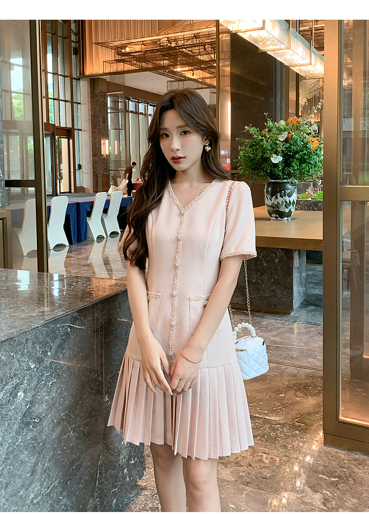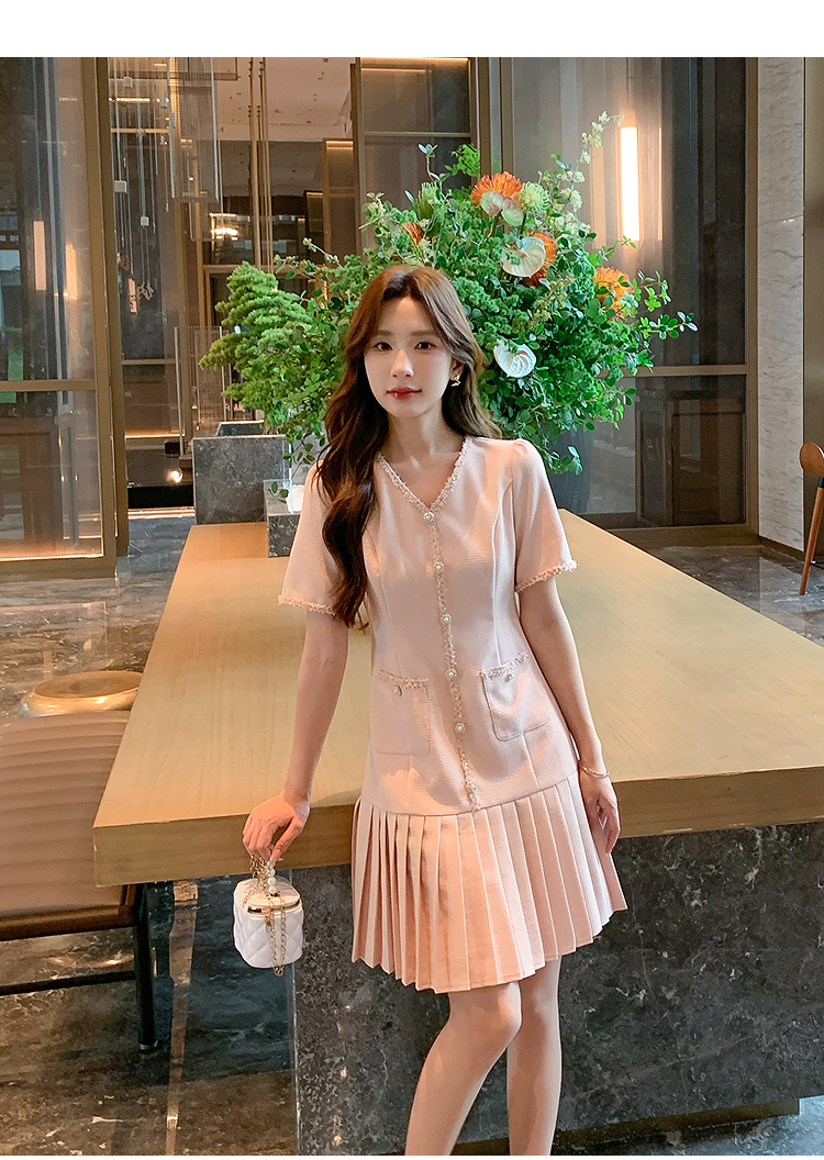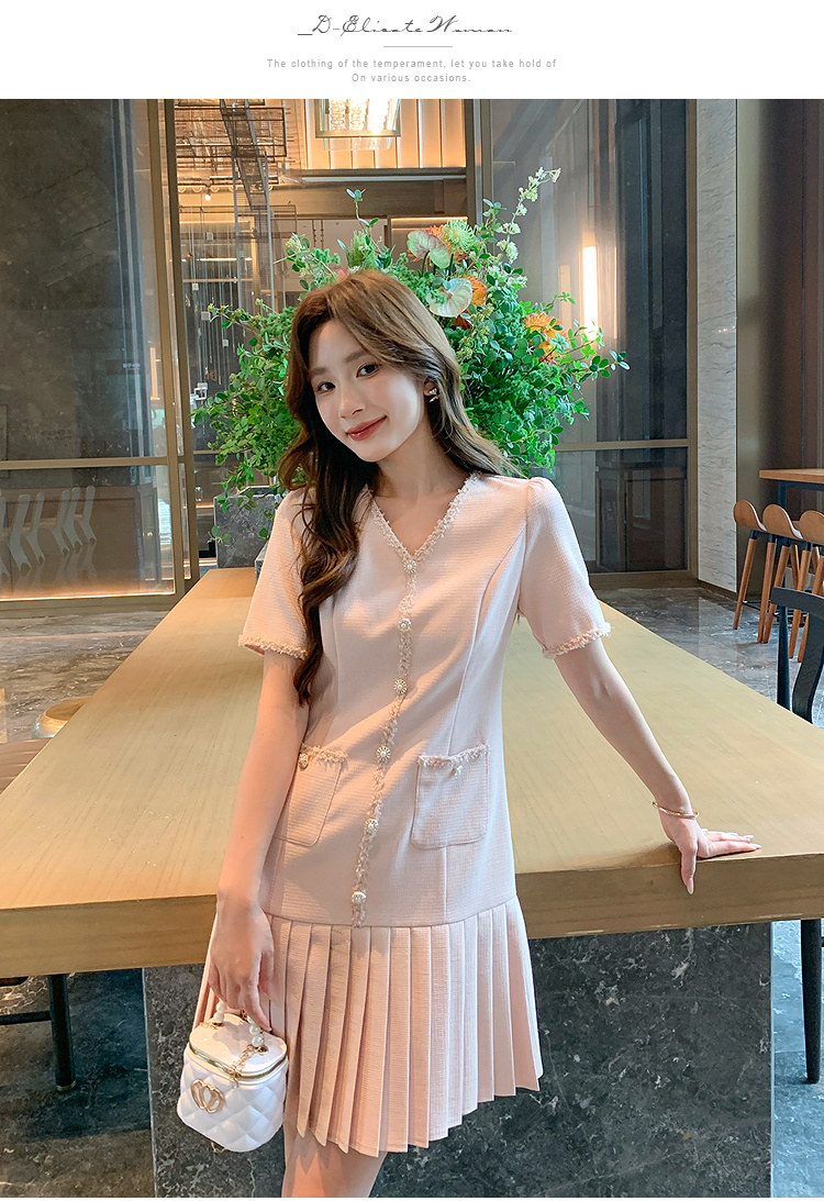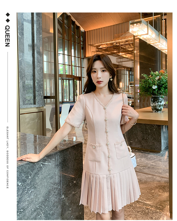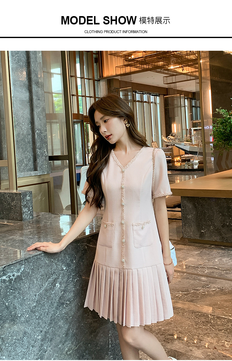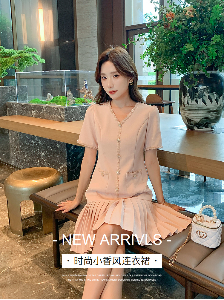 奢姿大码女装2025夏季轻奢通勤小香风连衣裙胖妹妹时尚百褶裙子9952853332