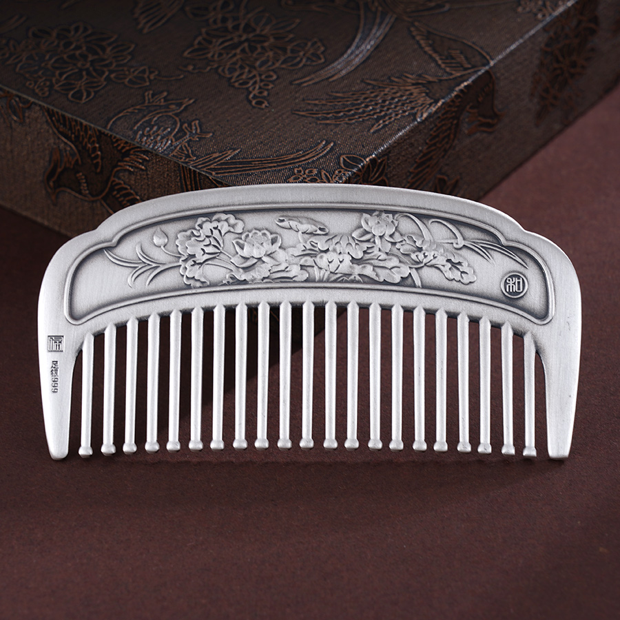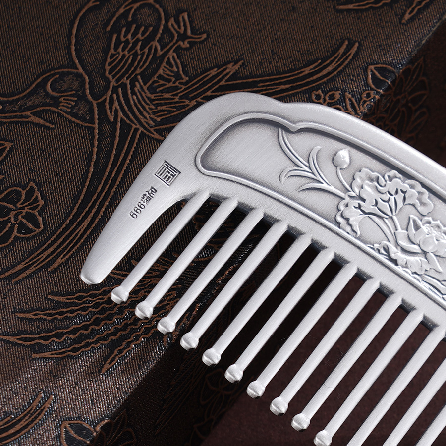 【寓意】:荷花,绽放万种诗情;牡丹,承载祥瑞意蕴。以牡丹与荷花为灵感,将国人心中富贵吉祥的象征化作一把银梳,承载幸福美满的祝愿。