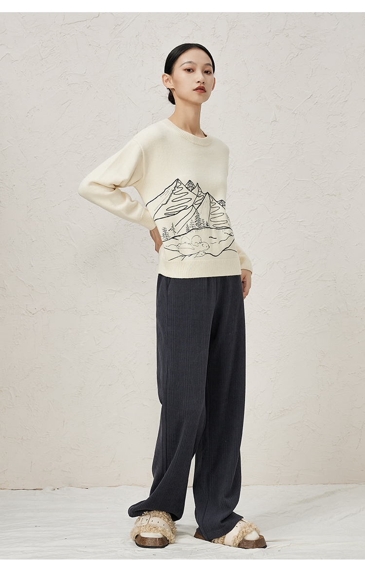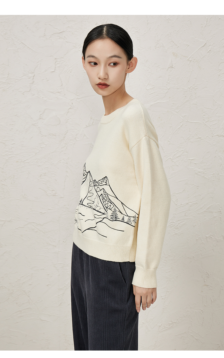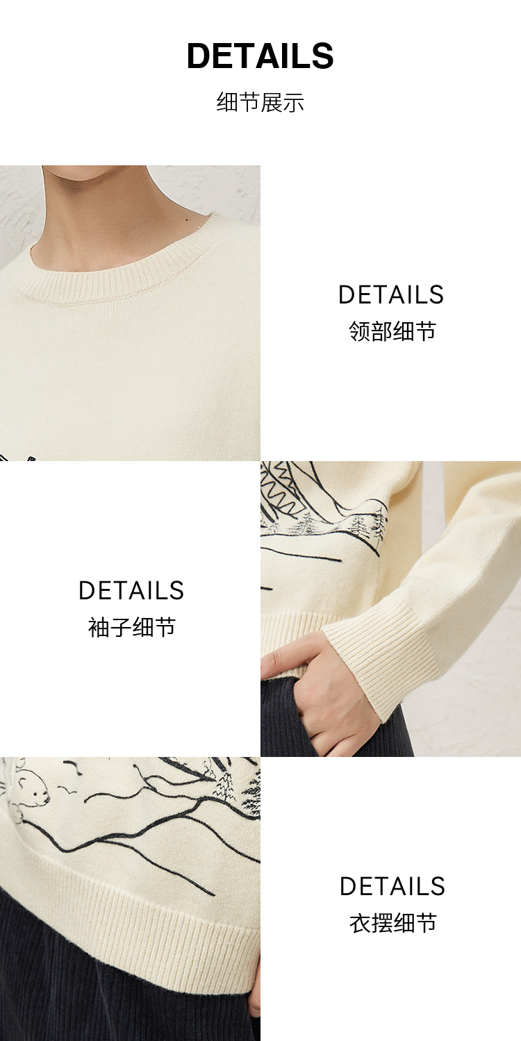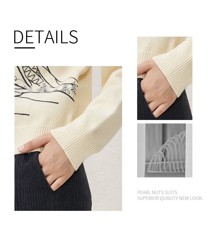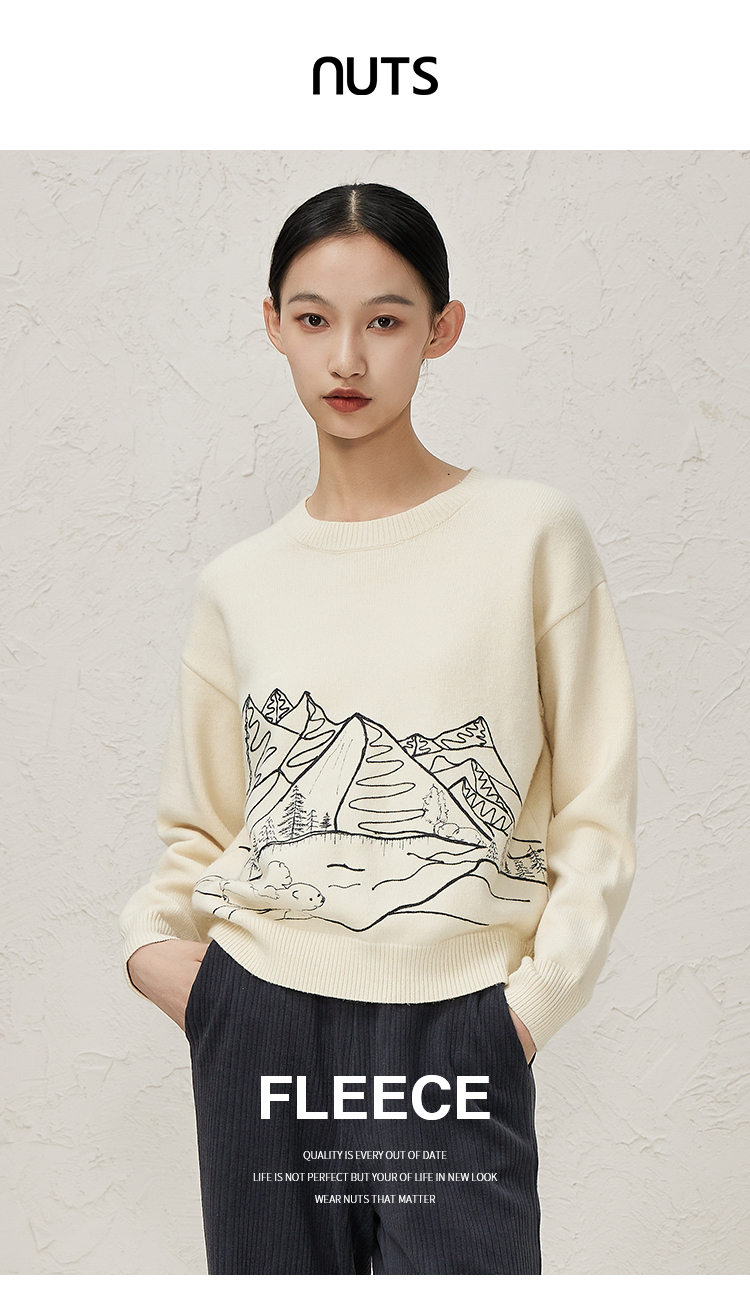 NUTS冬款白色气质百搭圆领宽松显瘦打底针织套头衫女343052065
