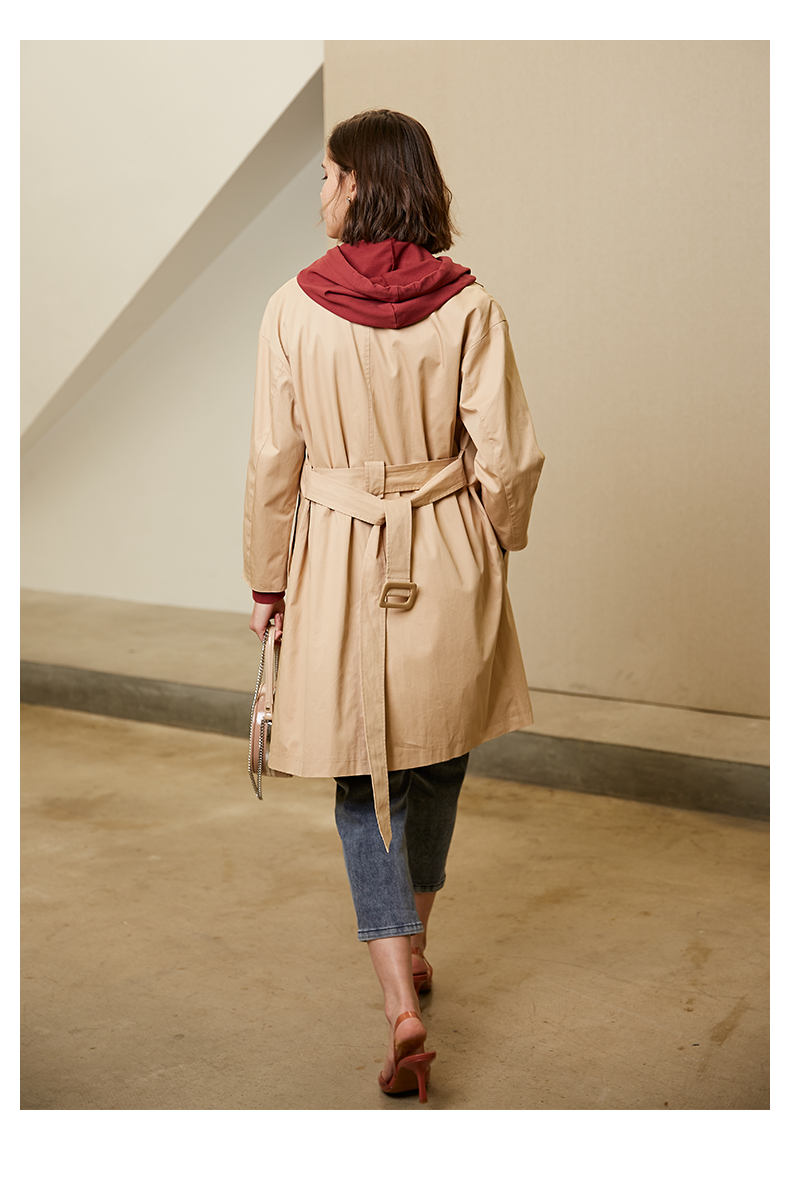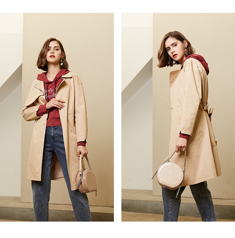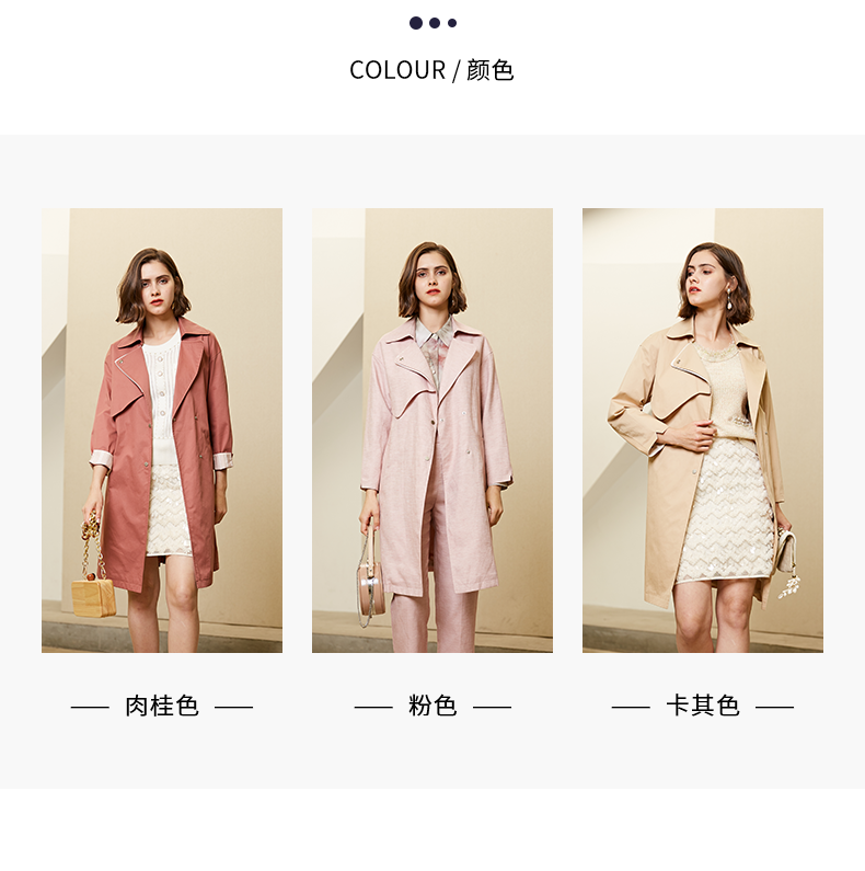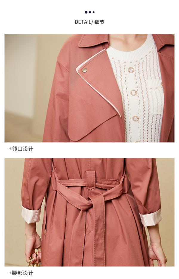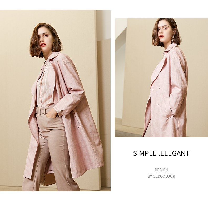 oldcolour春秋纯色时尚系带收腰英伦风百搭风衣外套女M11047208
