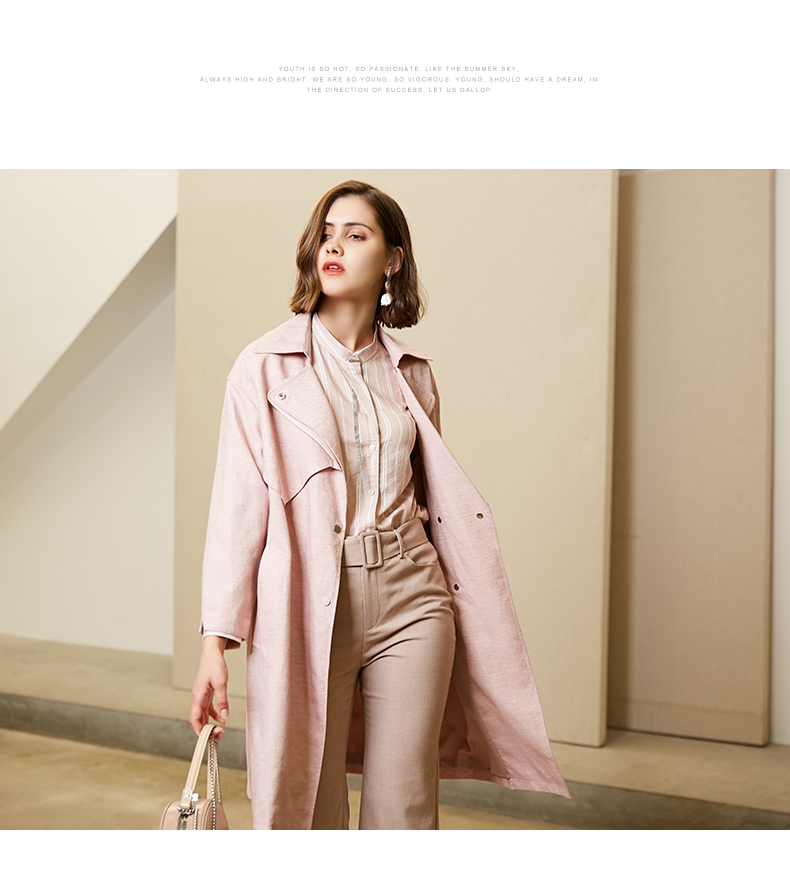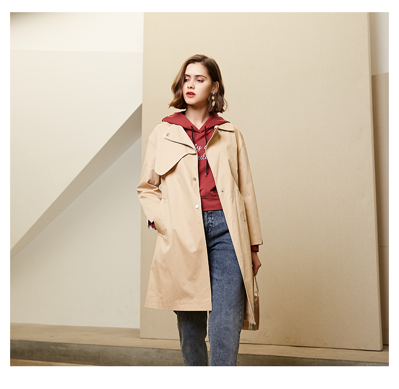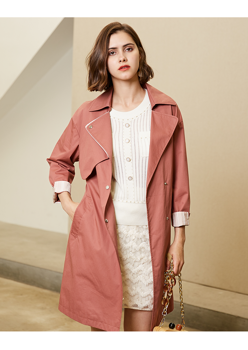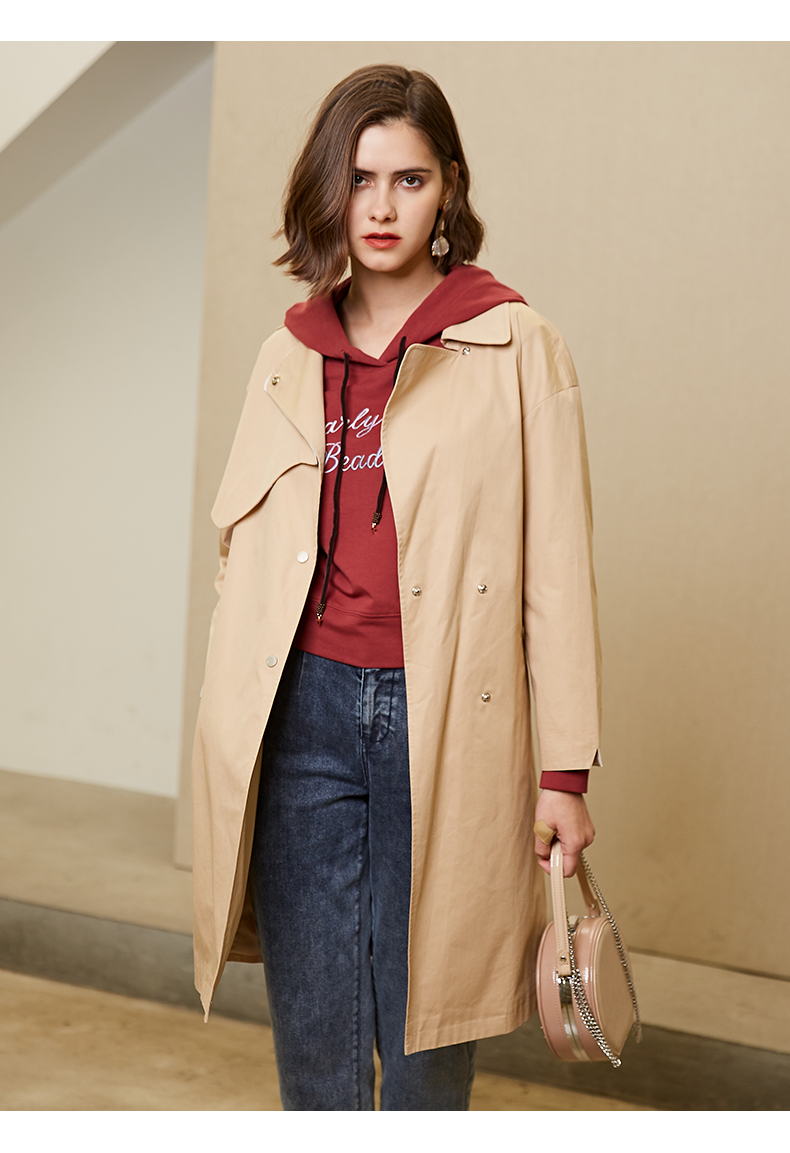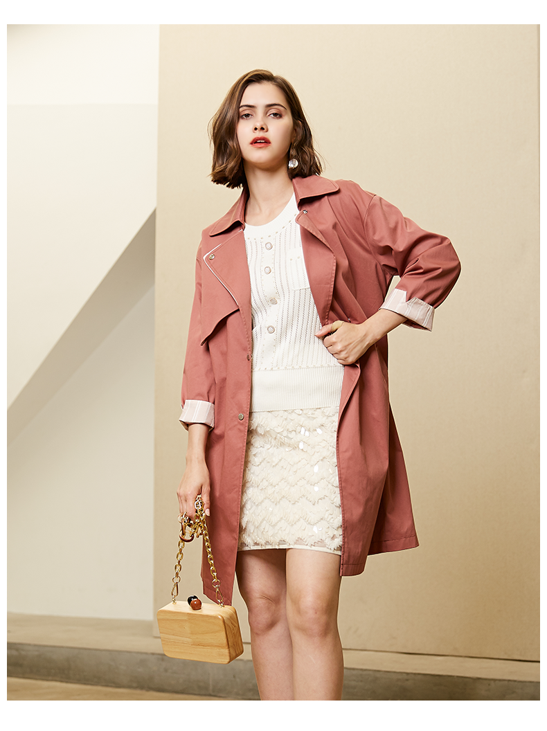 oldcolour春秋纯色时尚系带收腰英伦风百搭风衣外套女M11047208