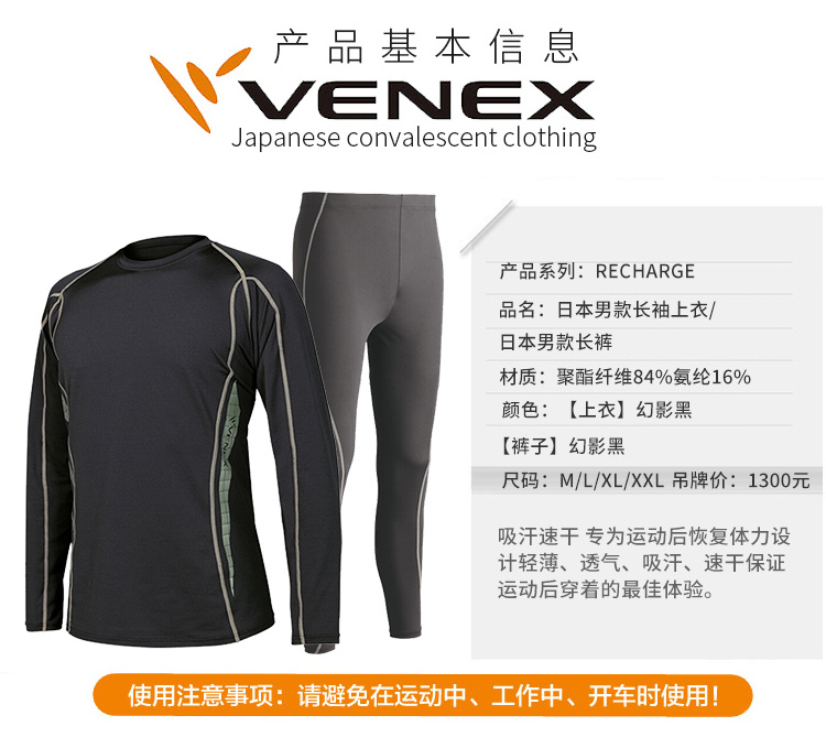 VENEX休养服运动充能系列男款 长袖短袖男款
