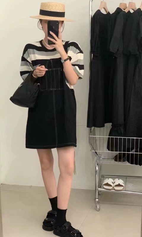 23810 # 条 均码 夏装ins港味假两件连衣裙 显瘦拼接不规则宽松百搭