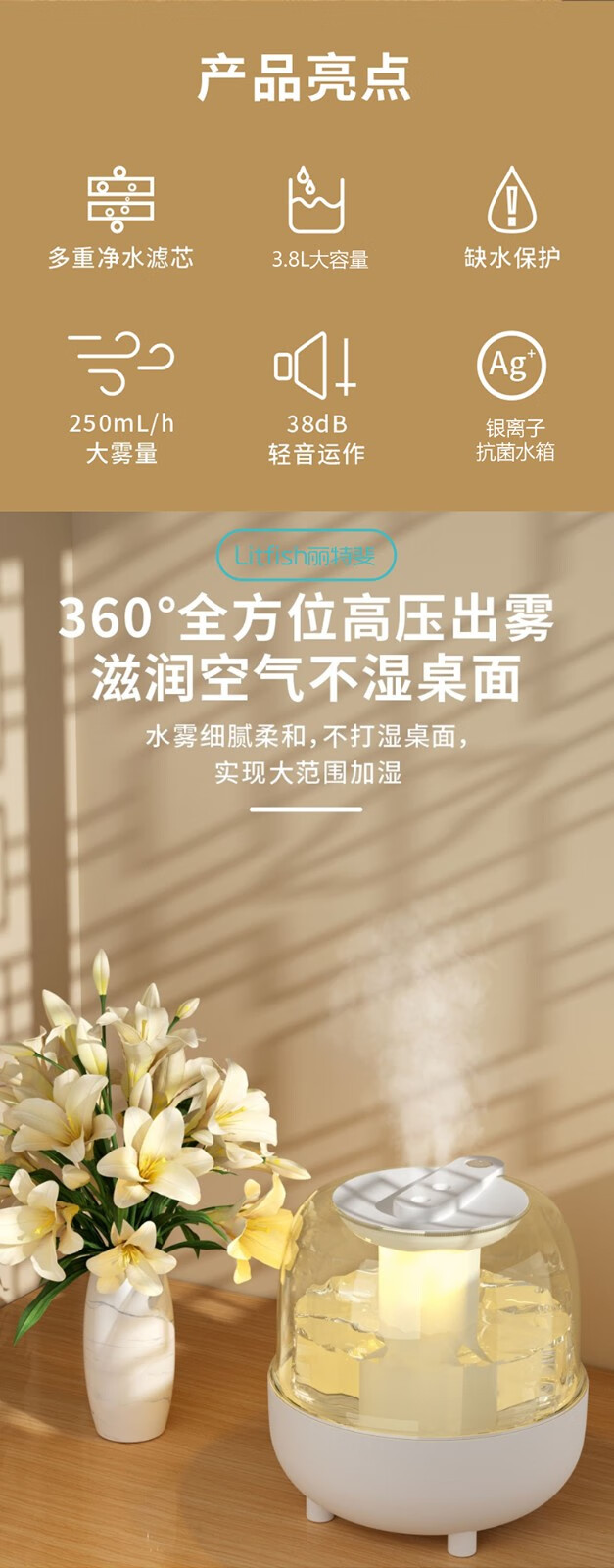丽特斐丽特斐3.8L大雾量桌面加湿器J4 绿色