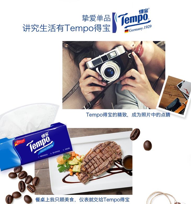 Tempo源自德国1929 得宝抽纸 4层 90抽 加厚 面巾纸 天然无香 德宝 抽纸 卫生纸 手纸 面巾纸