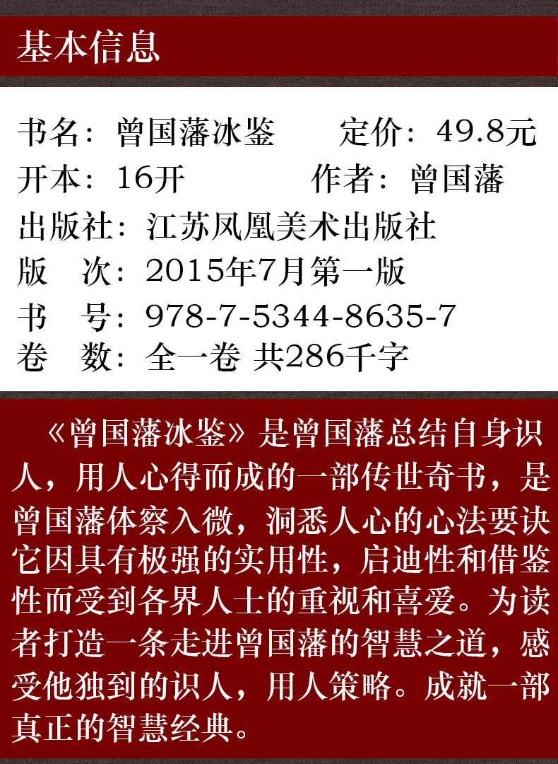 中国传统文化经典荟萃一曾国藩冰鉴(精装)原文注释译文文白对照曾国藩冰鉴 人才学人际沟通处事方法识人术曾国潘