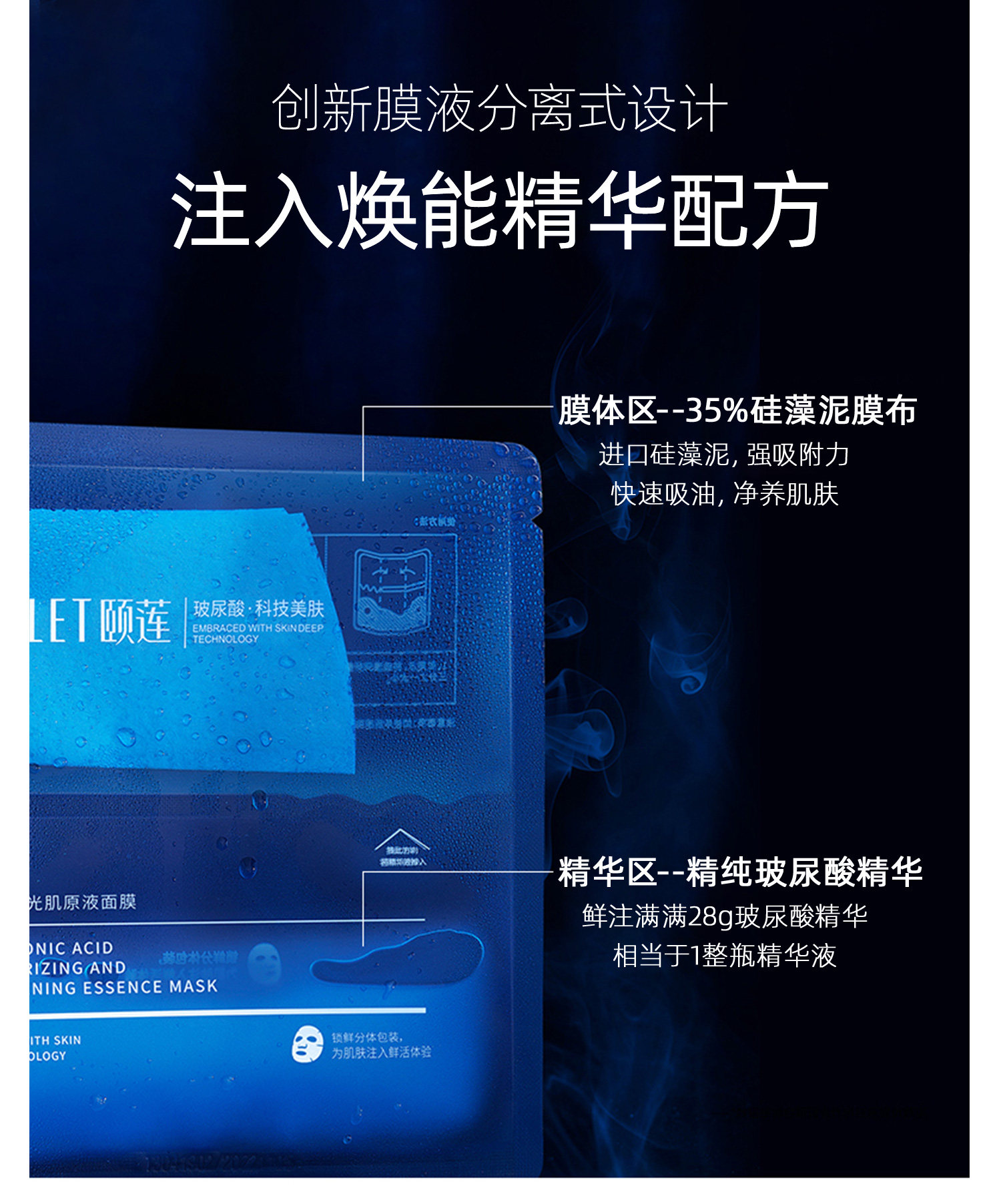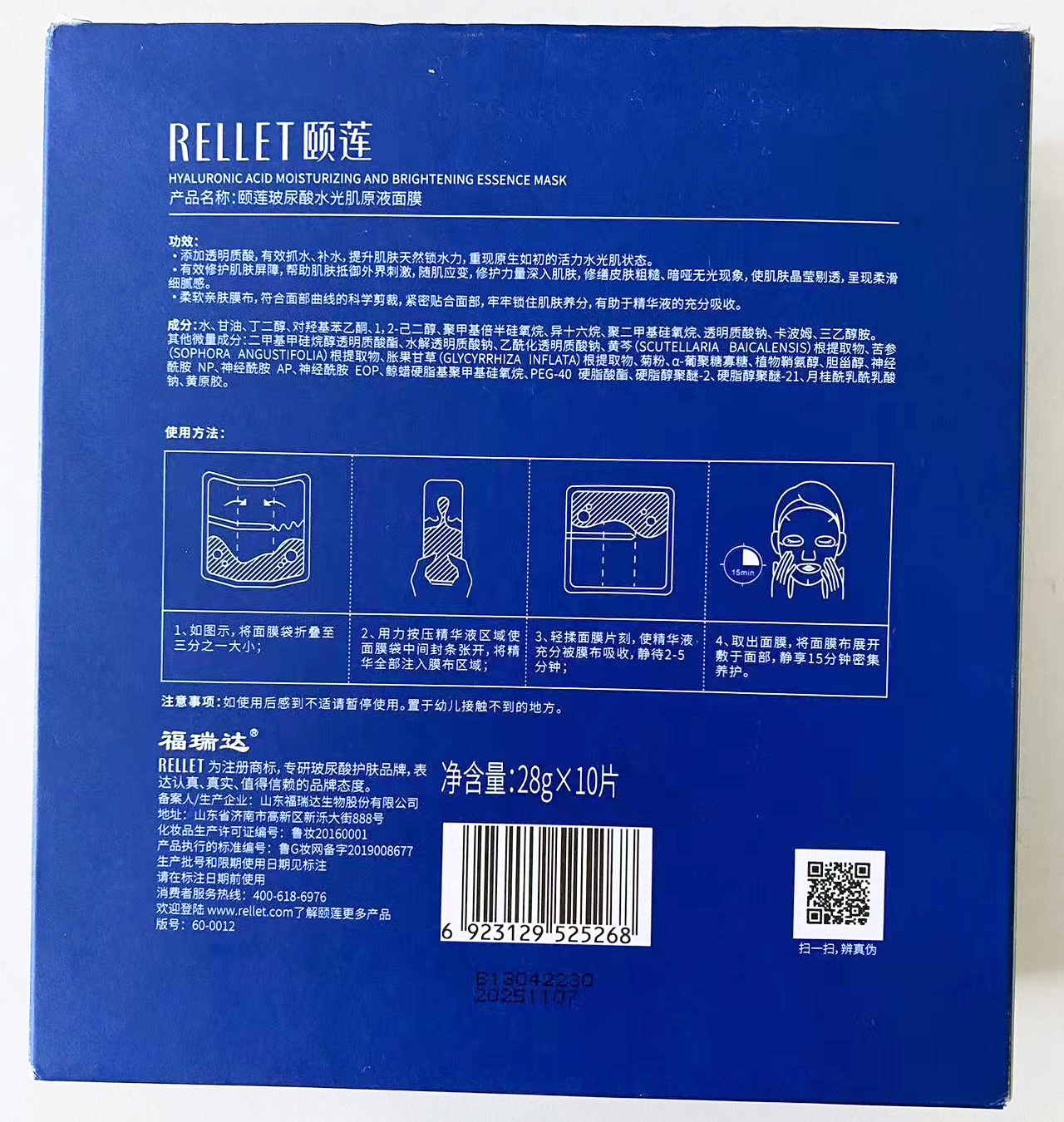 [买3送1] 福瑞达颐莲玻尿酸分体面膜 熬夜修护敏感神经酰胺水高保湿急救10片/盒