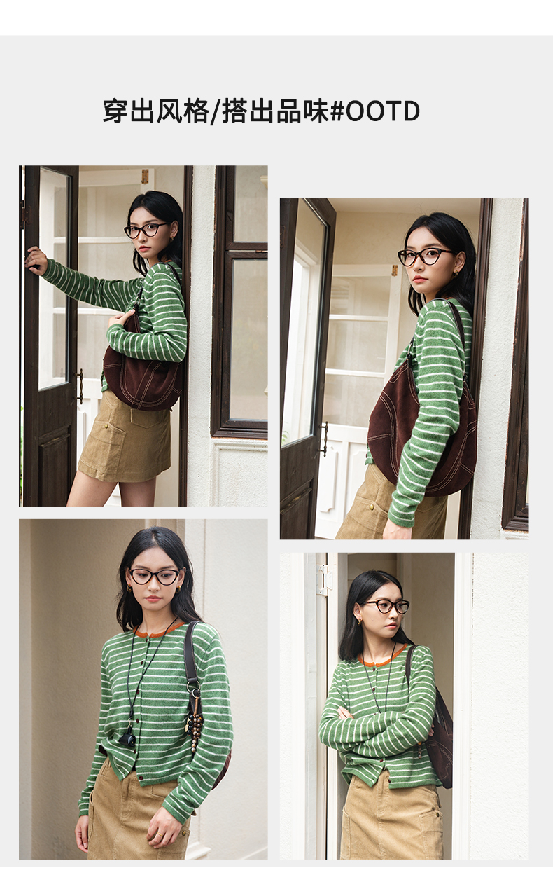 【门店同款】ENJOY冬季“暖冬知性”条纹撞色开衫 166796352