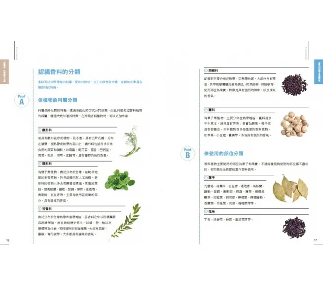 蒐錄並介紹各種香料的種類、使用方法與保存方式,