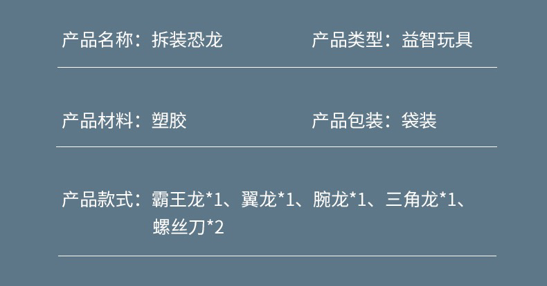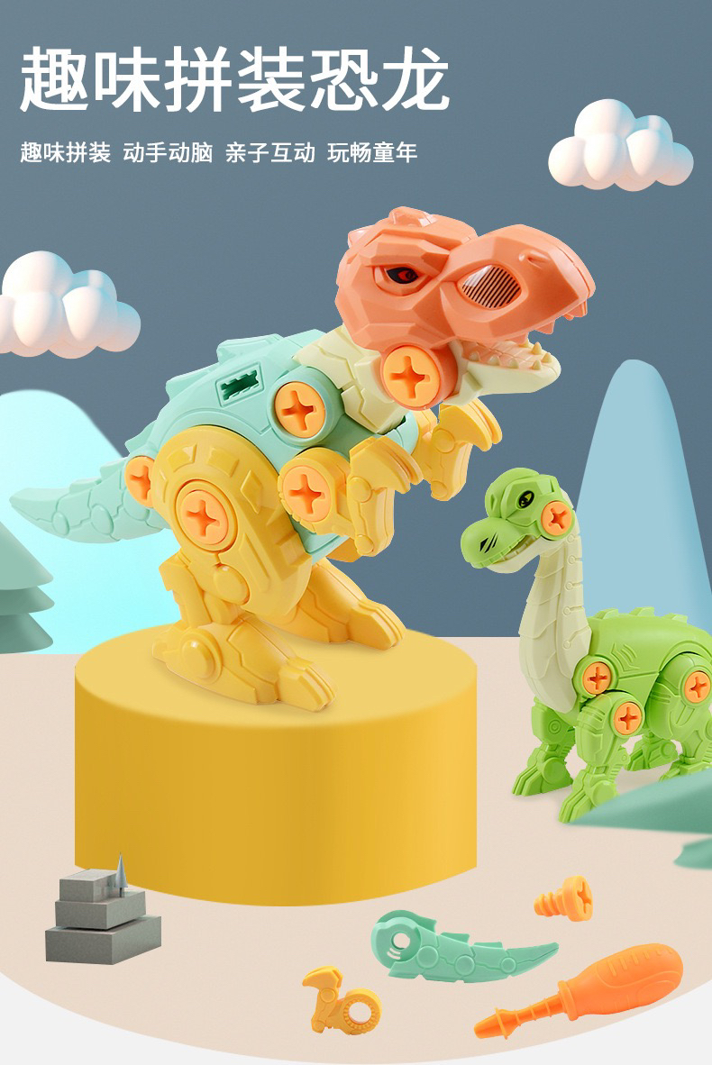 【博乐里】6-101 四只装可拆卸恐龙模型 DIY拧螺丝儿童拼装玩具套装