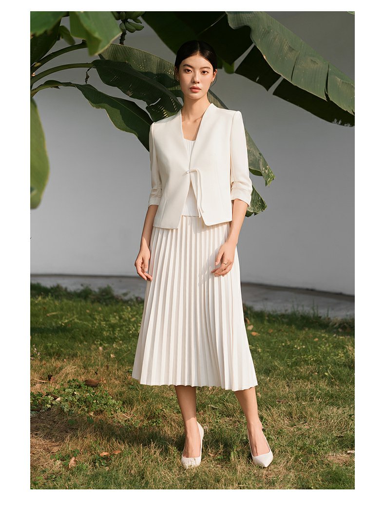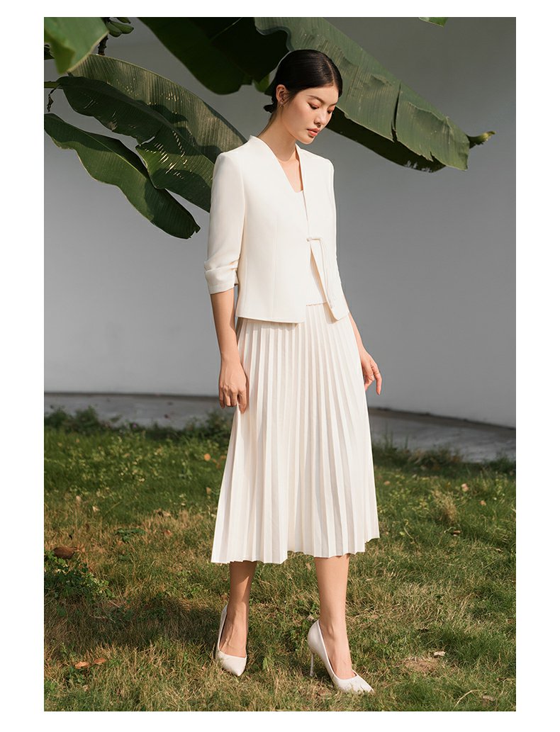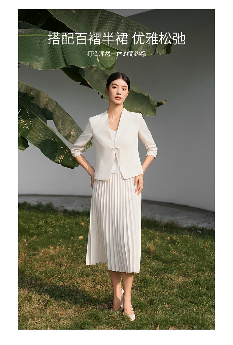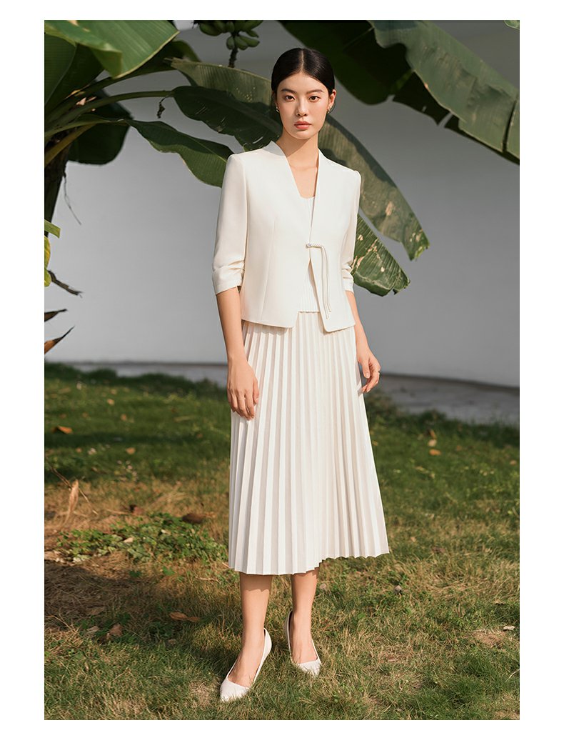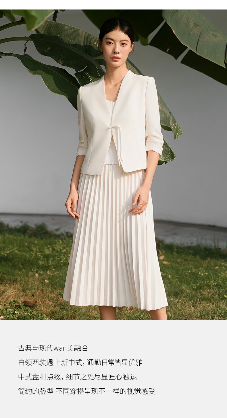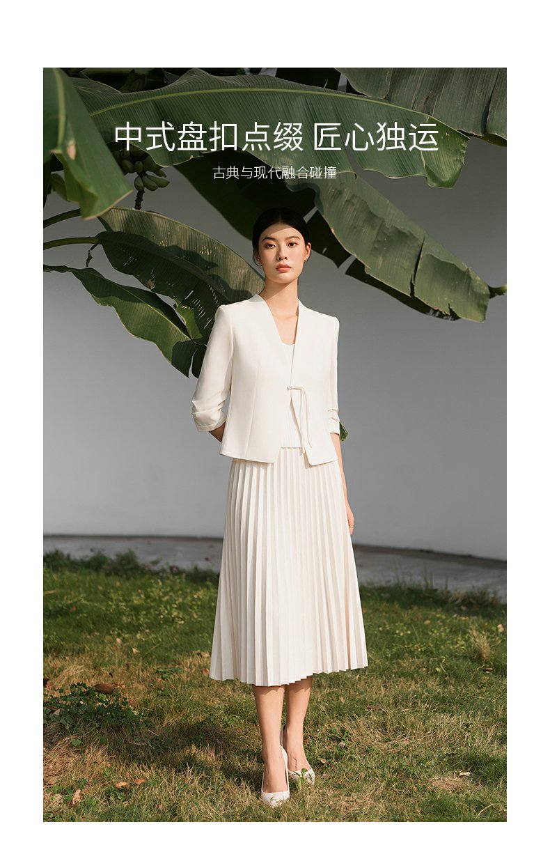 IWY/气质设计感盘扣西装套裙女夏薄款短款西服百褶裙珠宝设计师工作服C14240+S14265