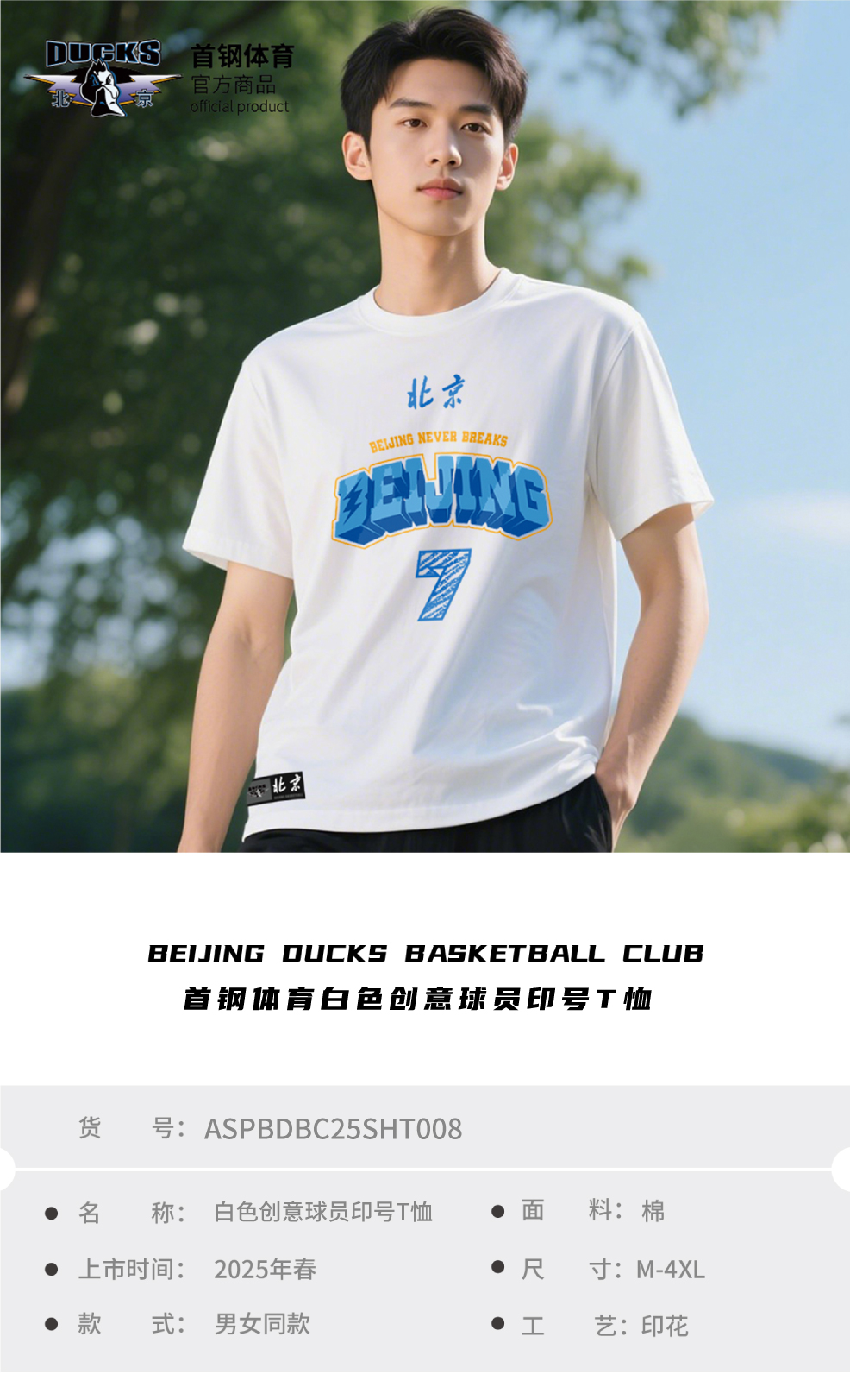 【官方正版】北京首钢俱乐部 | 春夏新款白色T恤创意球员印号短袖透气舒适