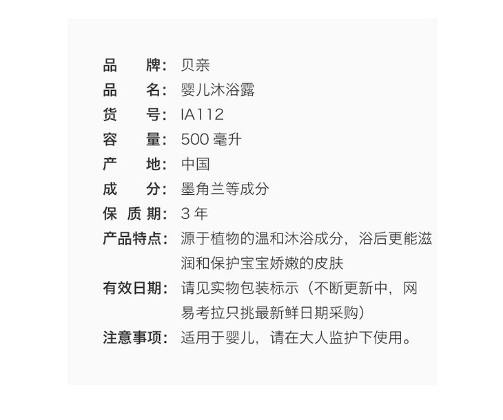 【一般贸易】日本贝亲Pigeon婴儿沐浴露500ML IA112