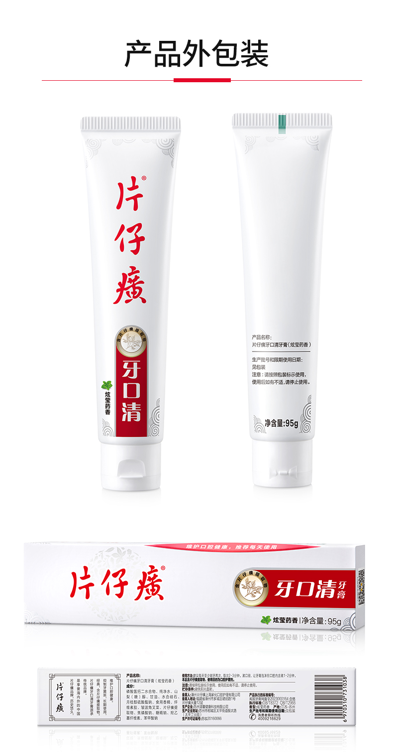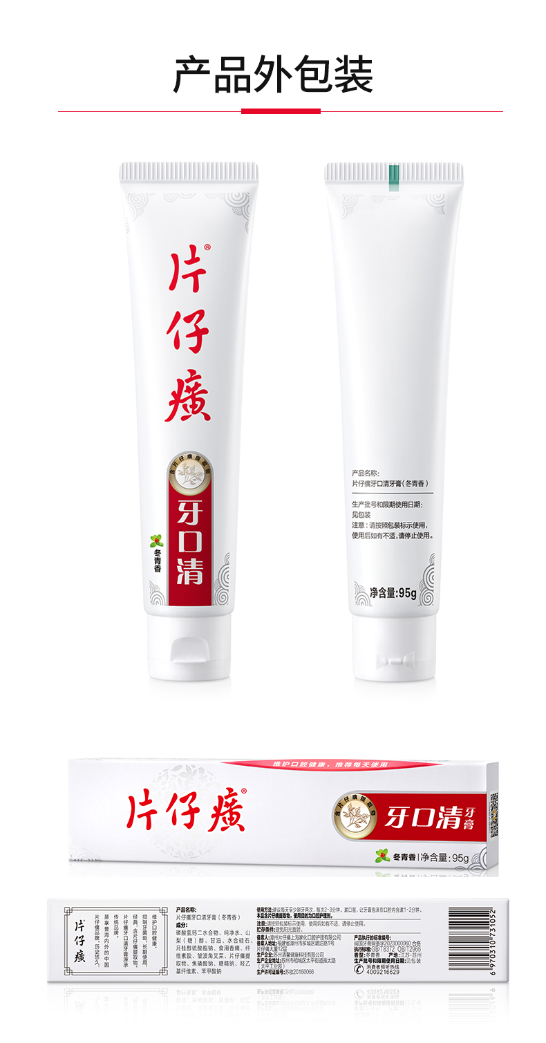 片仔癀牙口清牙膏炫莹药香/冬青香95g