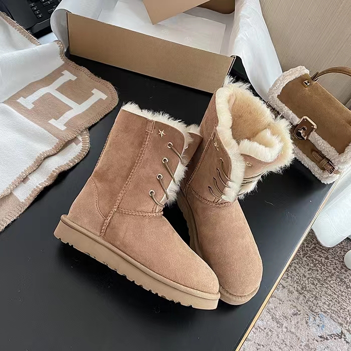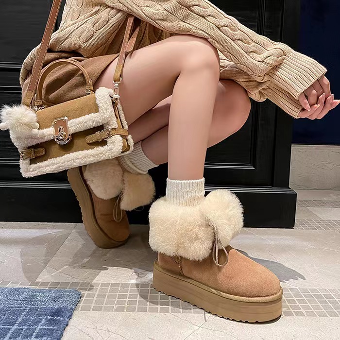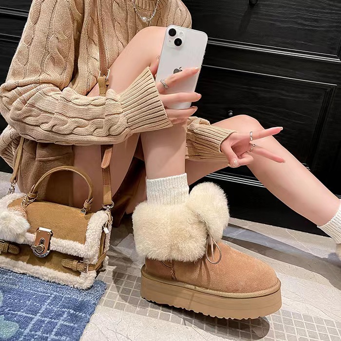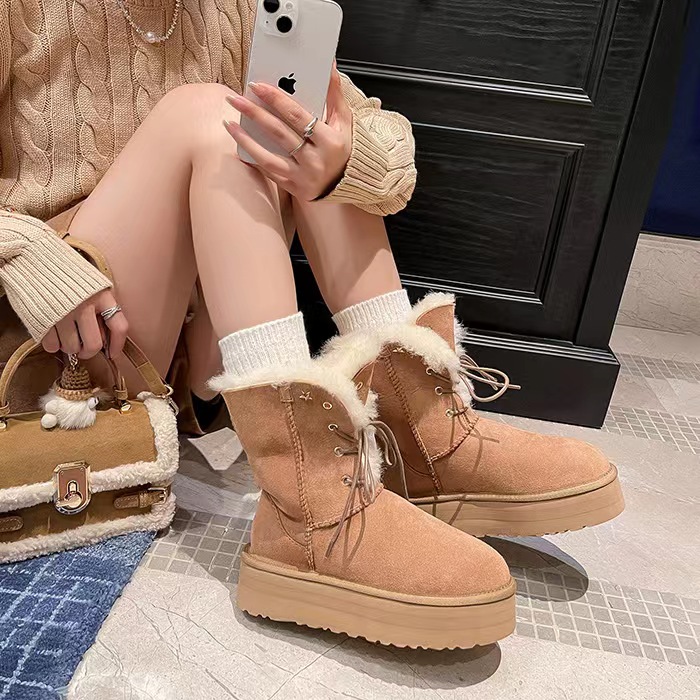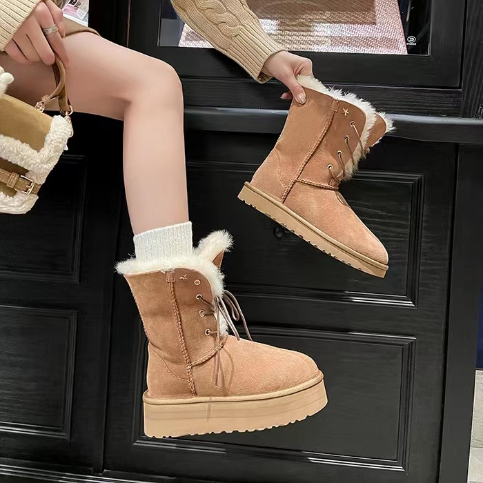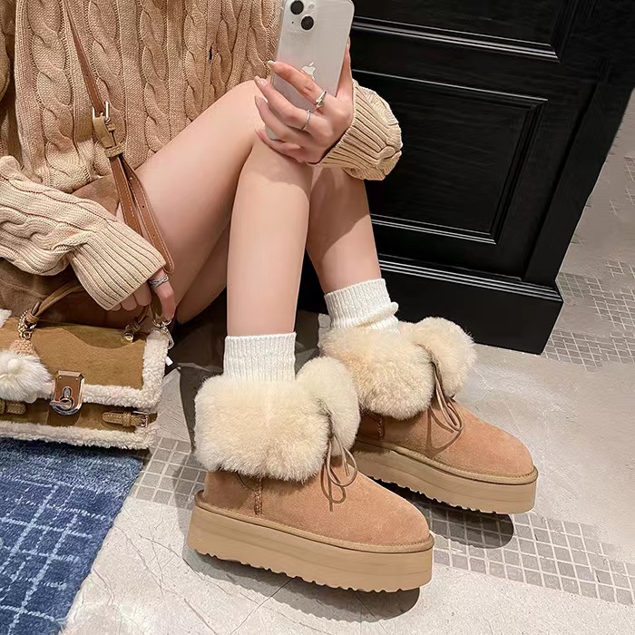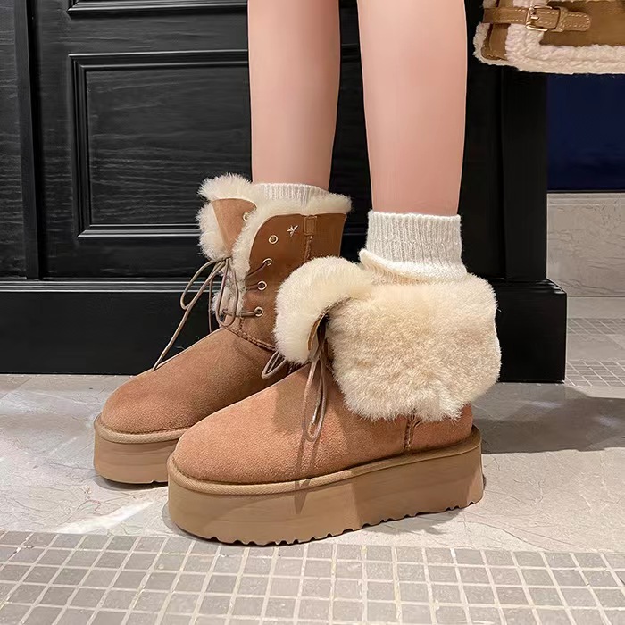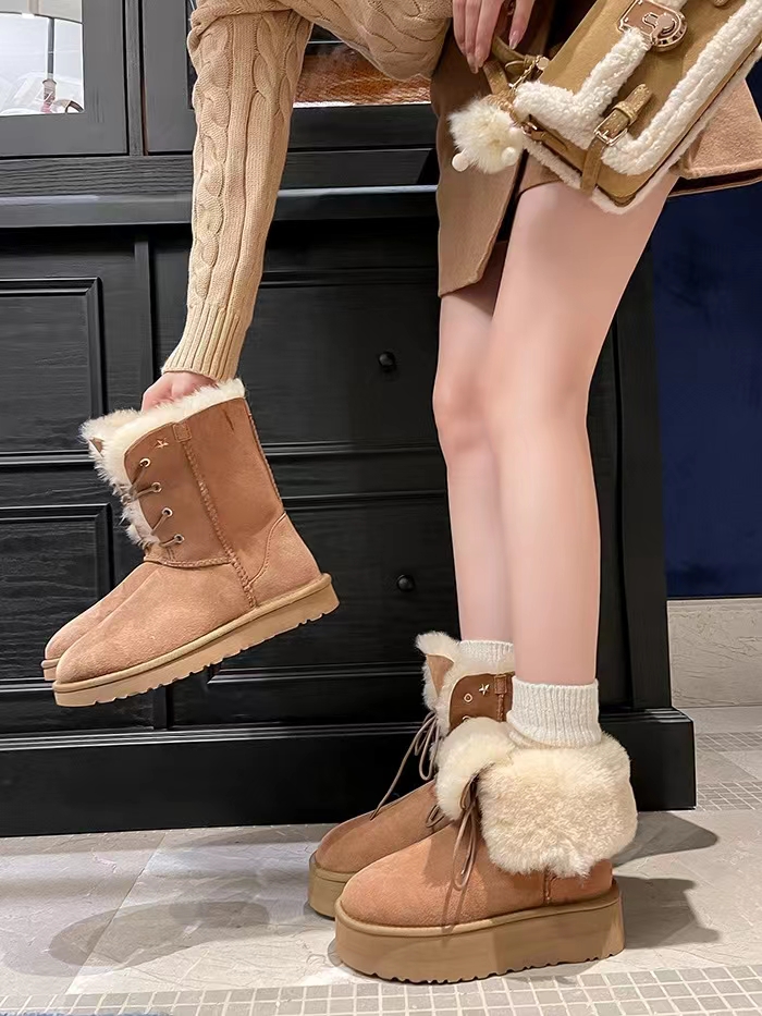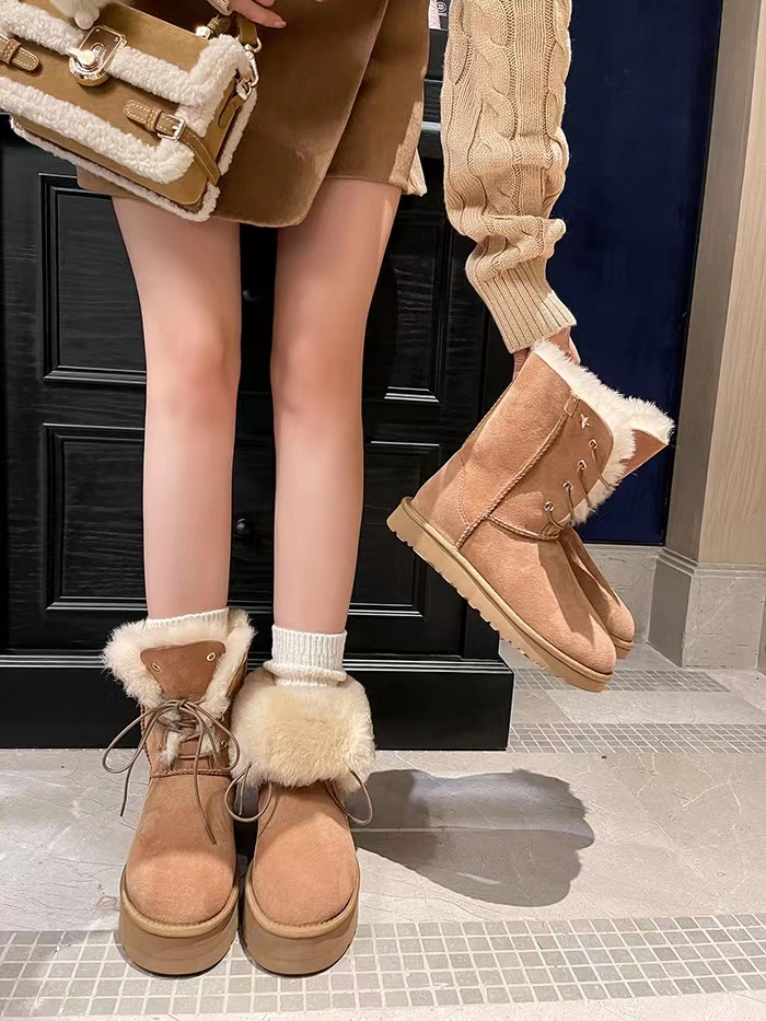 (年后发货)【社群供M】奶油榛子两穿厚底系带雪地靴女冬季加绒毛毛棉鞋(下单后7天内发货)