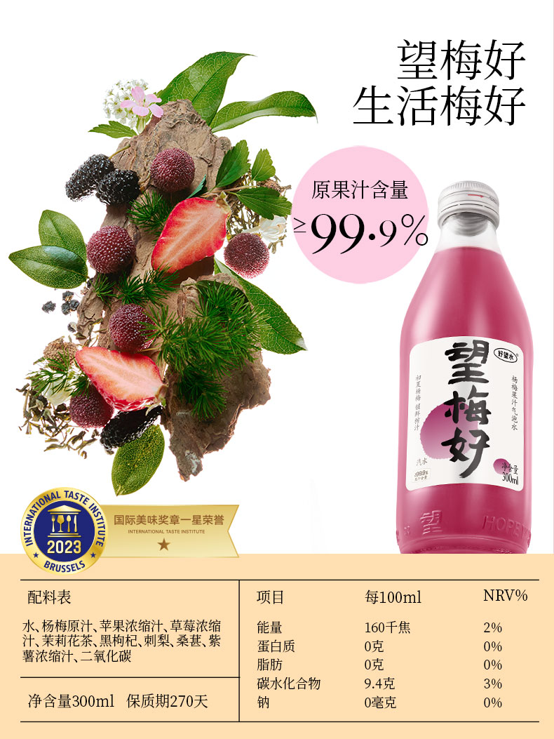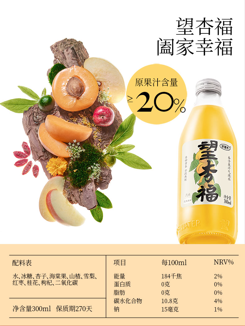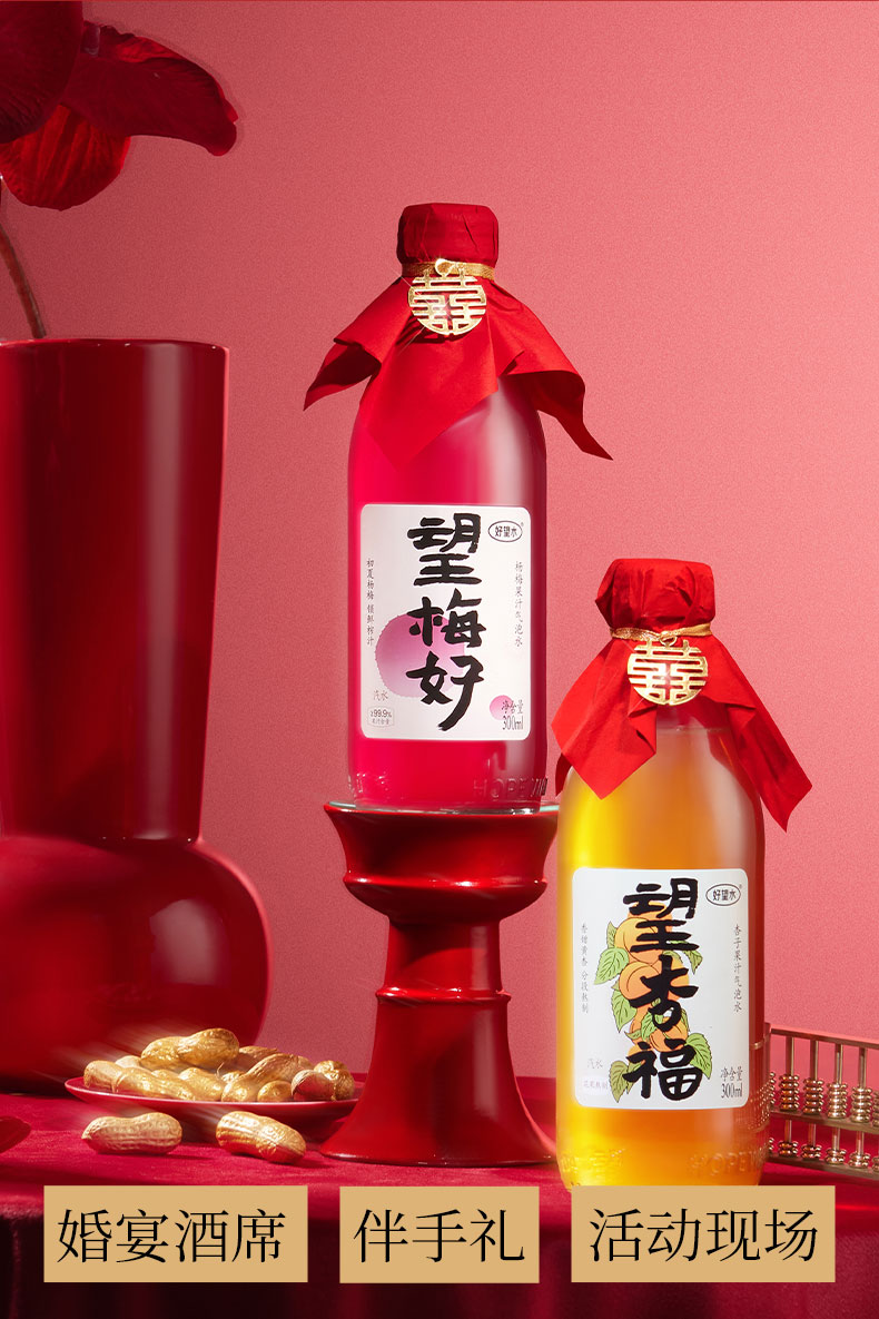 好望水 气泡果汁饮料 玻璃瓶系列 婚礼款(赠喜字8个)300ml*6