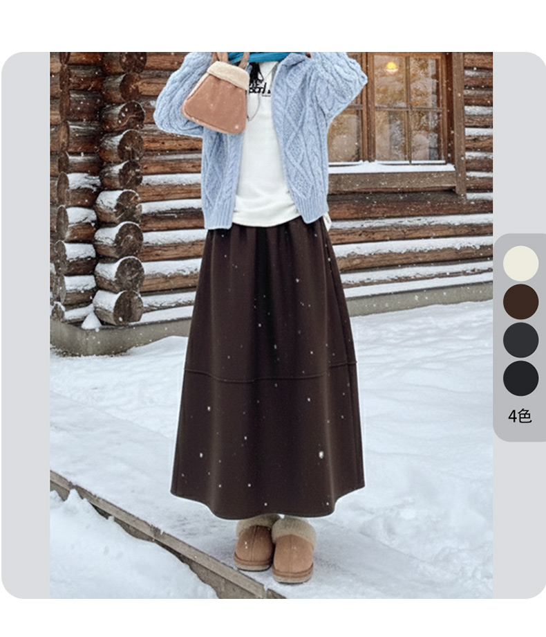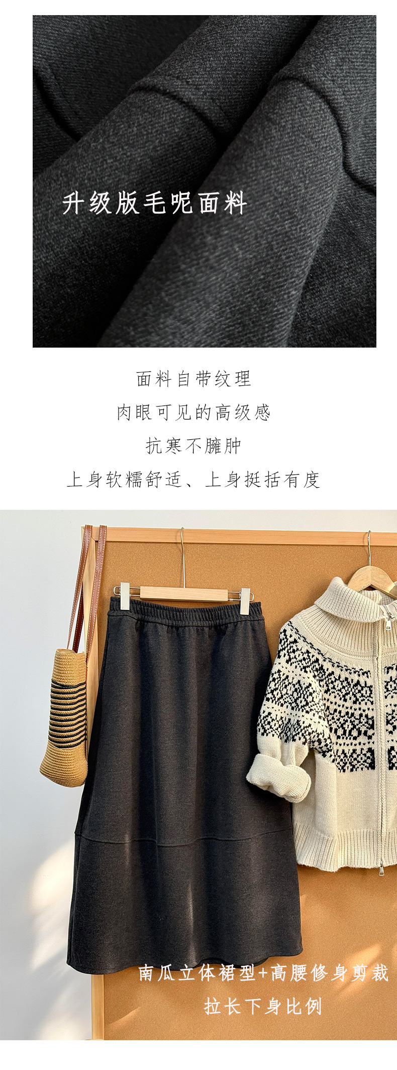 【合作款】复古毛呢半身裙宽松显瘦a字中长款花苞裙 yc0112002