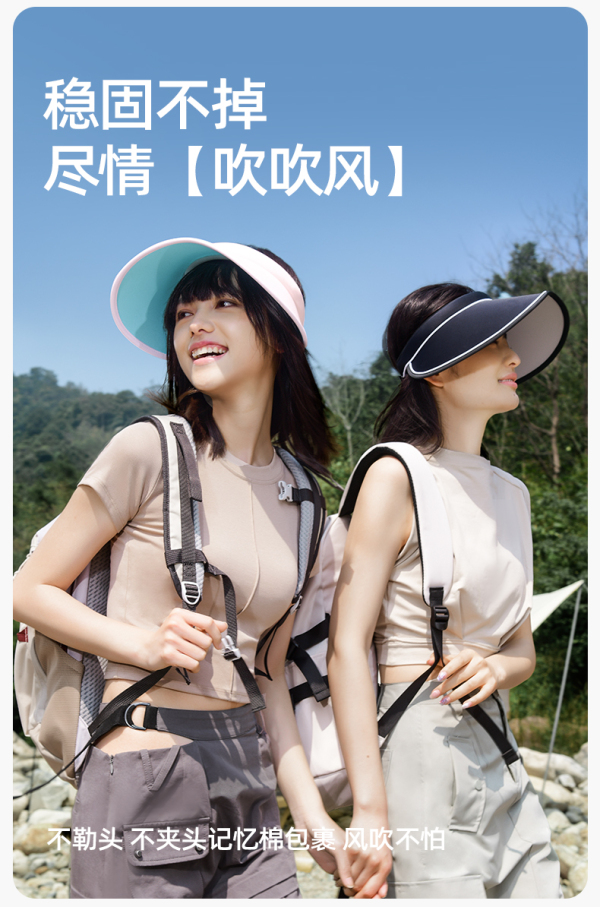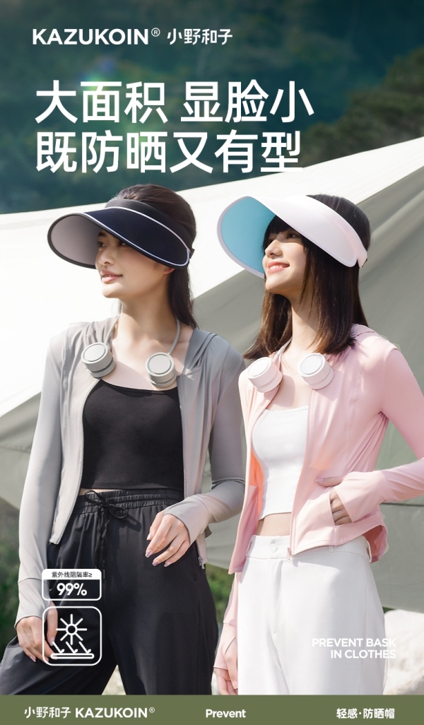 小野和子2024新款大帽檐防晒帽女防紫外线空顶夏骑车遮太阳帽子