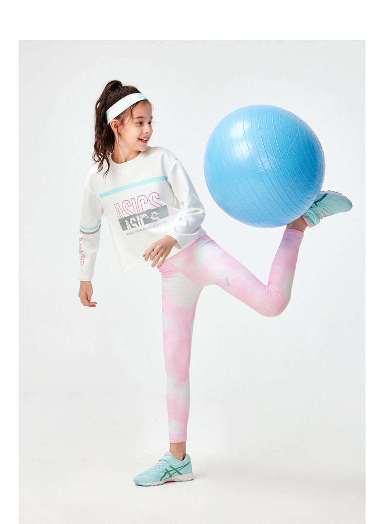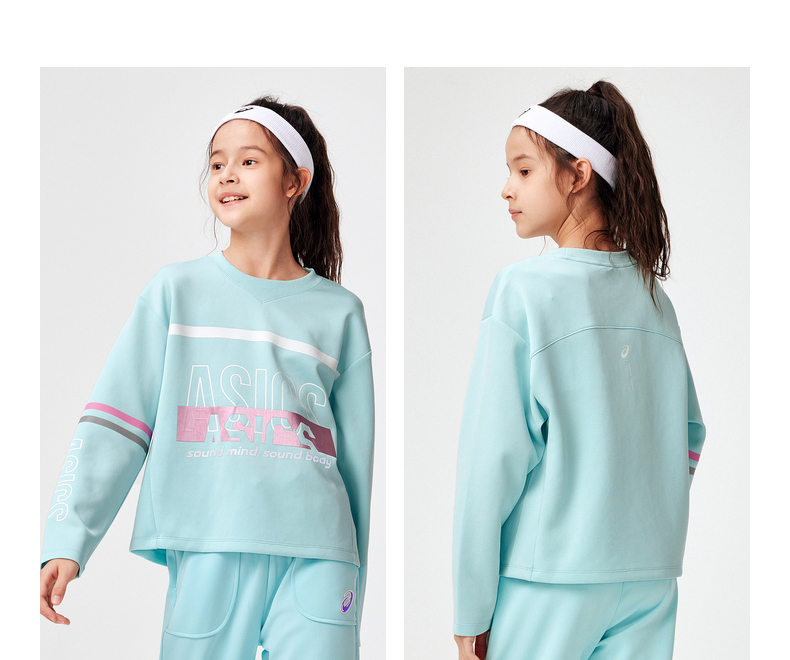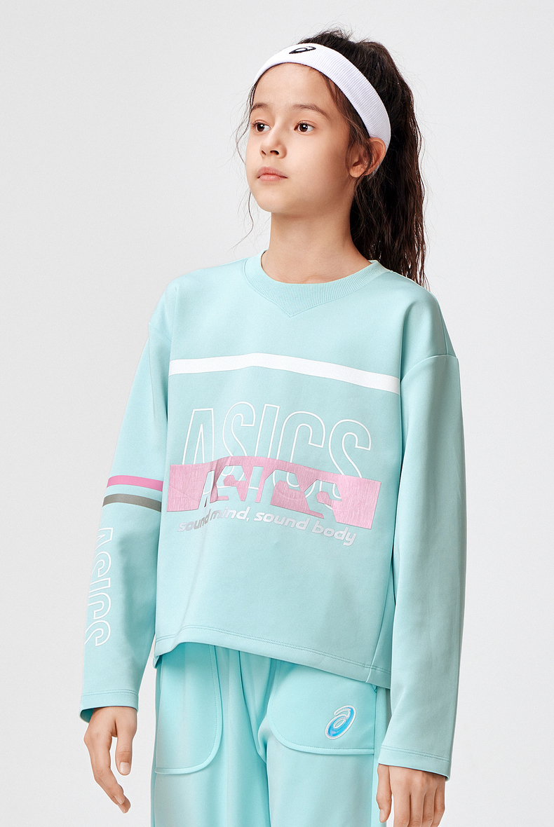 asics/亚瑟士童装2024年春季女儿童长袖舒适柔软针织卫衣跑步衣