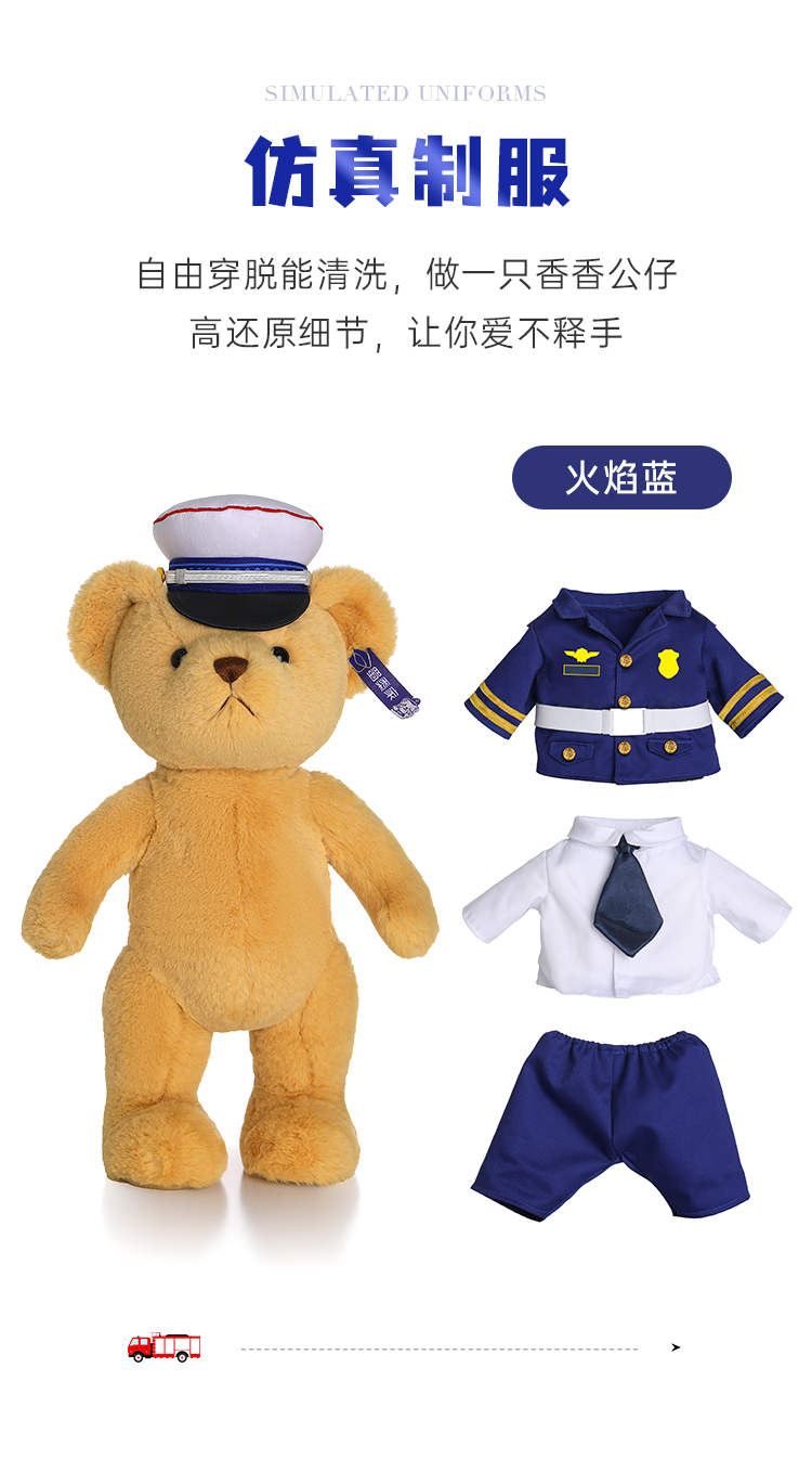 【实付满199送钥匙扣】【蜀黍家消防小熊】毛绒小熊公仔玩具服装可脱卸毛绒玩偶送礼礼品礼物
