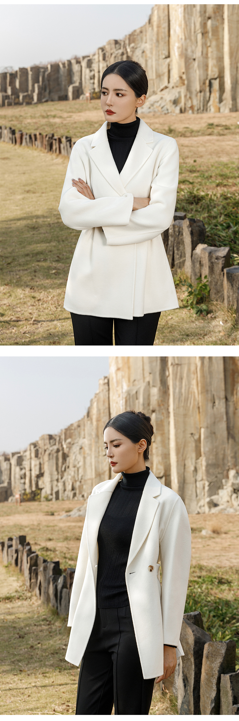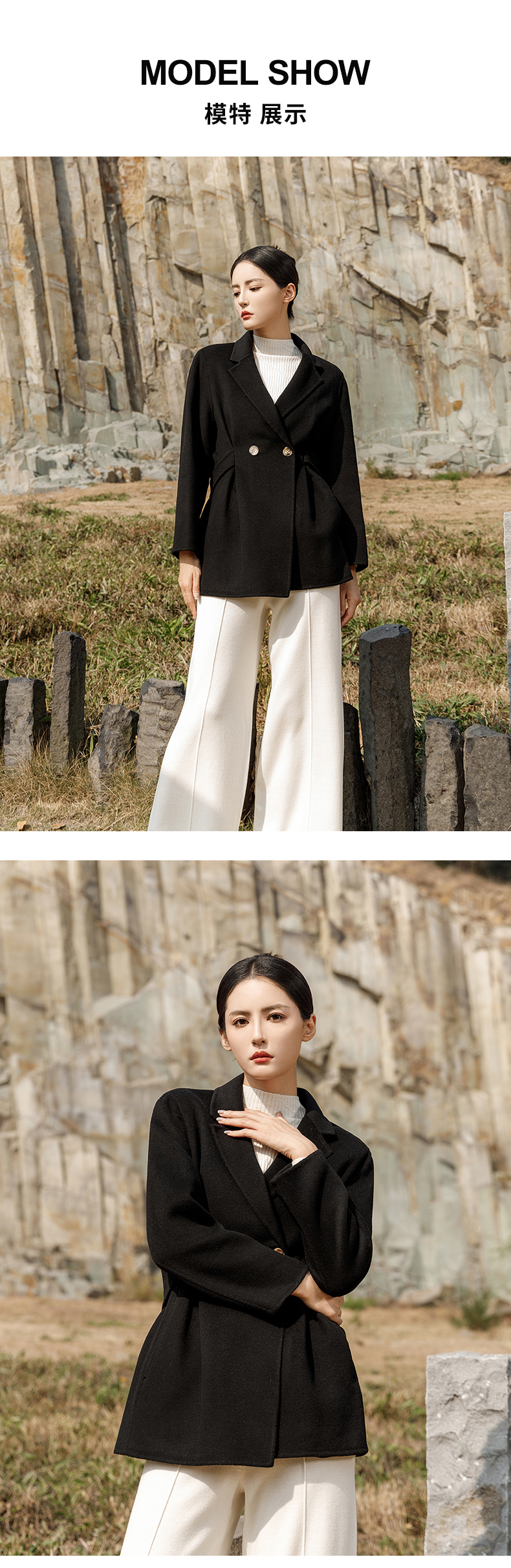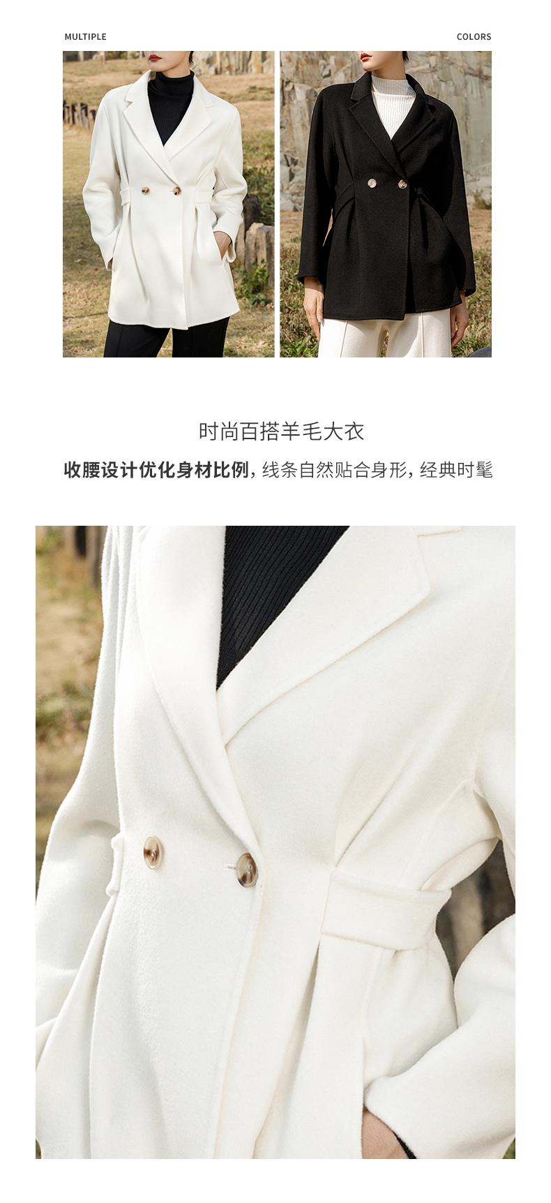【特价不退换 微瑕款】阿菁娜复古小翻领经典双排扣羊毛羊绒混纺H型爆款热卖大衣A27D211032