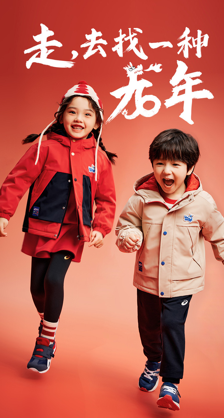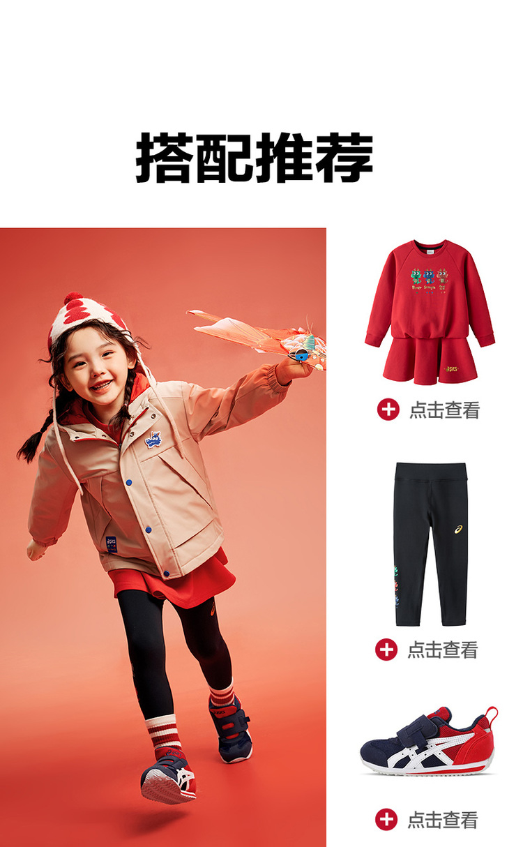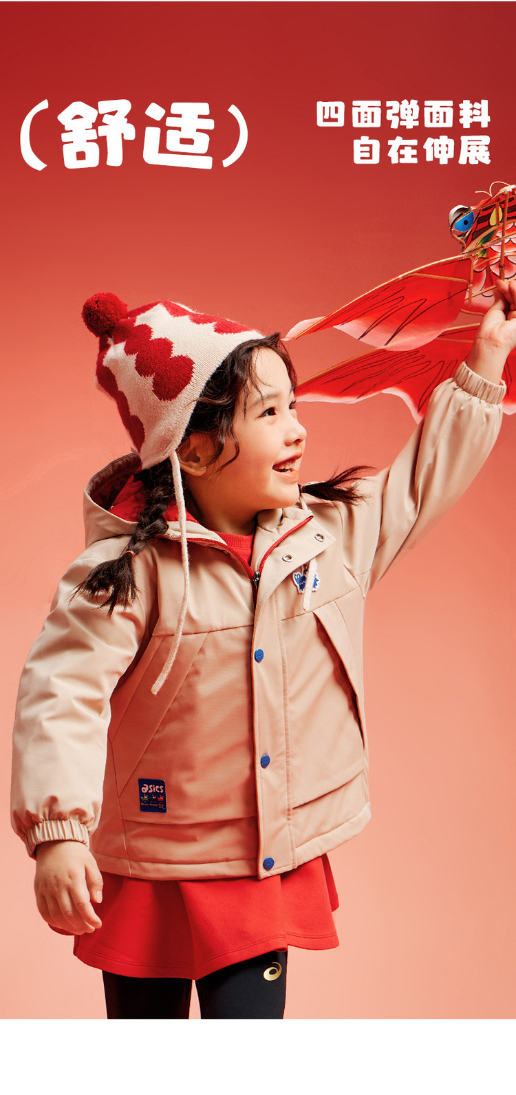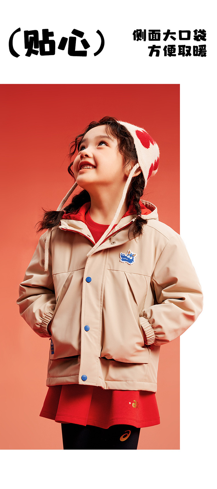 asics/亚瑟士童装24年新男女童防水透气保暖夹棉外套设计师联名款