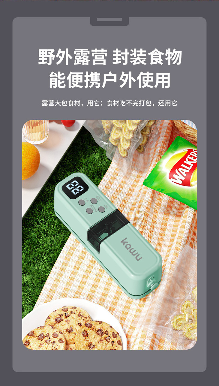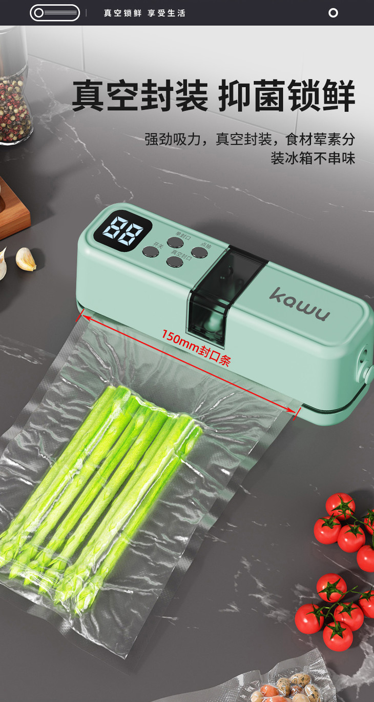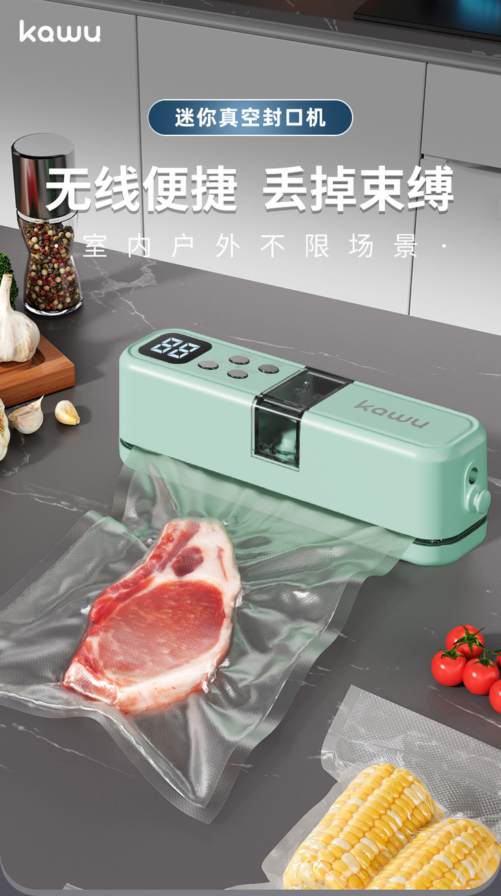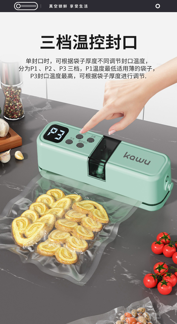 ❌吃不完的水果易氧化变质 ❌开了包装的零食易受潮影响口感 ❌荤素食材同时放在冰箱易串味 - 【卡屋多功能真空封口机】 ✅有效保鲜,除氧、防潮、锁鲜 ✅高效抗氧化,延长食物尝鲜期 ✅3种尝鲜模式有序收纳 ✅抽真空/单边封口/外抽 - 一键定格食材色/香/味 给你的生活更多鲜滋味🤩