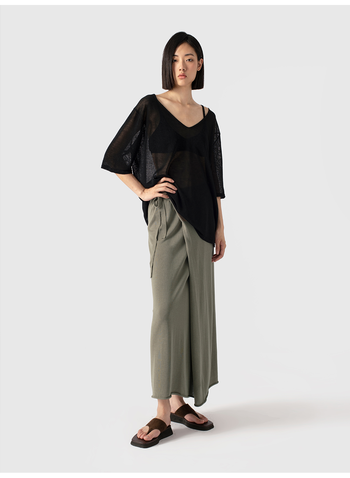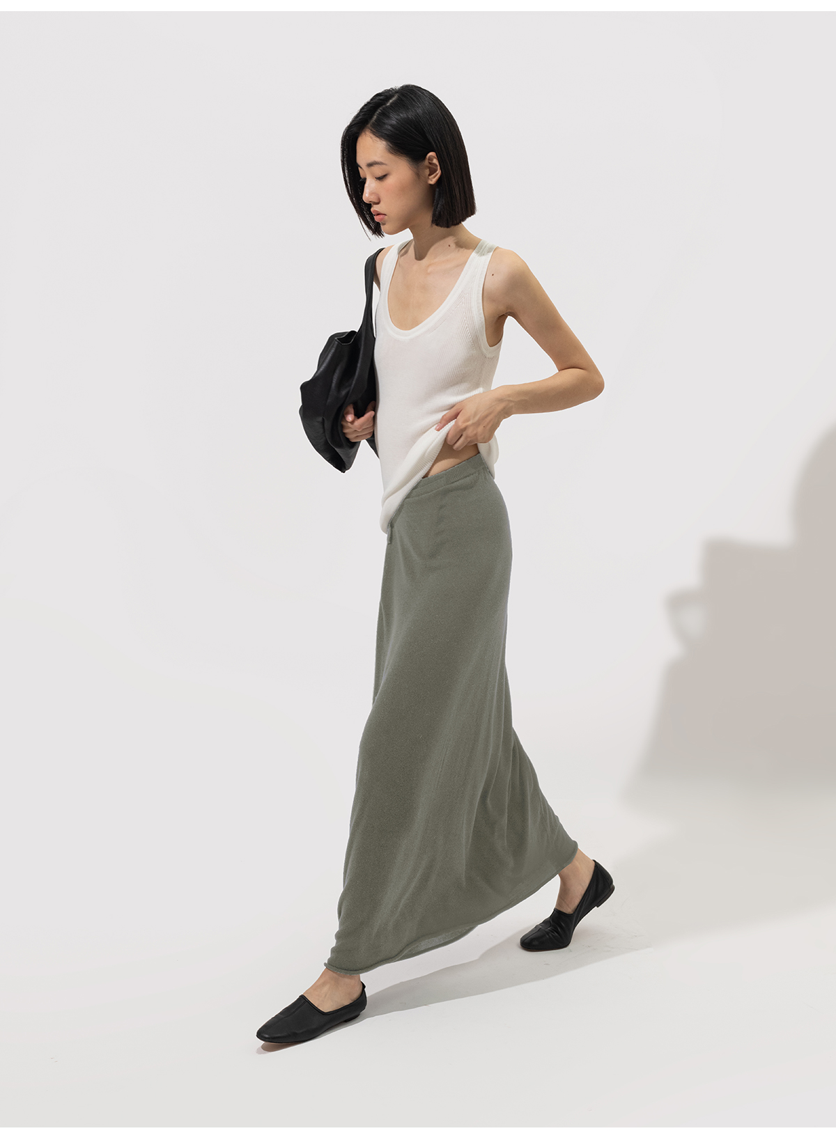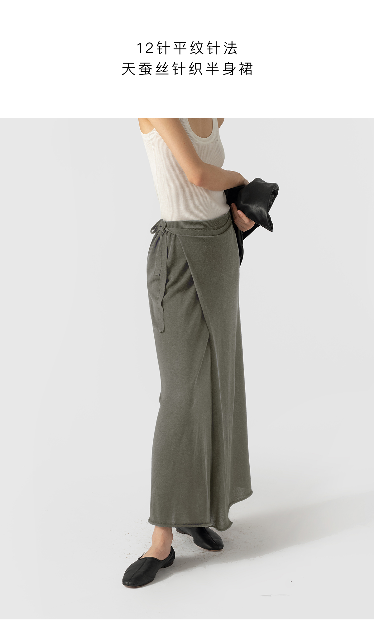 322工房重塑经典蚕丝针织半身裙2023夏款百搭系带高腰半裙女B089