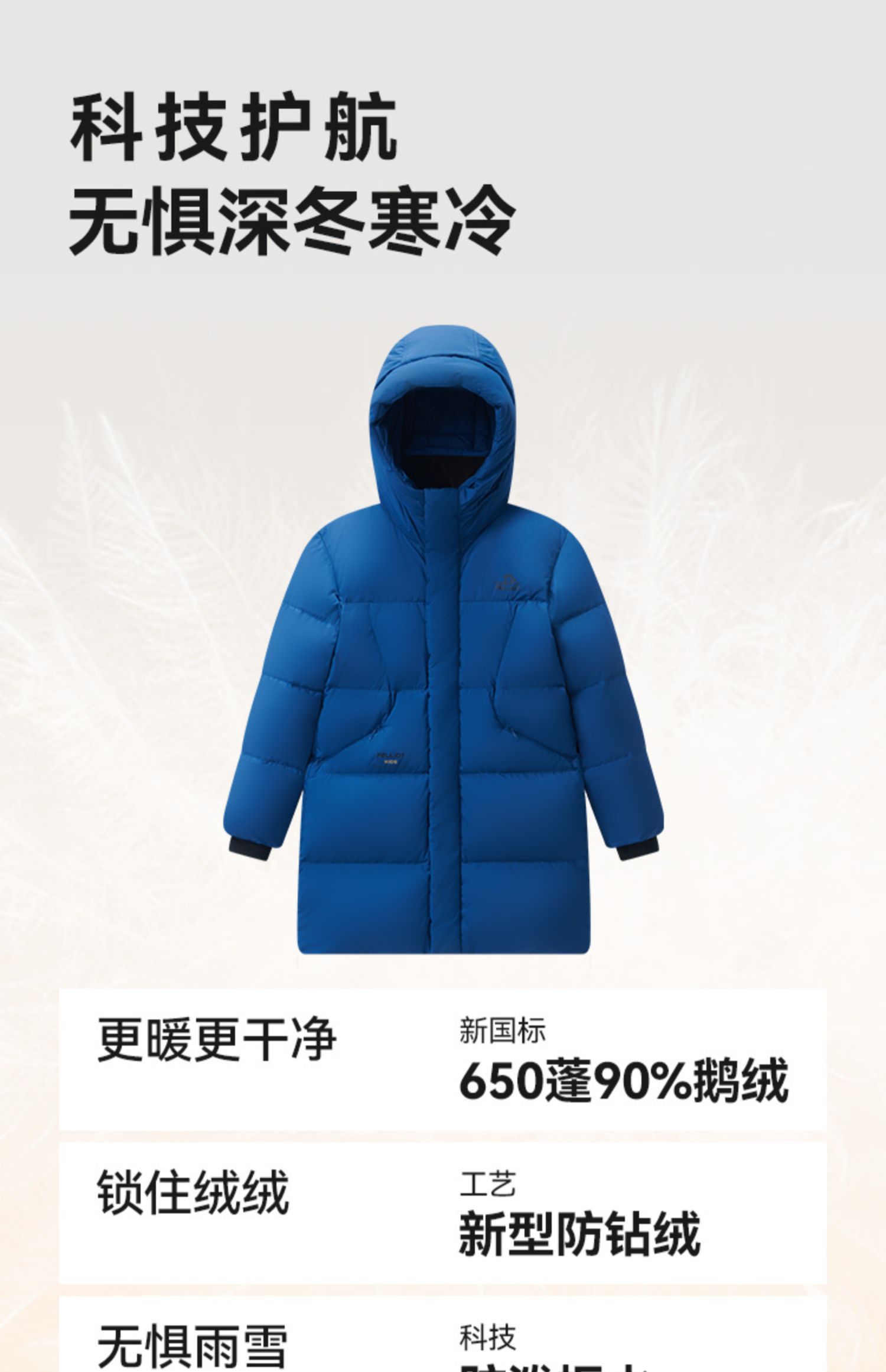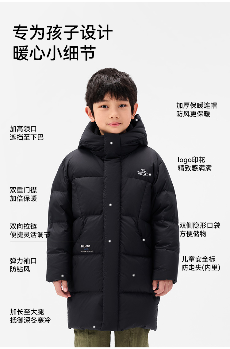 伯希和户外儿童羽绒服2025新款650蓬鹅绒服男童女童长款防风外套
