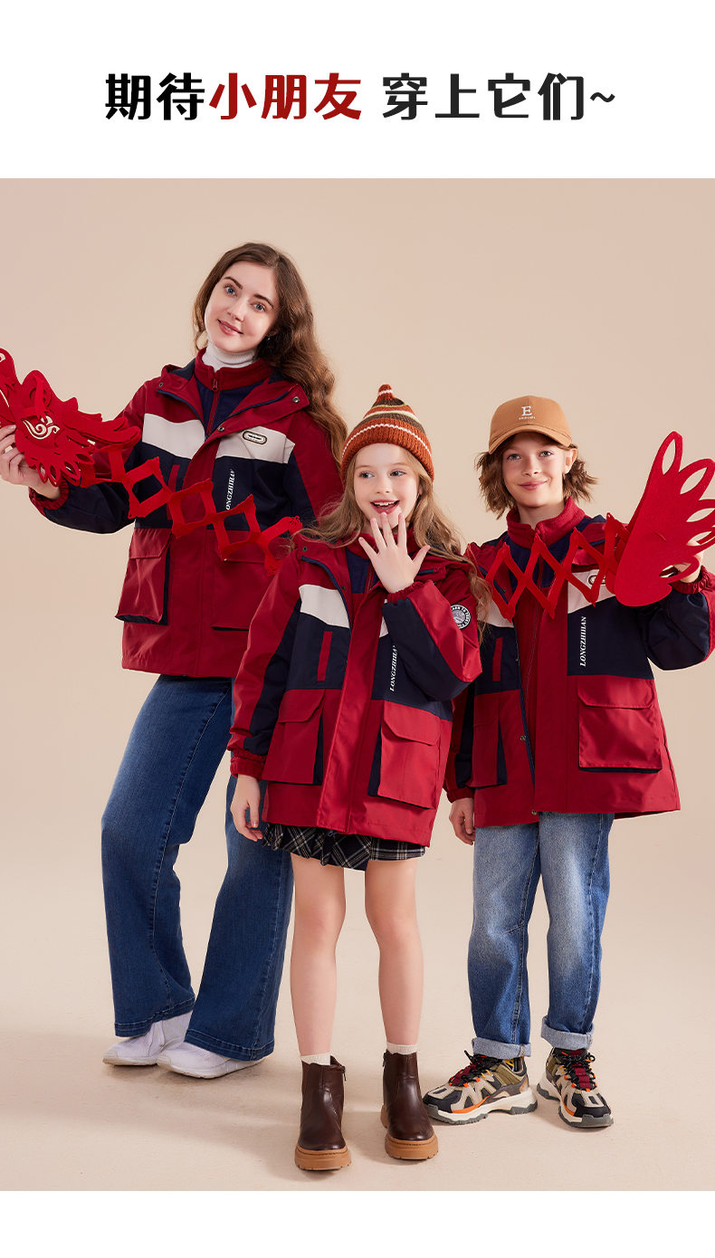 【米粒妈推荐】龙之涵 亲子款 秋冬新款加绒保暖外套 双面绒上衣马甲 一衣三穿冲锋衣 加绒防风冲锋裤 抗静电 婴幼儿A类标准