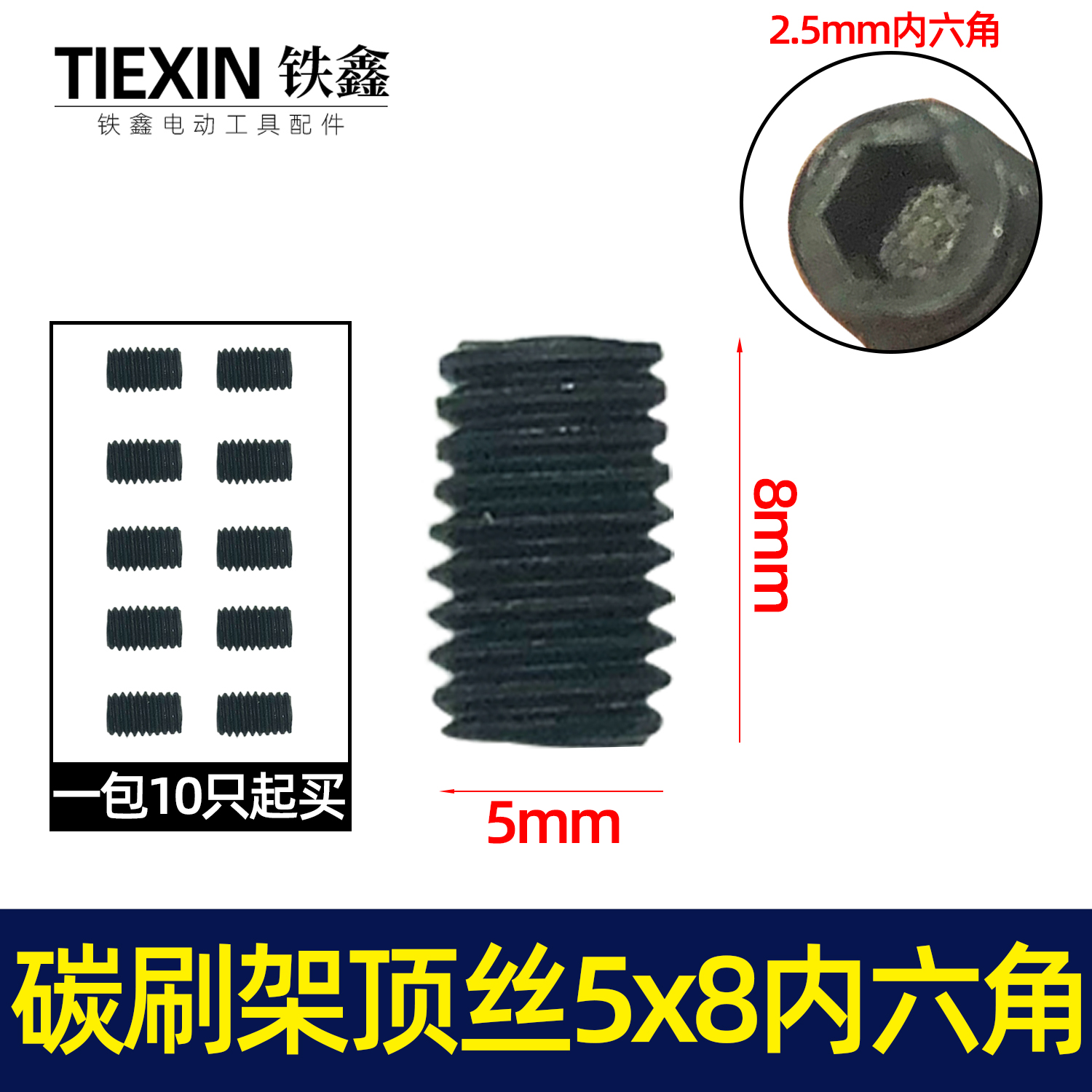 【货号07646】电动工具碳刷架顶丝5*8内六角螺丝钢材机电镐碳刷架螺丝