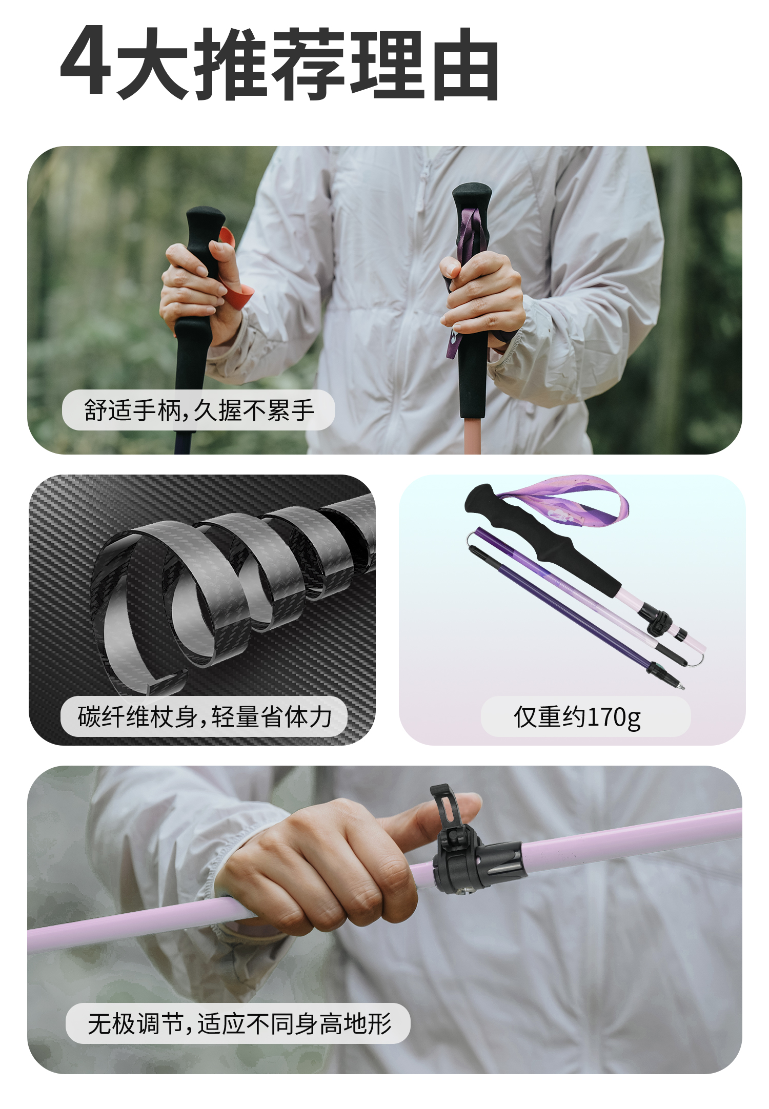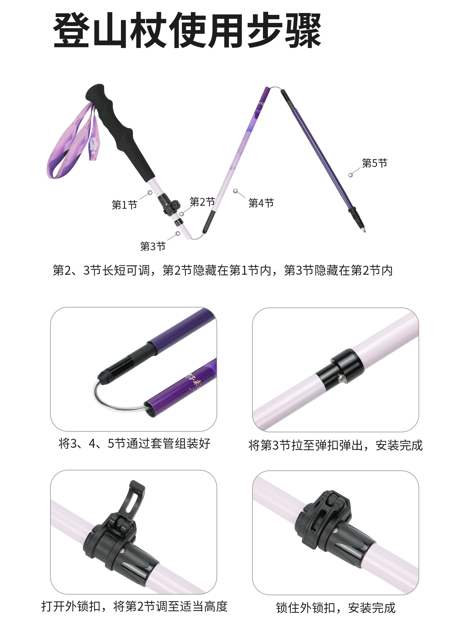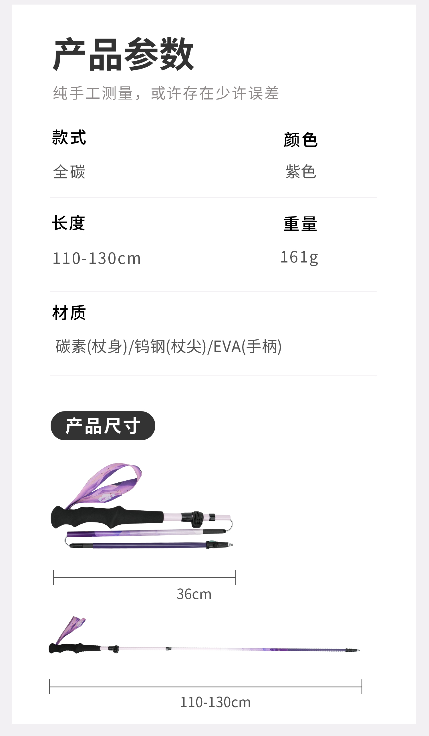 ZK青禾杖客五节全碳折叠登山杖161g 紫烟岫色