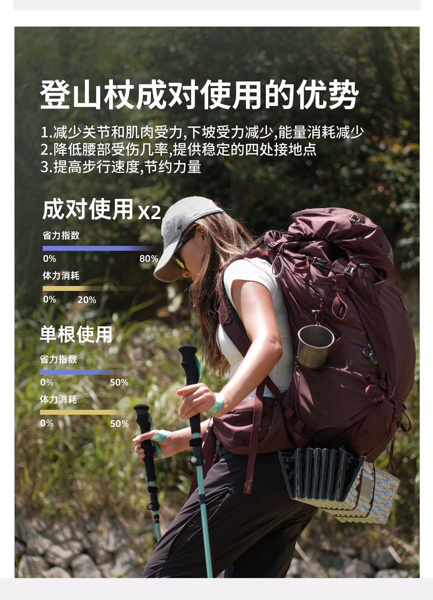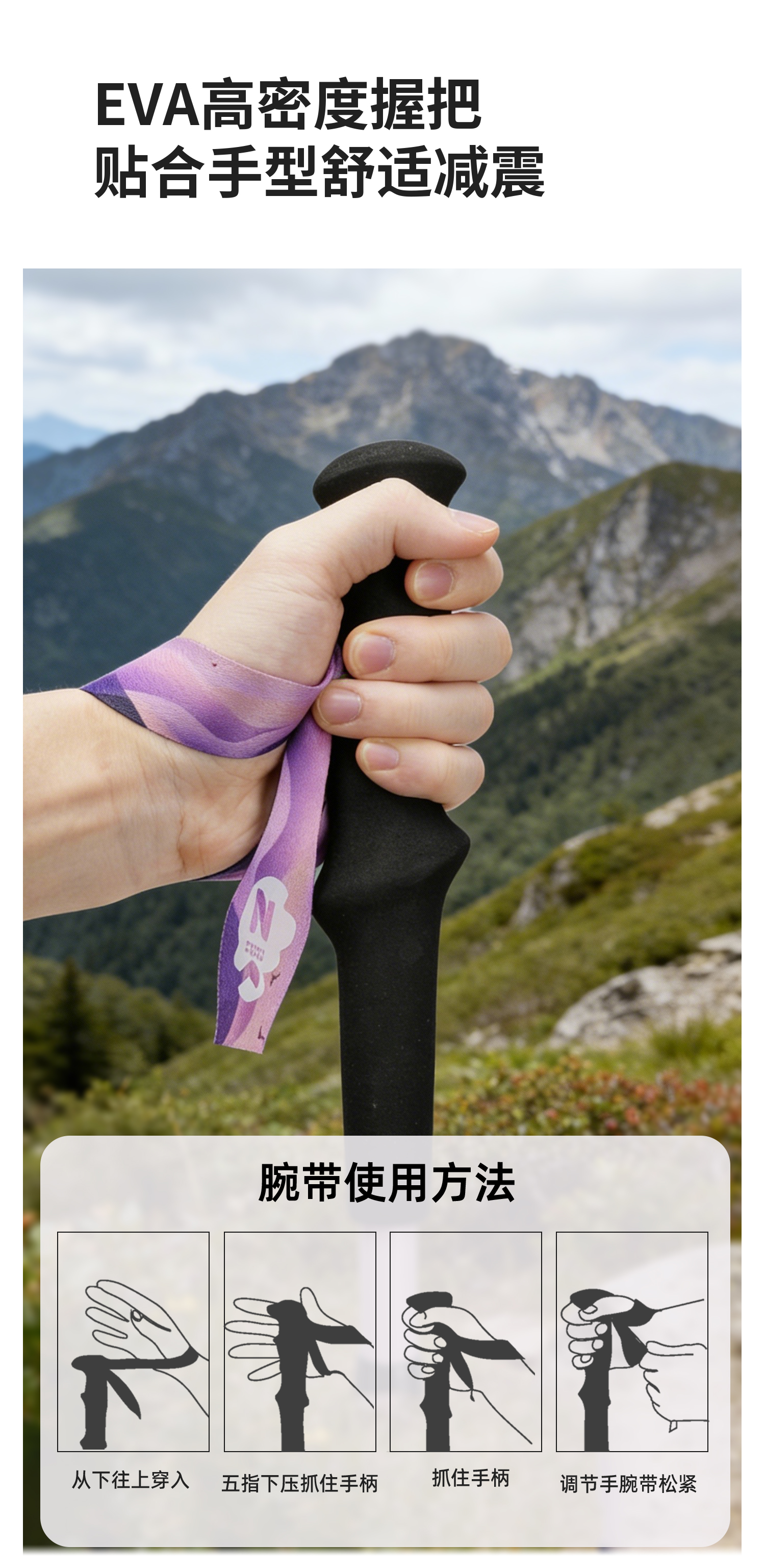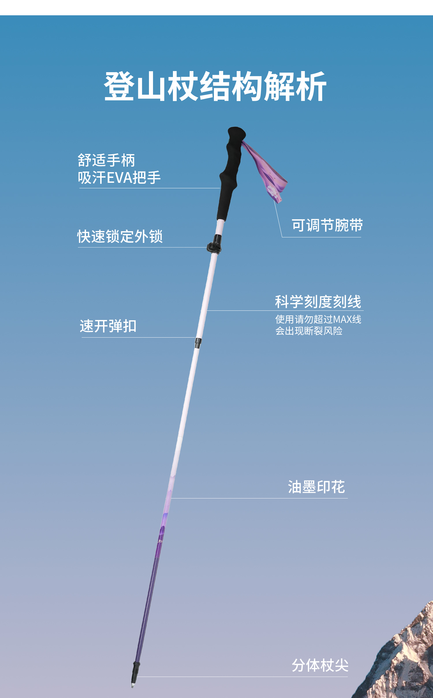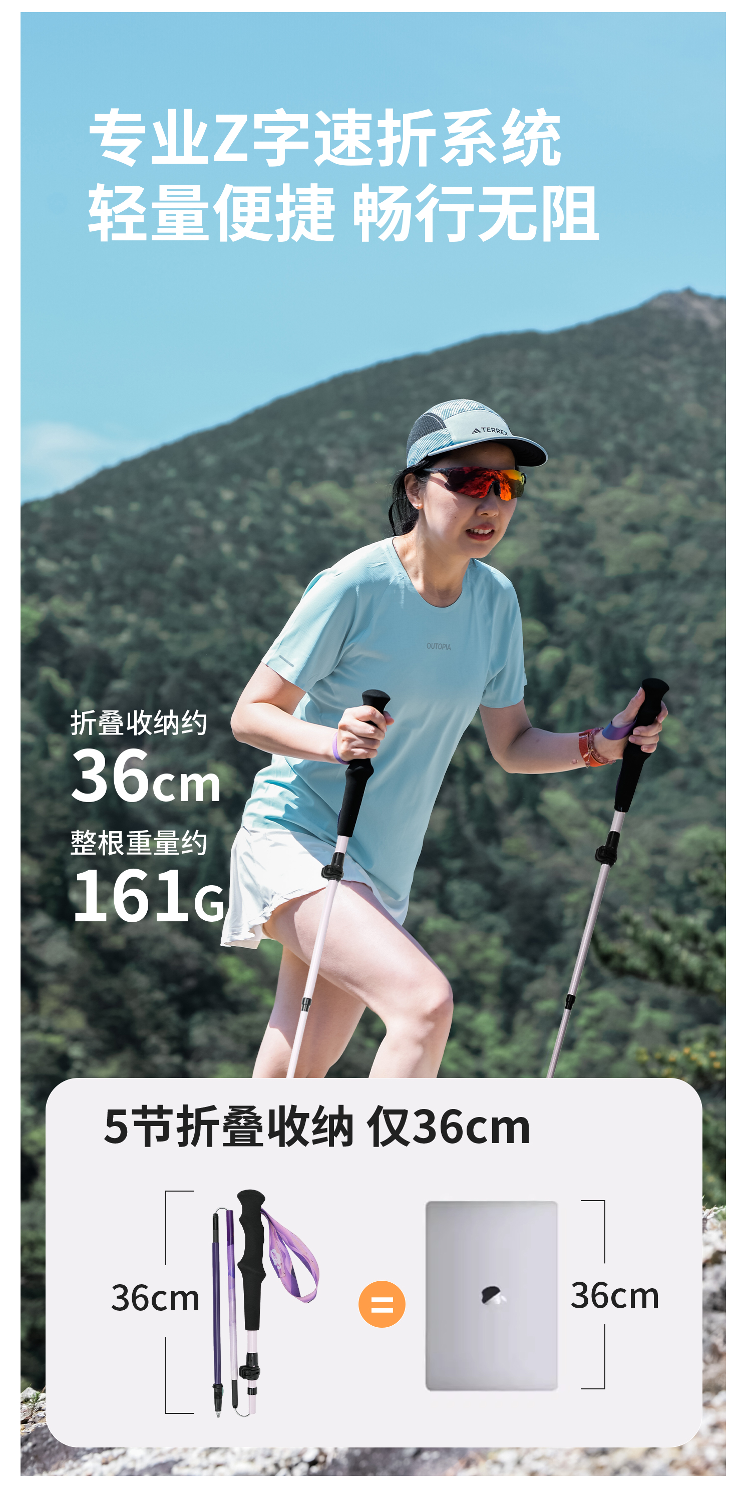 ZK青禾杖客五节全碳折叠登山杖161g 紫烟岫色