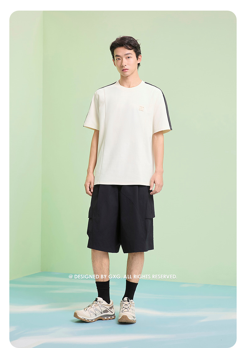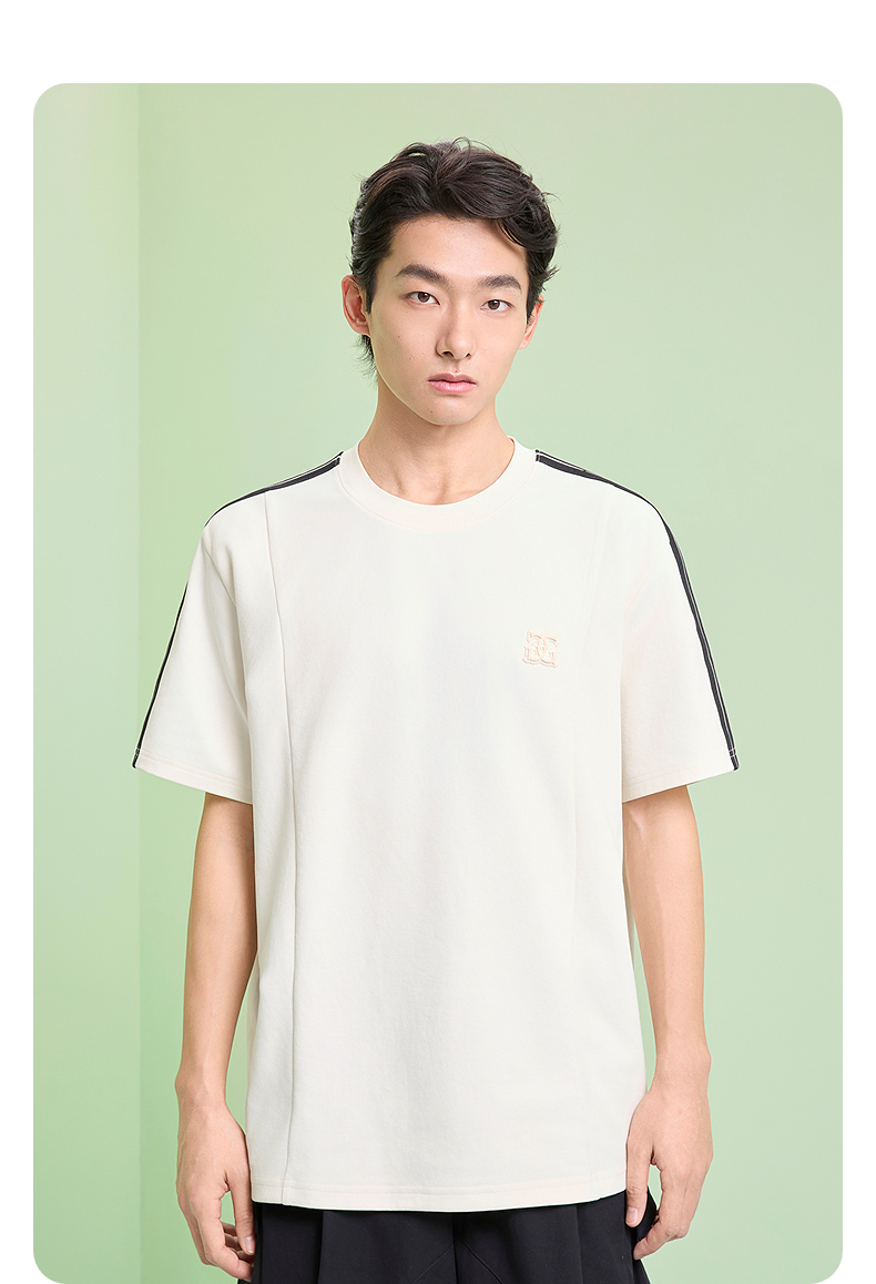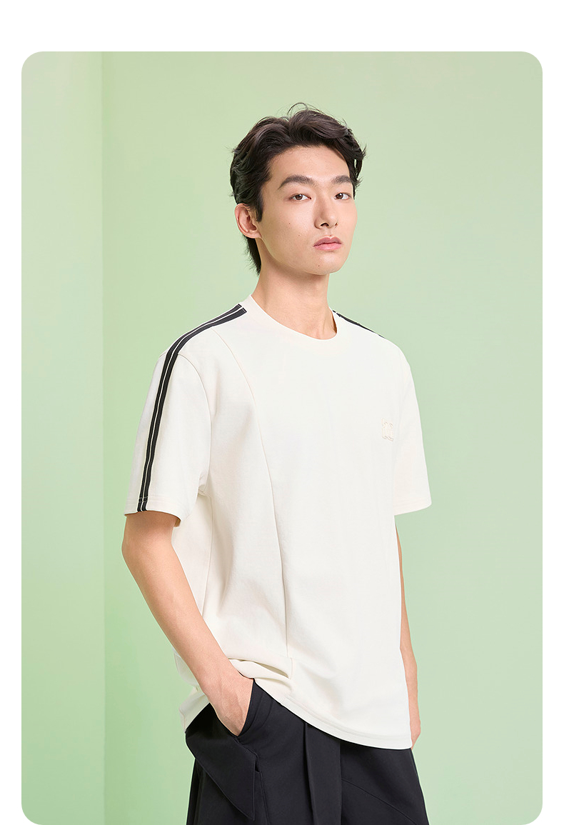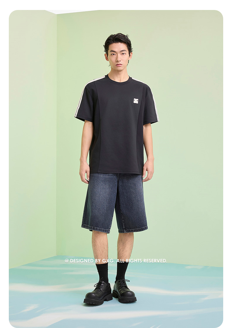 GXG男装 圆领T恤侧边织带上衣双色短袖针织 2025夏季新品