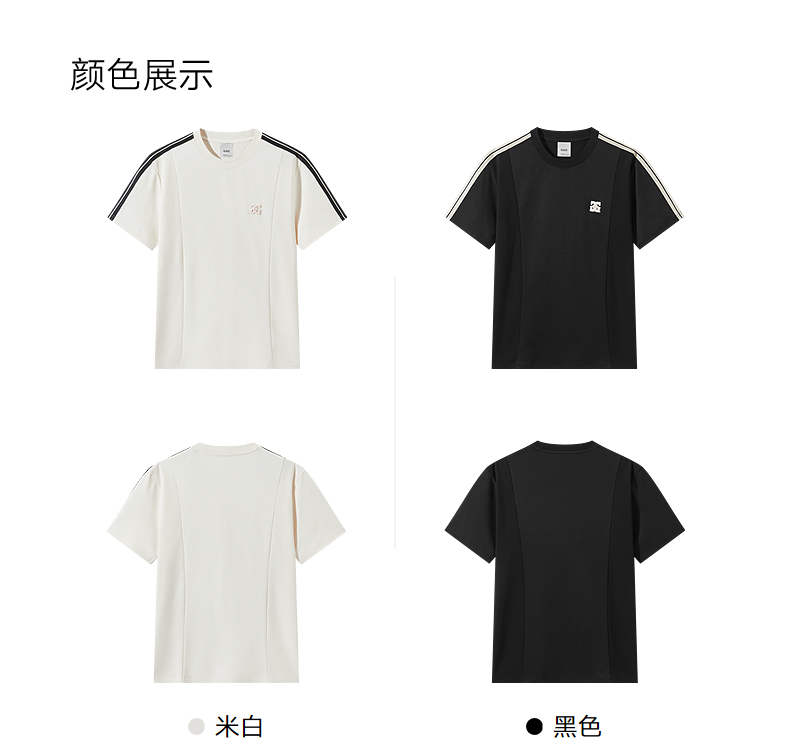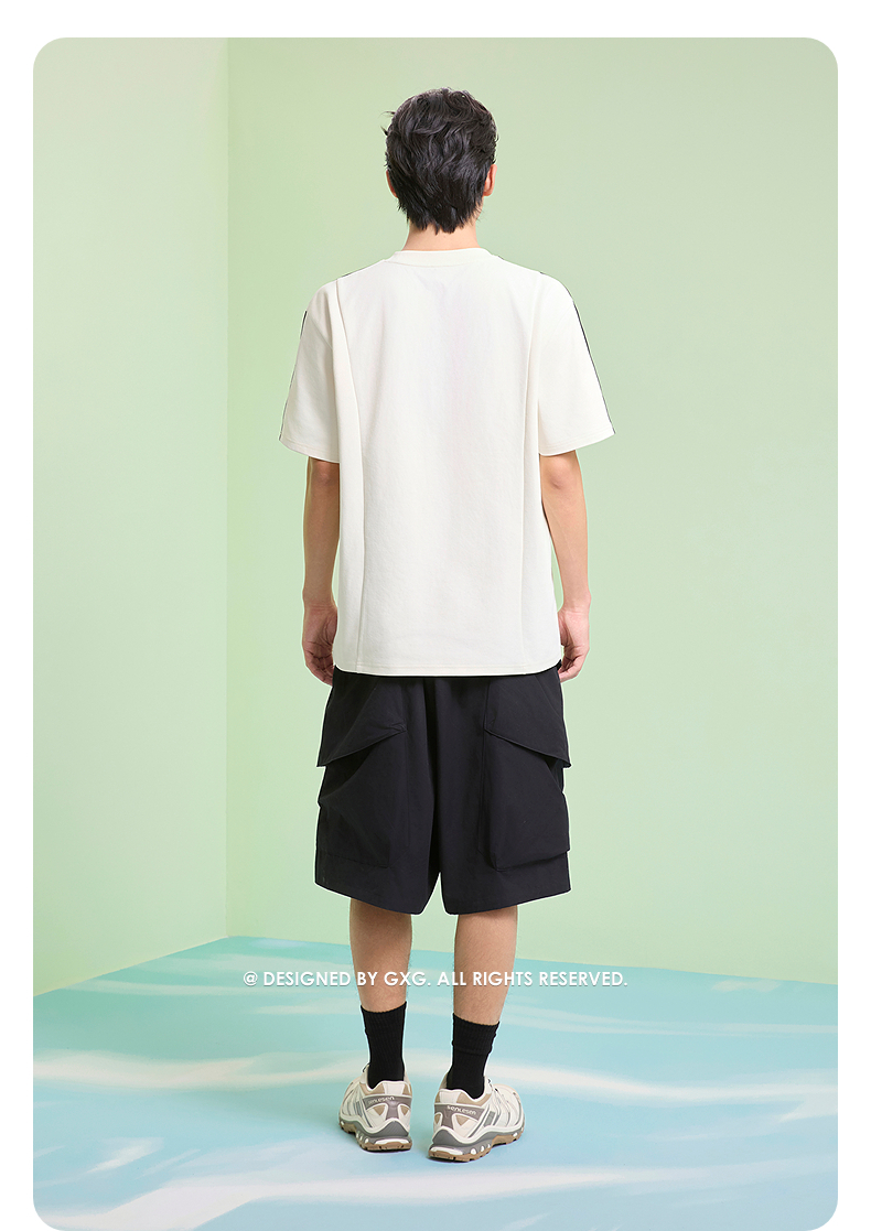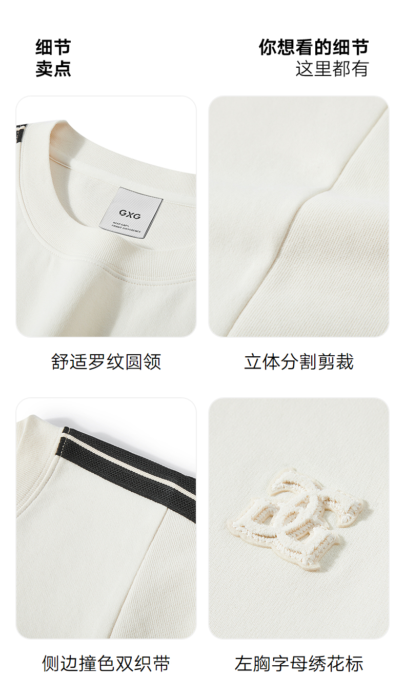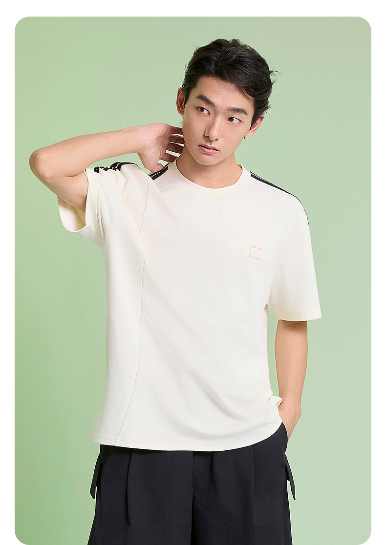 GXG男装 圆领T恤侧边织带上衣双色短袖针织 2025夏季新品