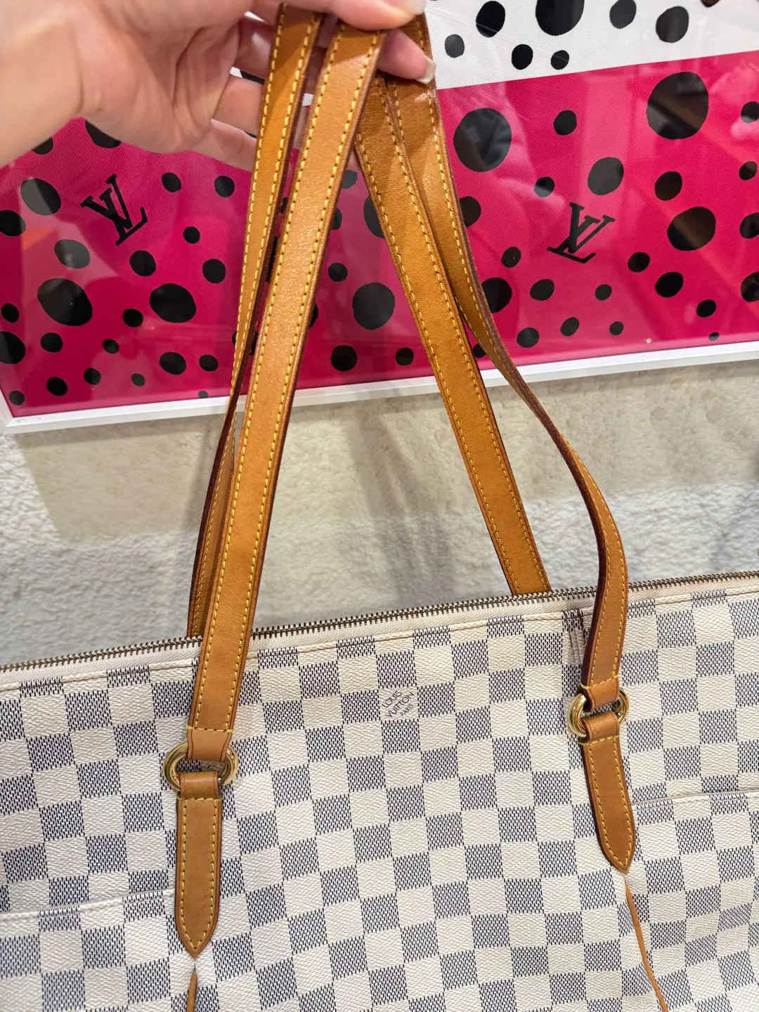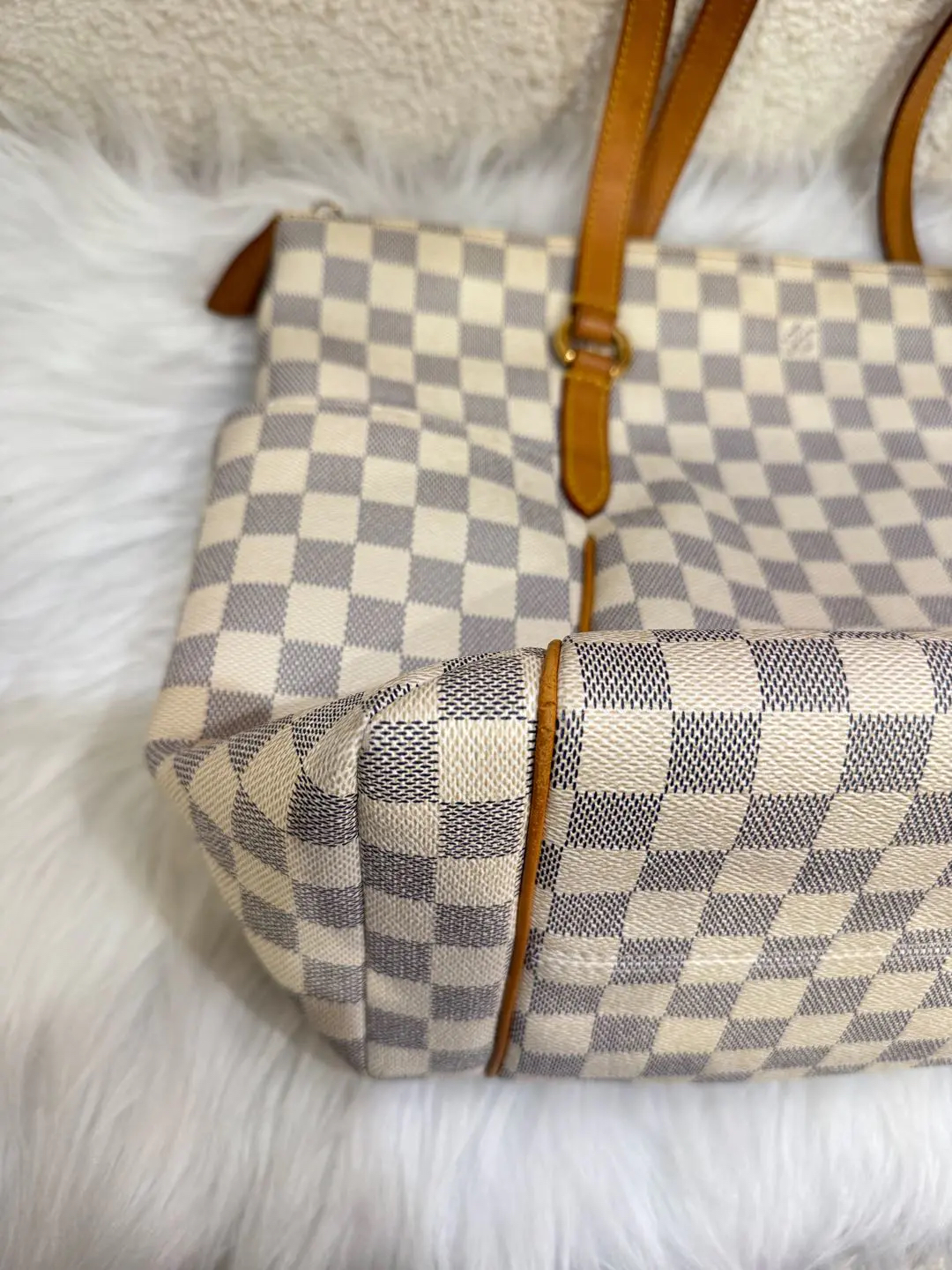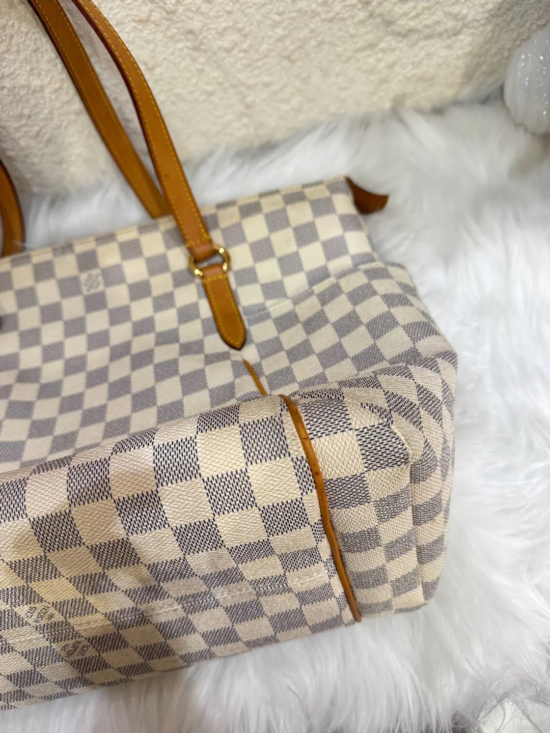 【商品详情】正品二手 LV TOTALLY 白棋盘格 中号 单肩包♠️ 93新 32×30。植鞣革和内包口正常使用感。不二次寄卖回收
