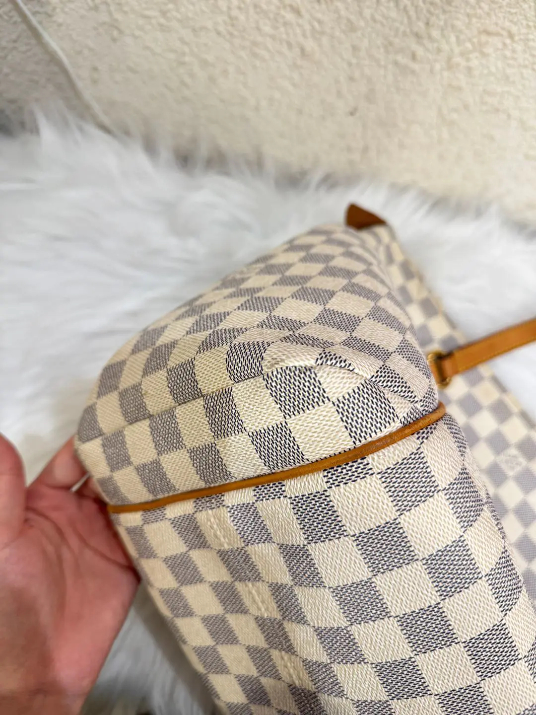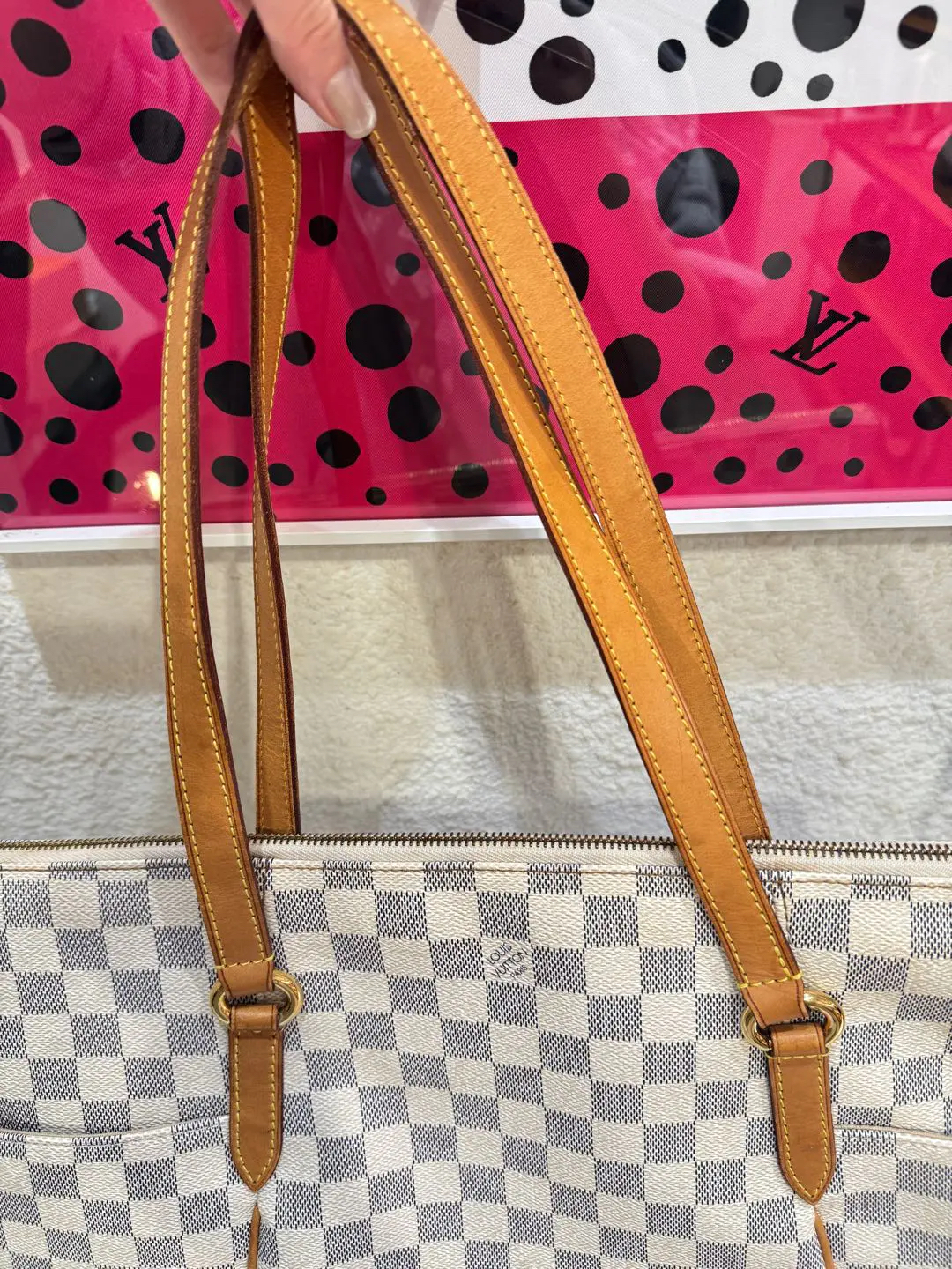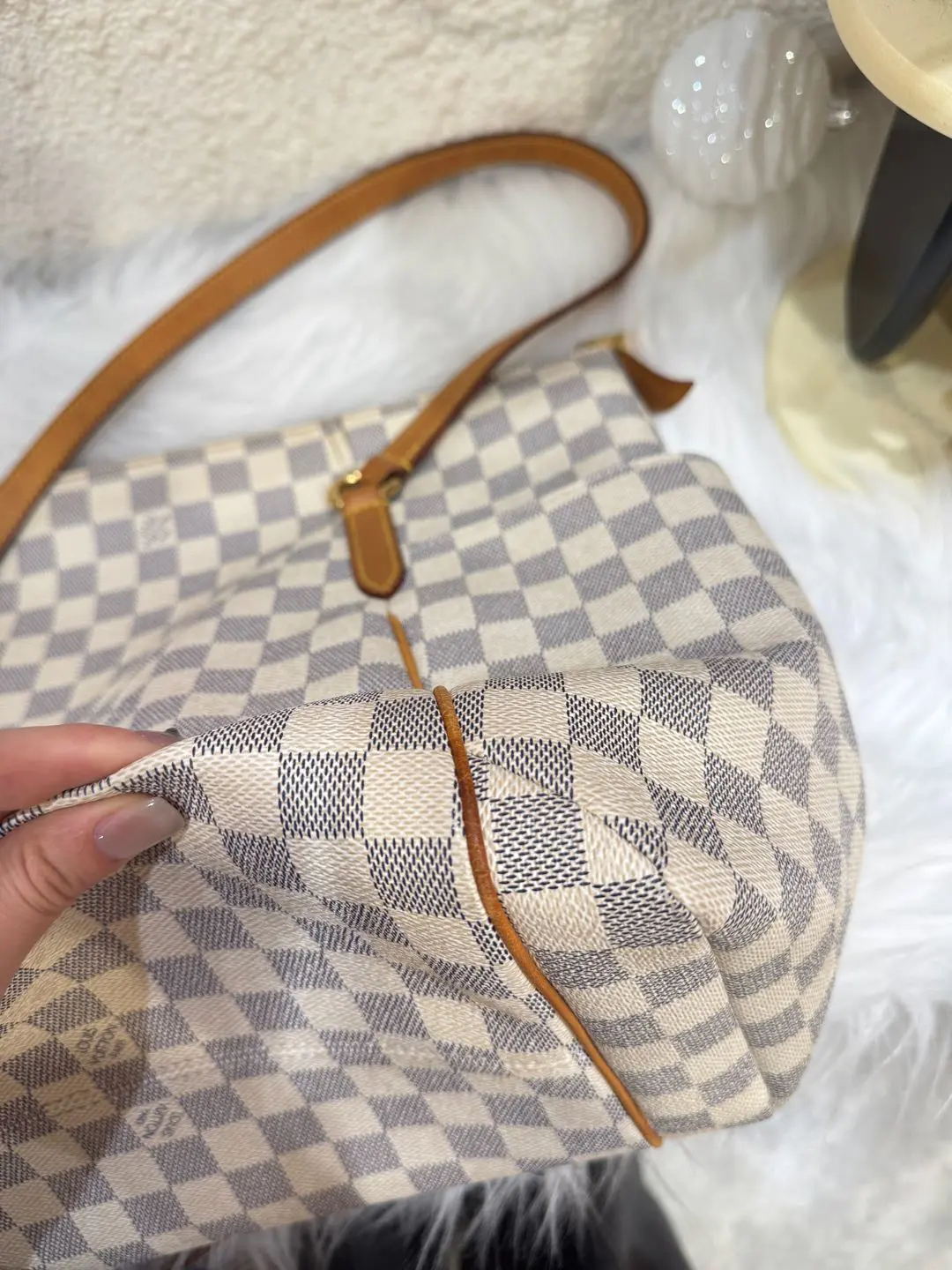 【商品详情】正品二手 LV TOTALLY 白棋盘格 中号 单肩包♠️ 93新 32×30。植鞣革和内包口正常使用感。不二次寄卖回收