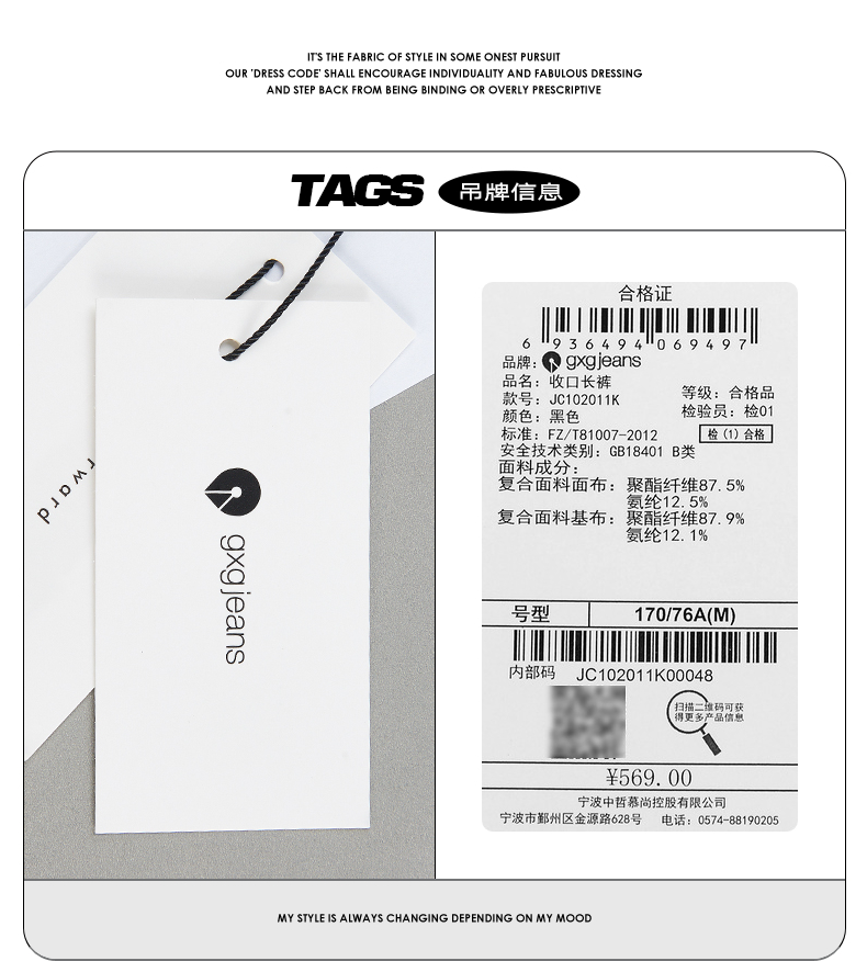 gxgjeans男装秋冬休闲裤男潮流工装宽松长裤