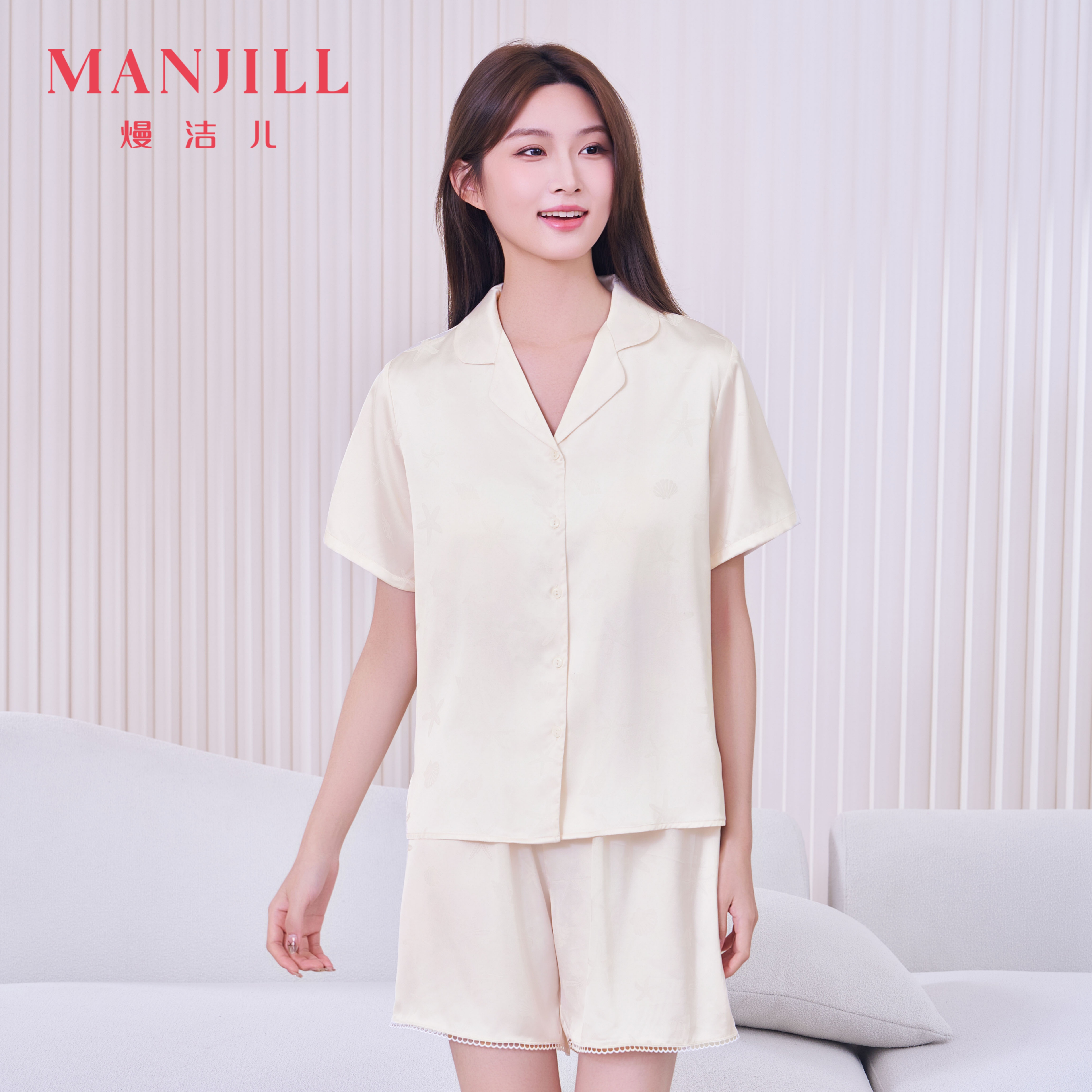 【商场同款】熳洁儿 带杯垫冰丝家居服短袖短裤套装丝质提花26203106