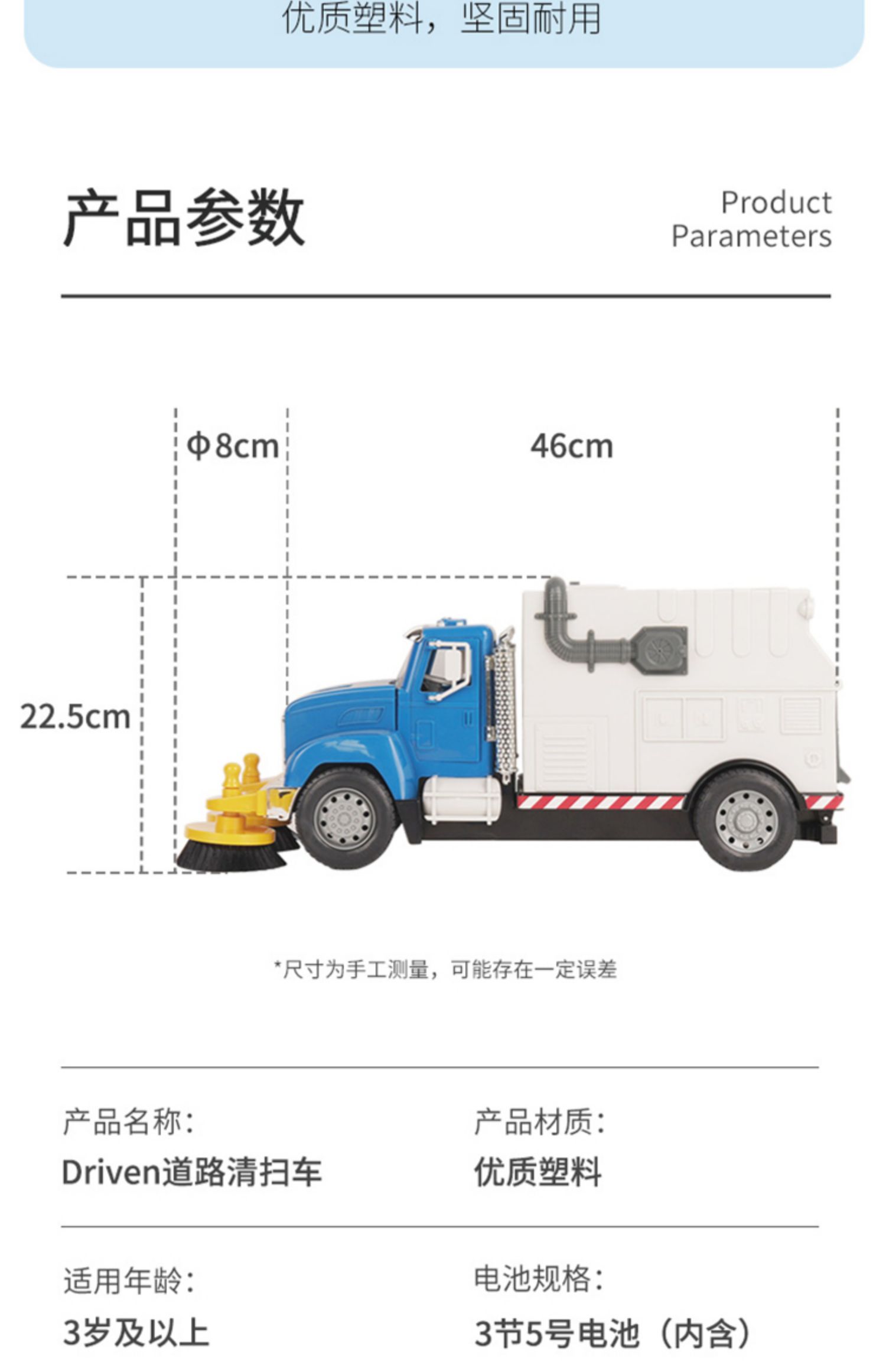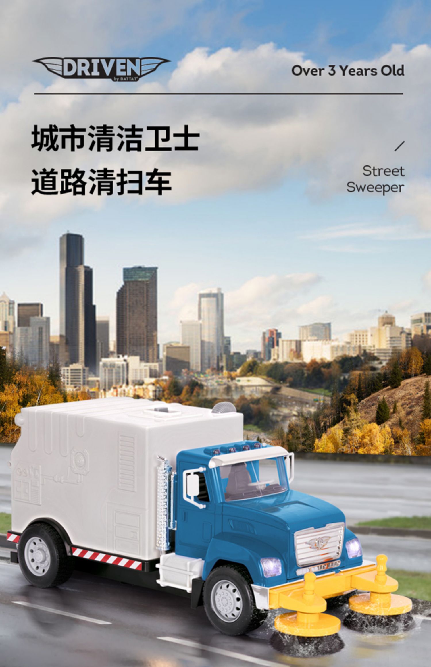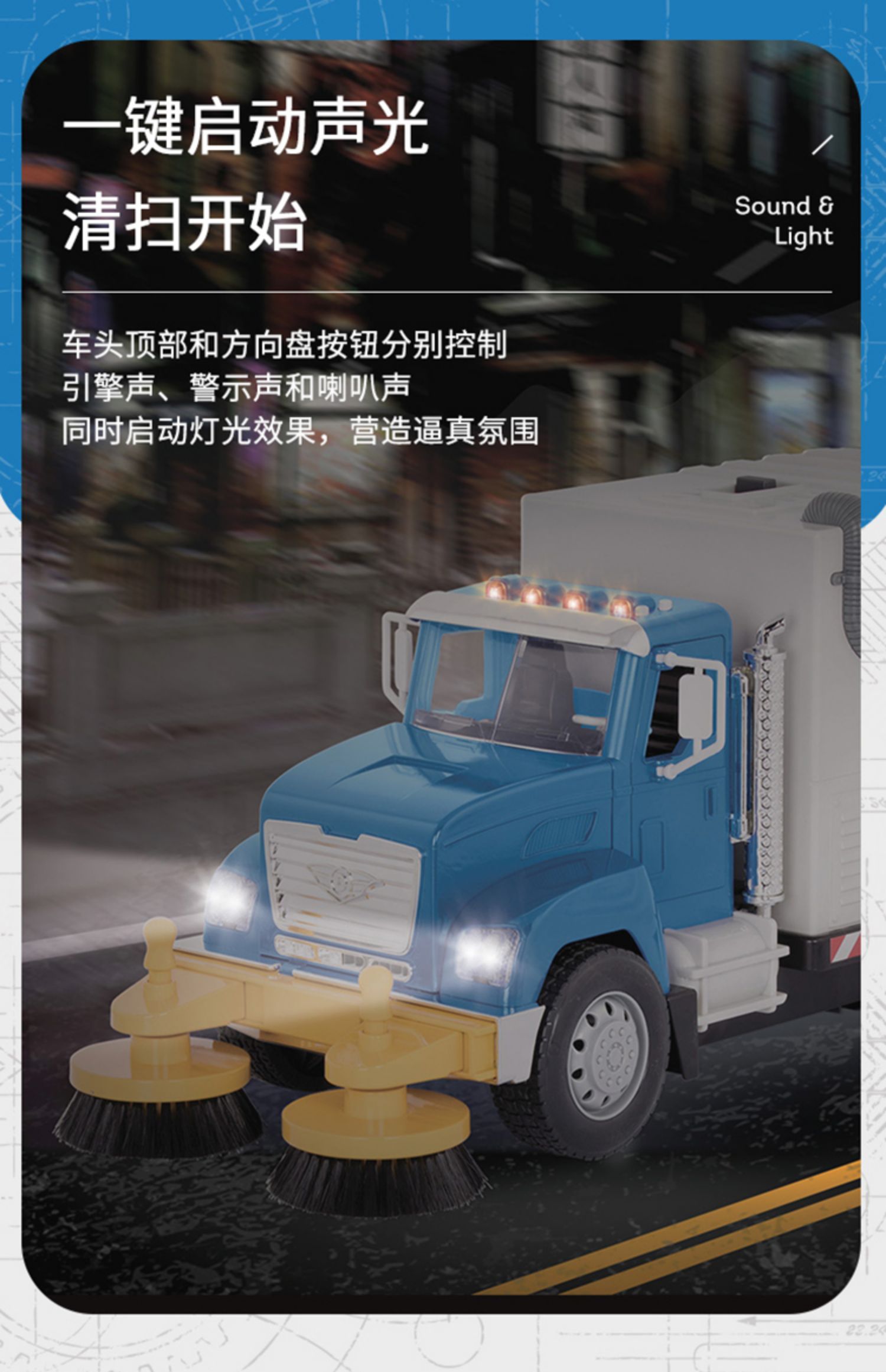 Driven道路清洁车儿童仿真工程车模型宝宝玩具声光垃圾回收清扫地-【玩具】