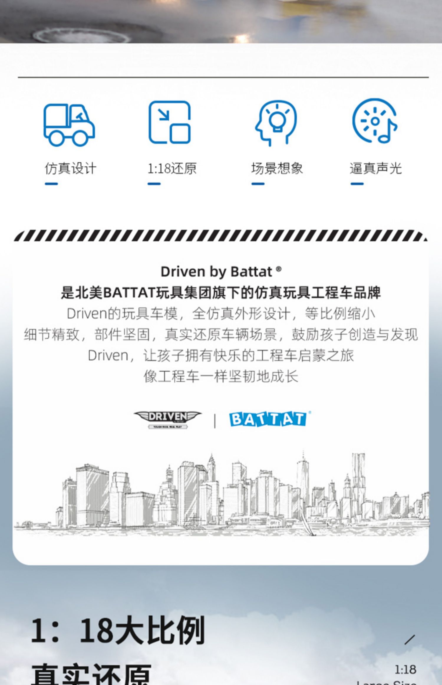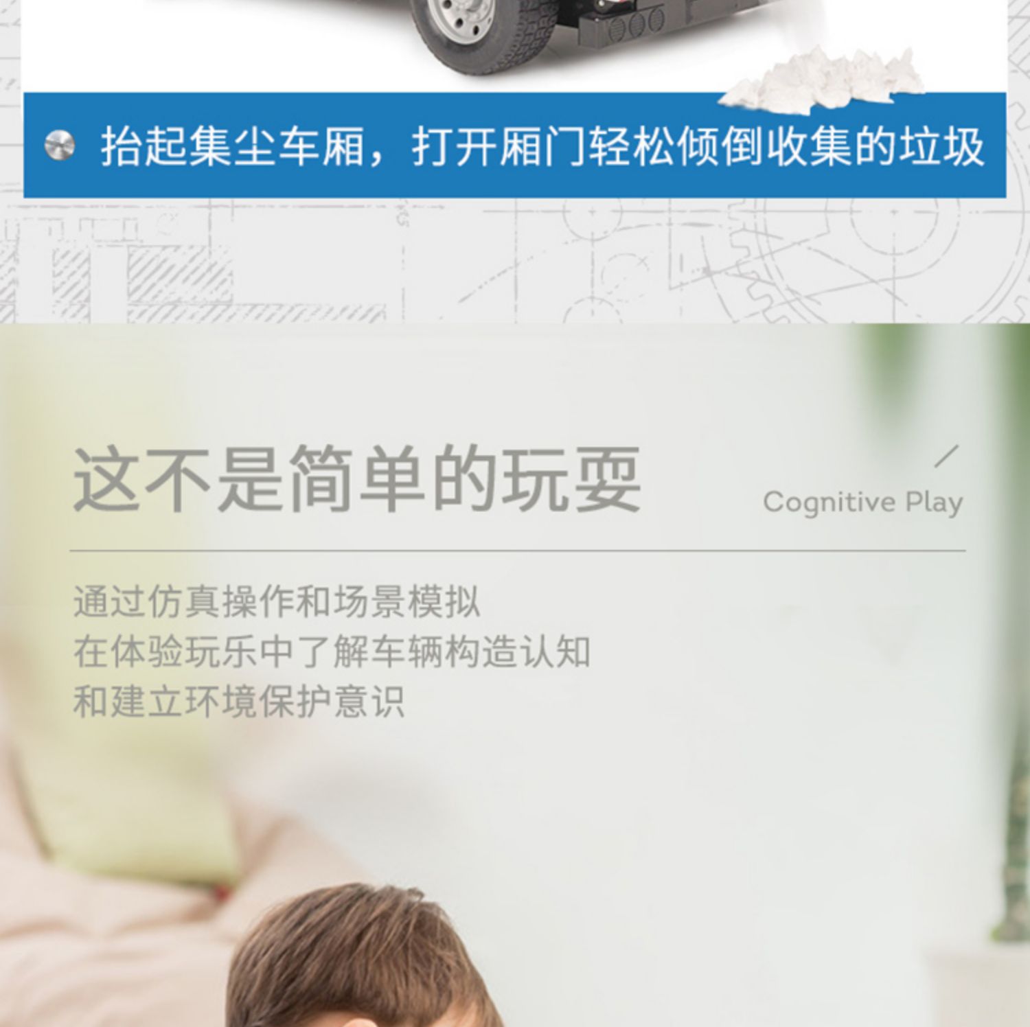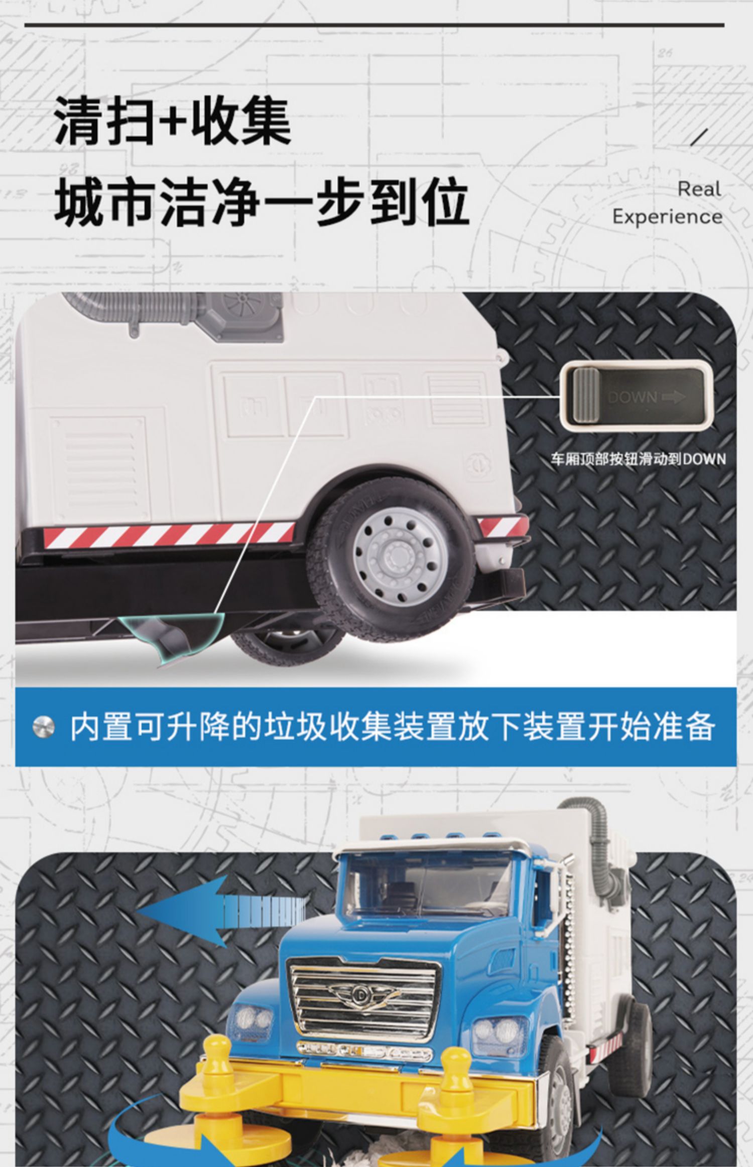 Driven道路清洁车儿童仿真工程车模型宝宝玩具声光垃圾回收清扫地-【玩具】