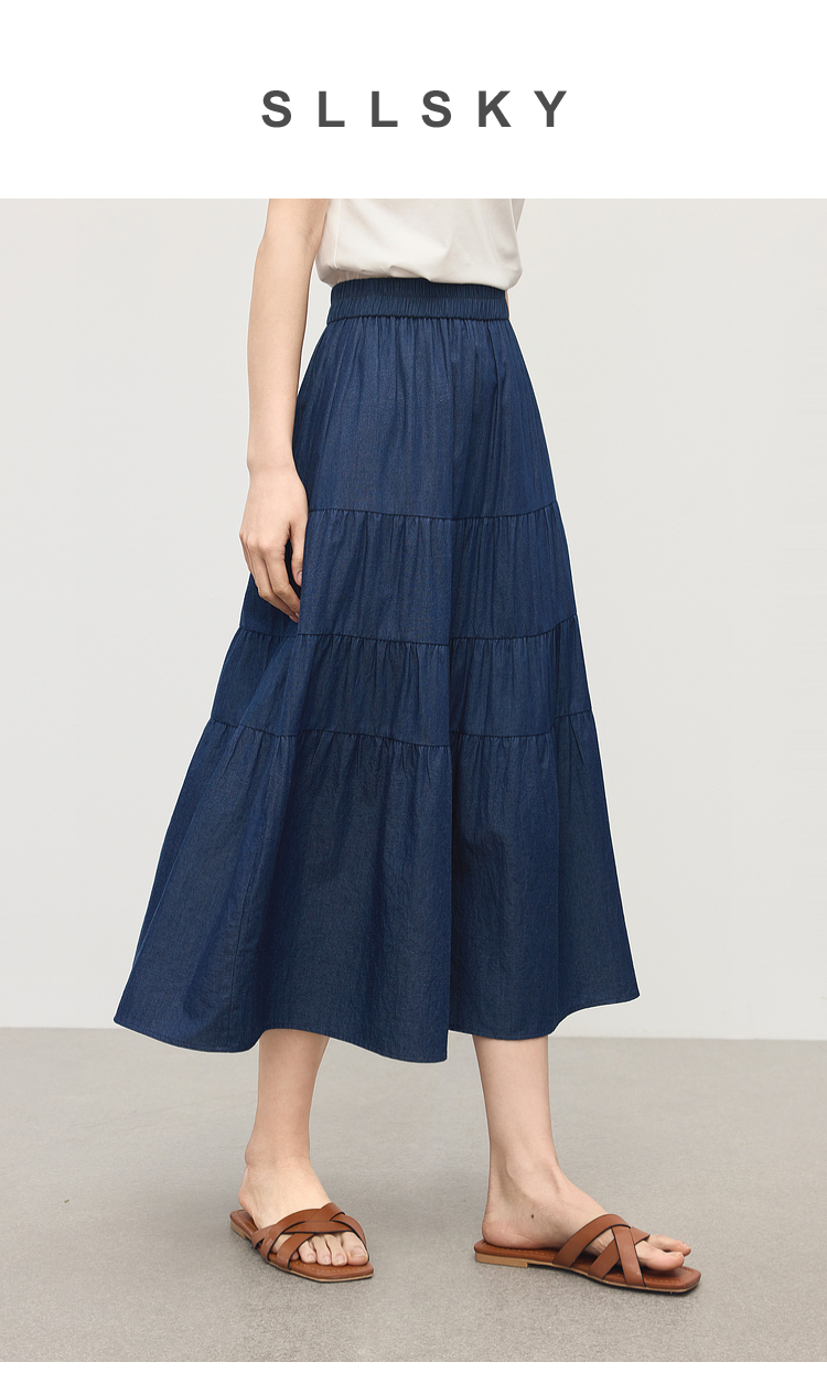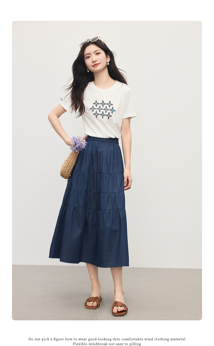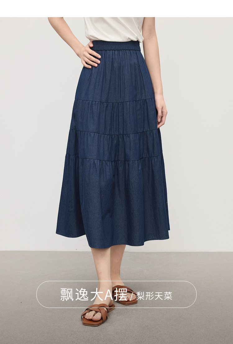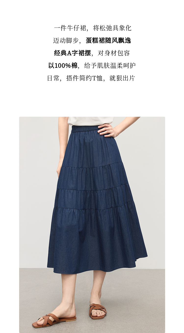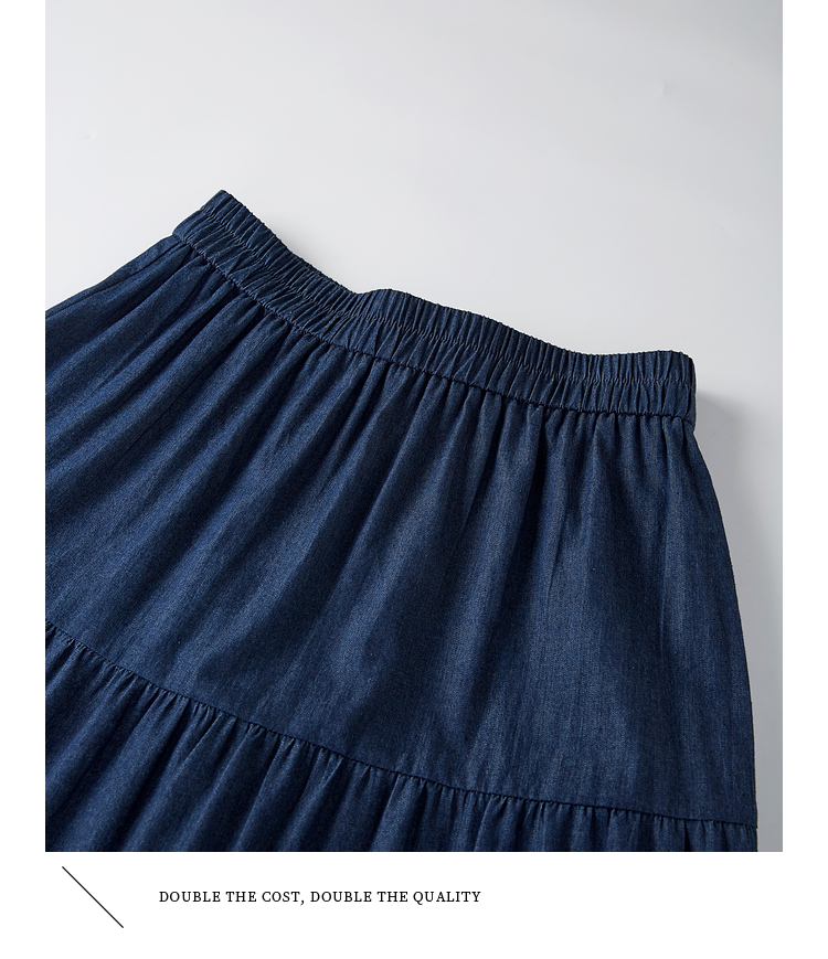 熙世界丹宁软牛仔半身裙女夏季薄款高腰宽松100%纯棉a字蛋糕裙子