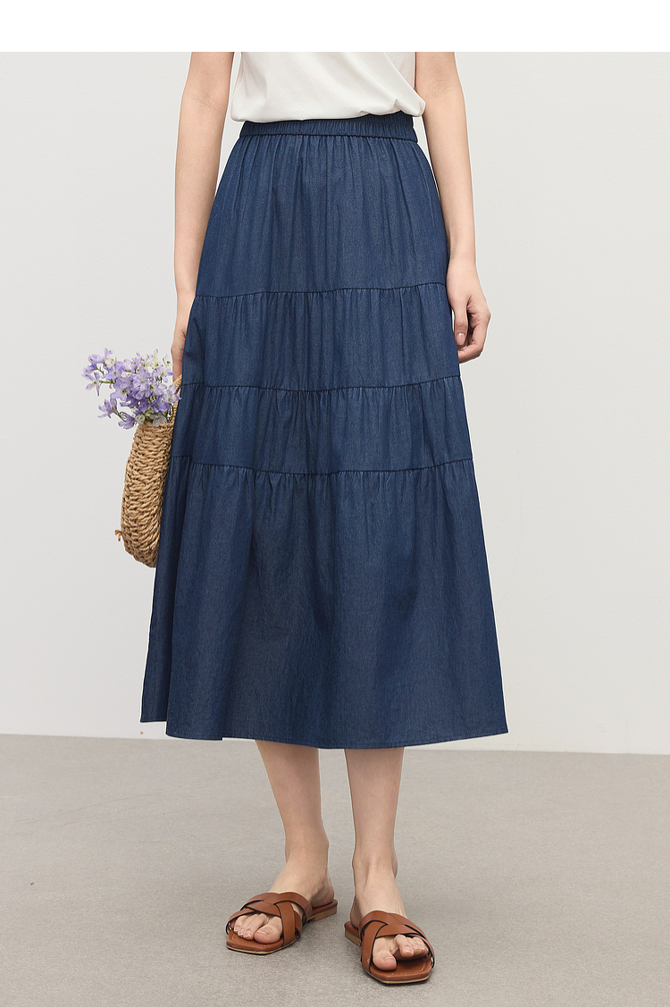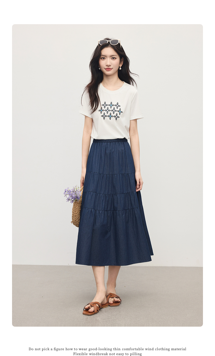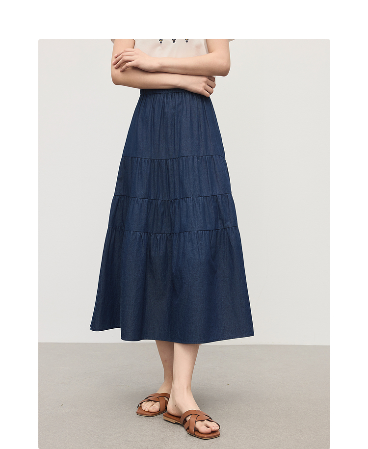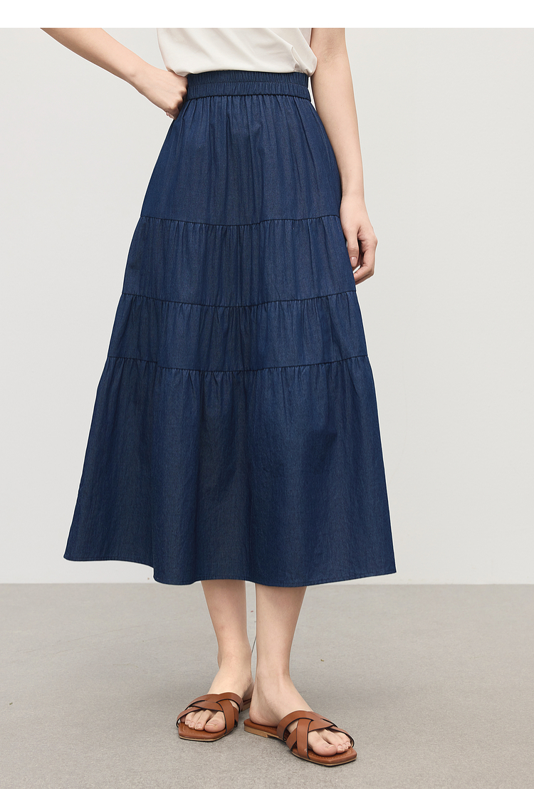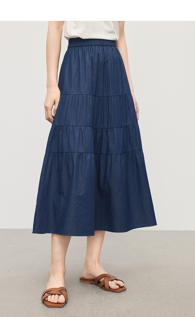 熙世界丹宁软牛仔半身裙女夏季薄款高腰宽松100%纯棉a字蛋糕裙子