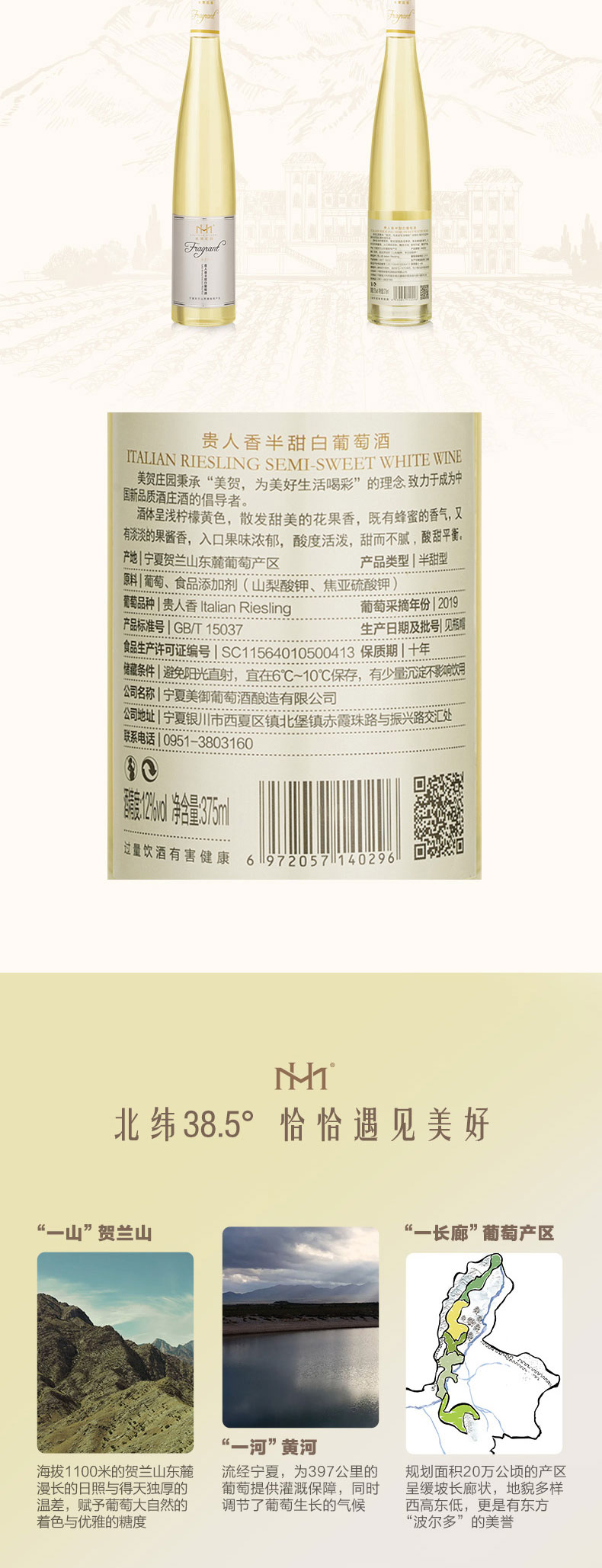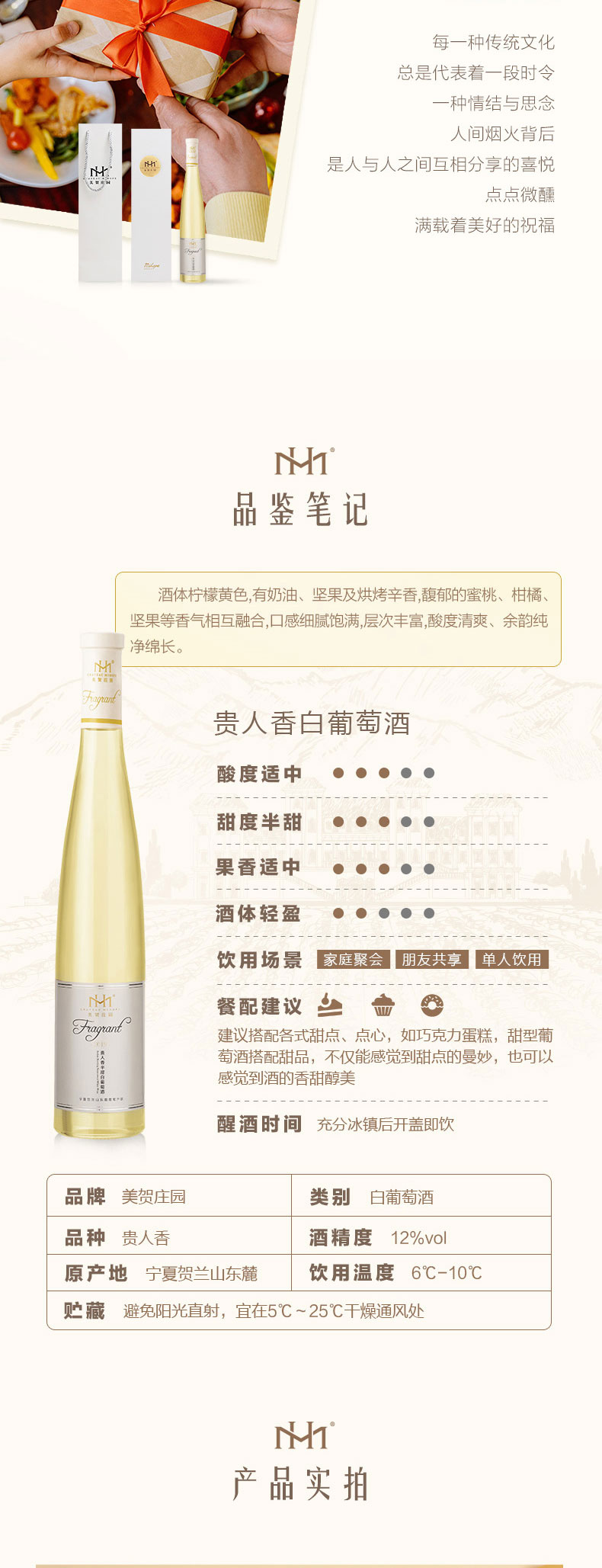 美贺庄园贵人香半甜白葡萄酒375ml/瓶【现金价】