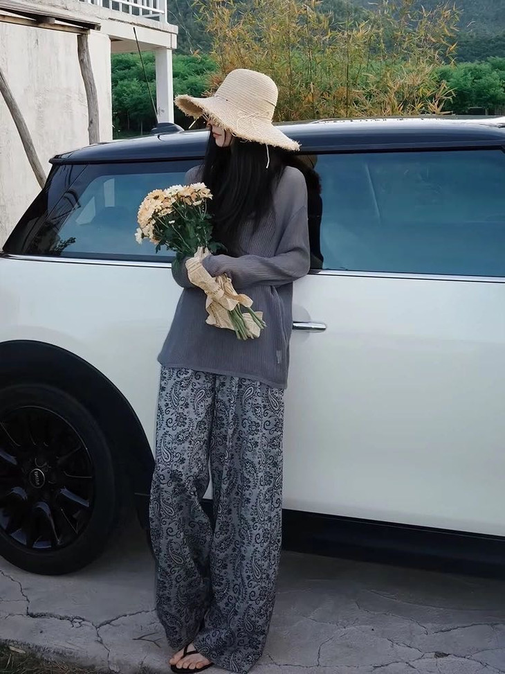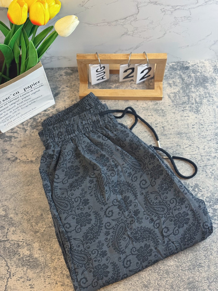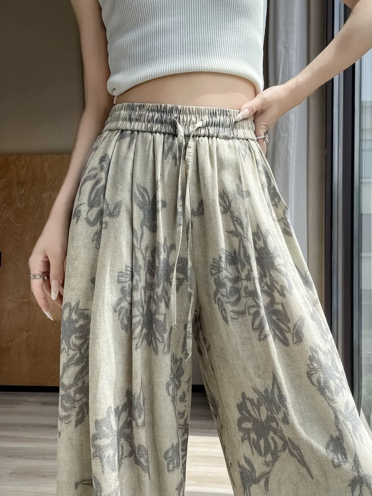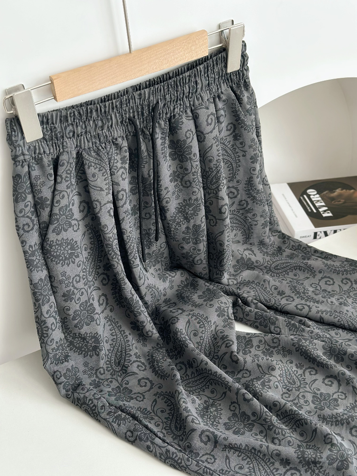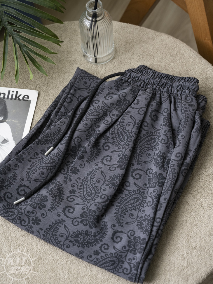 👉慵懒腰果花棉麻裤